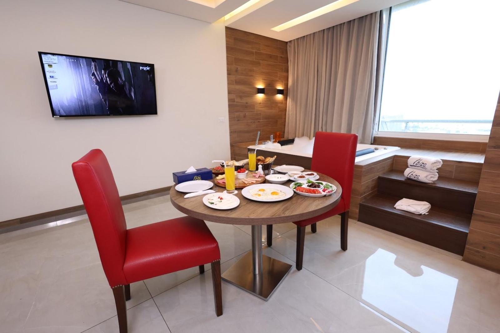 Relax by the outdoor swimming pool with a refreshing drink from the bar or explore nearby attractions like the Jeitta Grotto. Our 24-hour front desk is ready to assist with car rentals and airport shuttles, ensuring a seamless stay. Book your stay at Ibiza Hotel for a memorable experience in Tabarja.