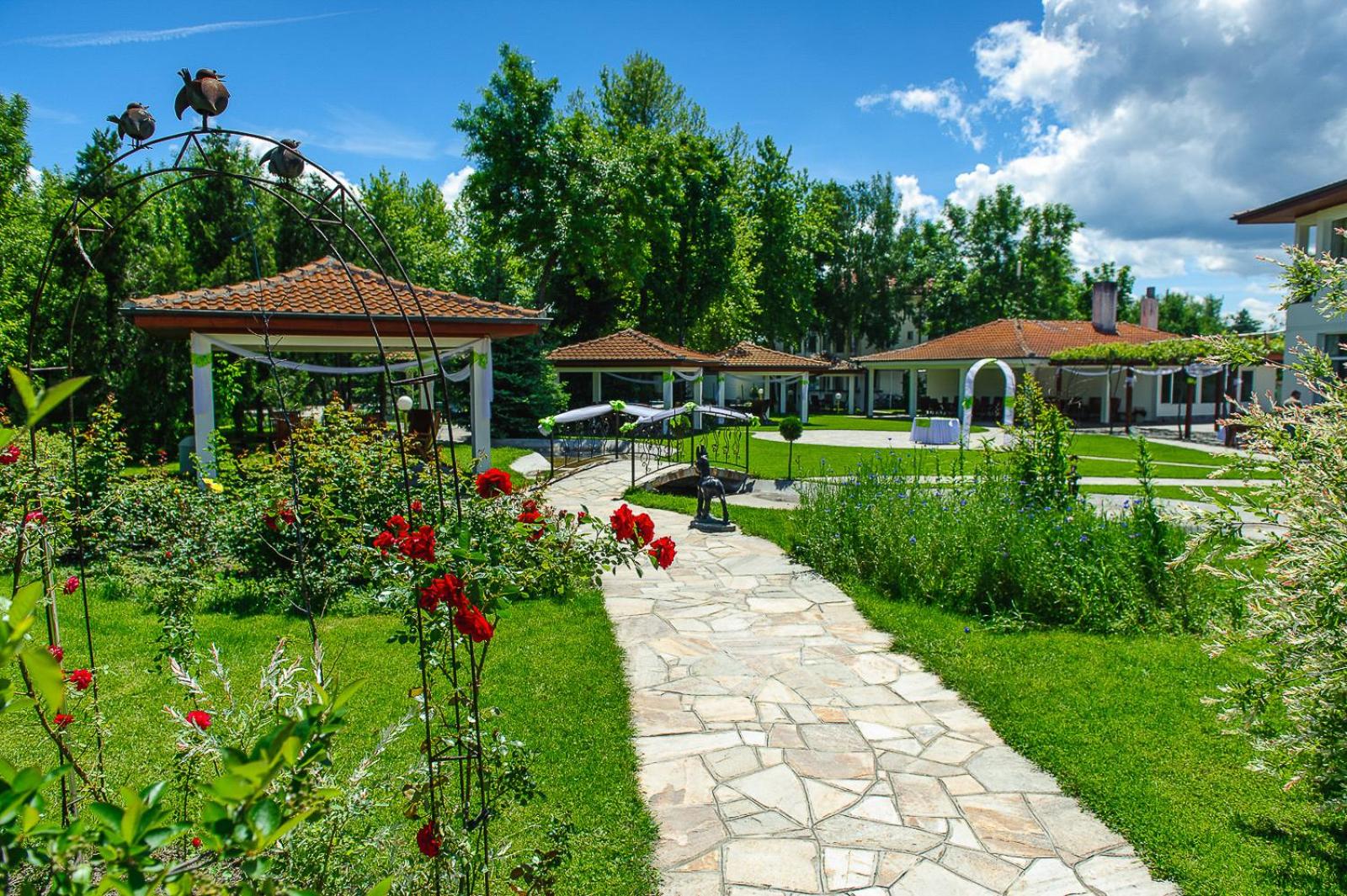 Чудесно място! Много доволни останахме от престоя и определено бихме отседнали в комплекса пак! Дворът е прекрасен, зелен и красиво оформен, поддържан отлично. Стаята ни беше просторна, чиста и удобна, с комфортни матраци и стилно обзавеждане. Наистина се учудвам на лошите коментари за хигиената, може би са злонамерени или пък са положени усилия нещата да се променят, но към момента всичко е както трябва. СПА центърът - приятно място, стандартно за тризвезден хотел - басейнът беше малък, но чист и с топла вода. Парната баня и сауната ( IR) работеха добре. В ресторанта храната беше вкусно приготвена, големи порции , прилични цени. Сега за персонала - изключително мили и отзивчиви хора, удволетвориха напълно желанието ни за вида на стаята, грижеха се да се чувстваме комфортно през цялото време, дори накрая ни закараха до гарата на Карлово, че се случи някакъв провал с поръчаното такси и щяхме да си изпуснем влака. Благодарим от сърце!