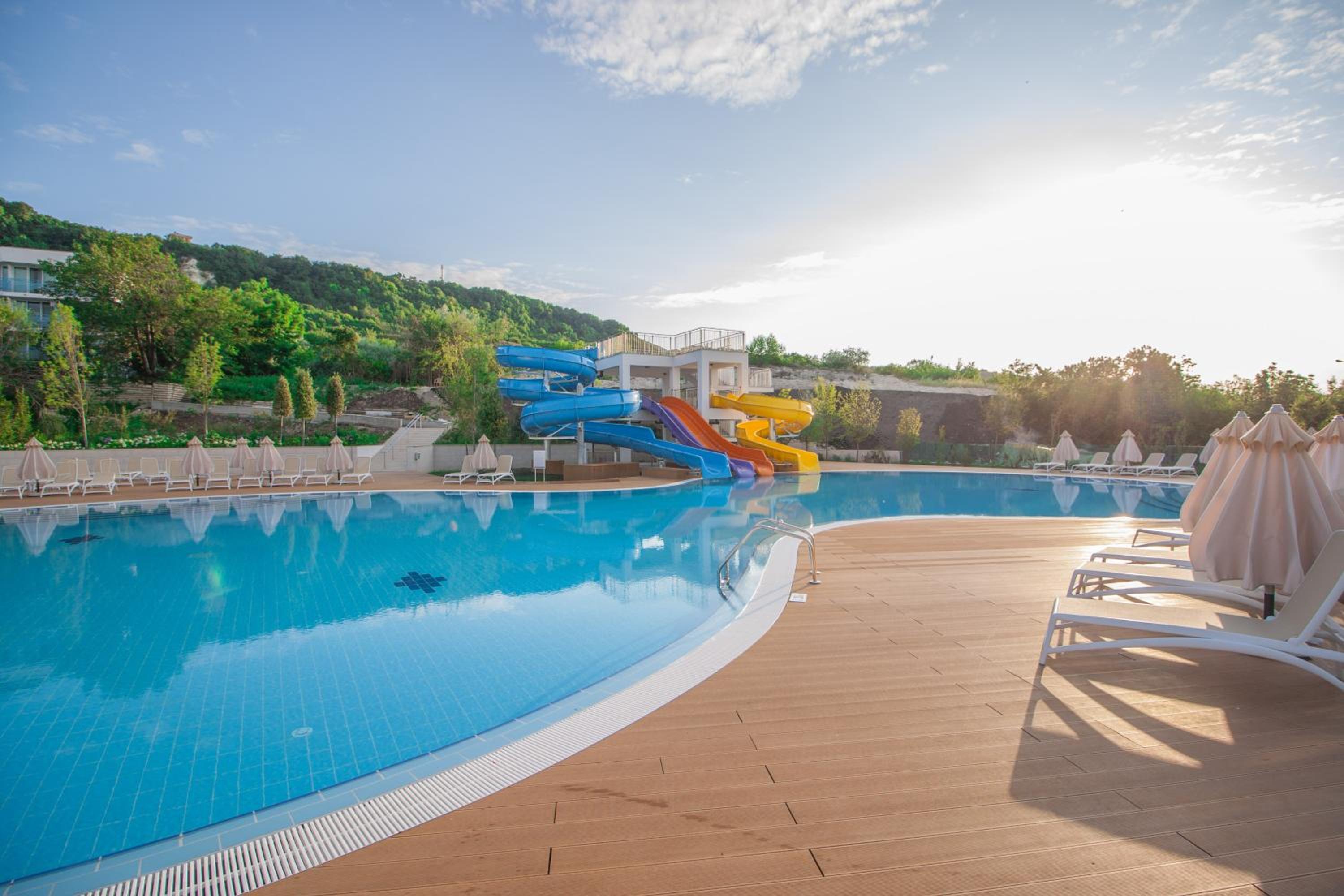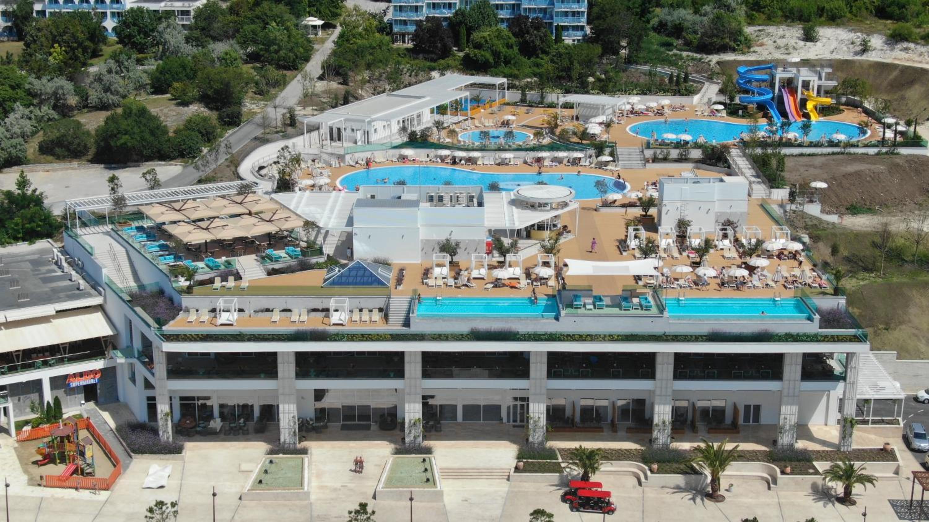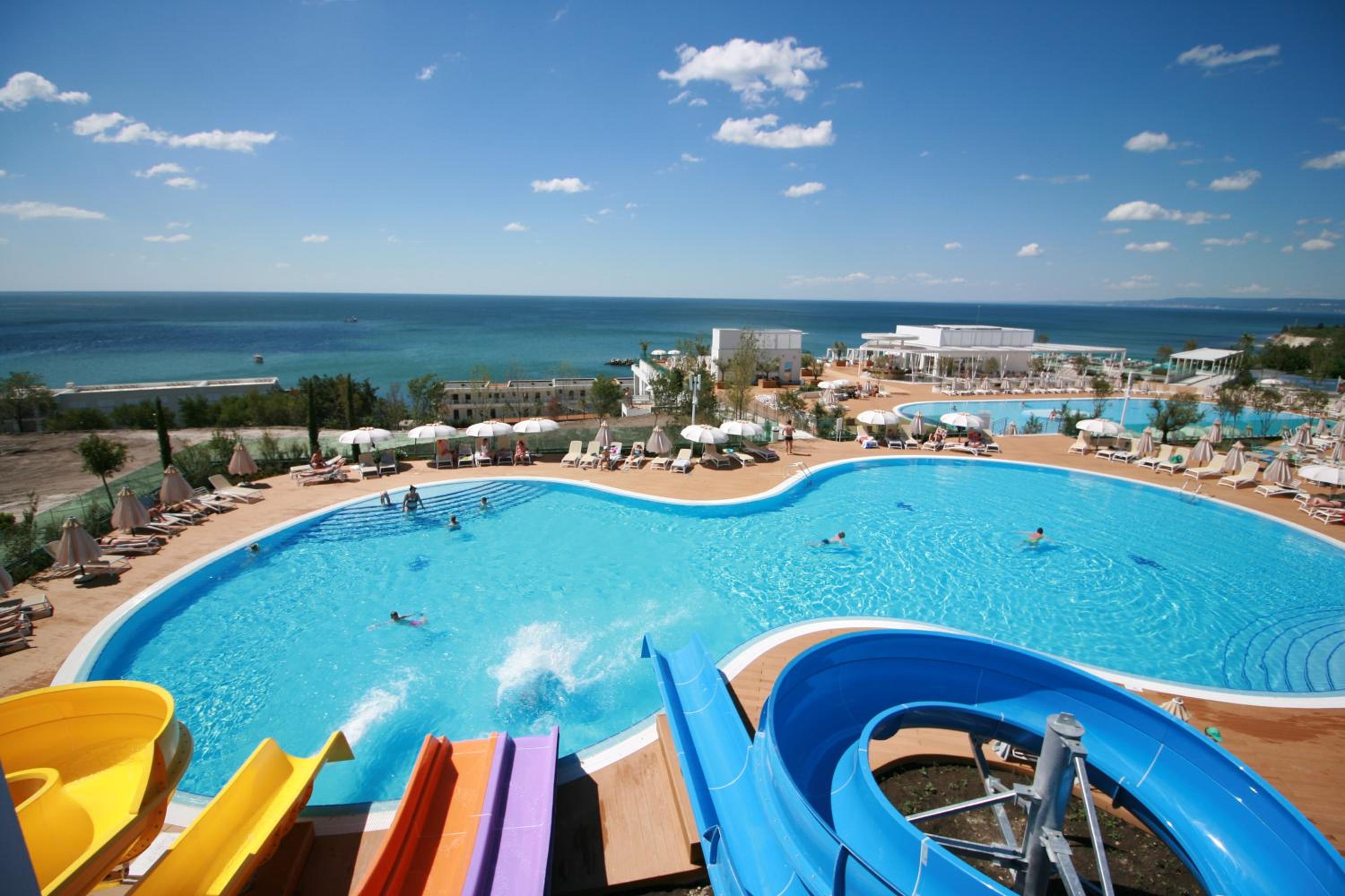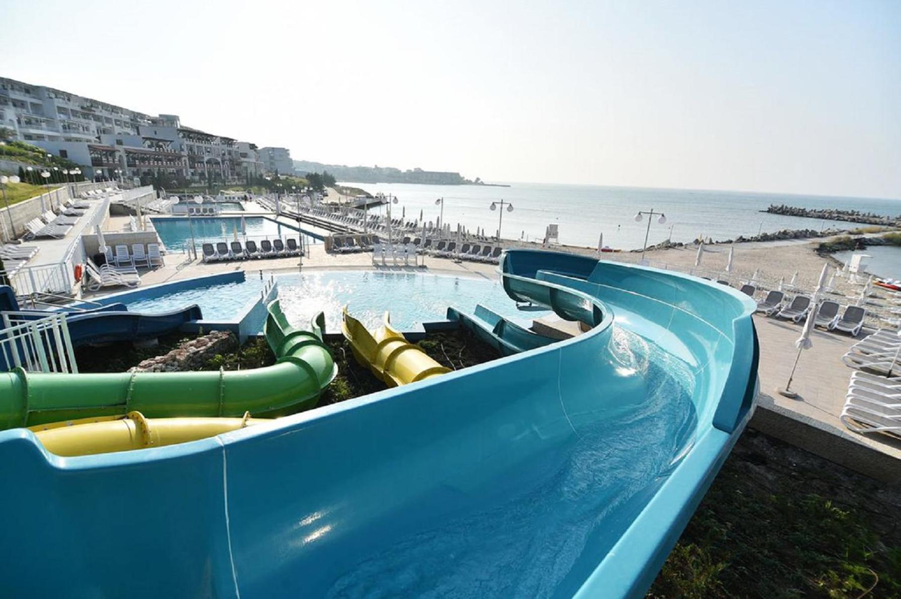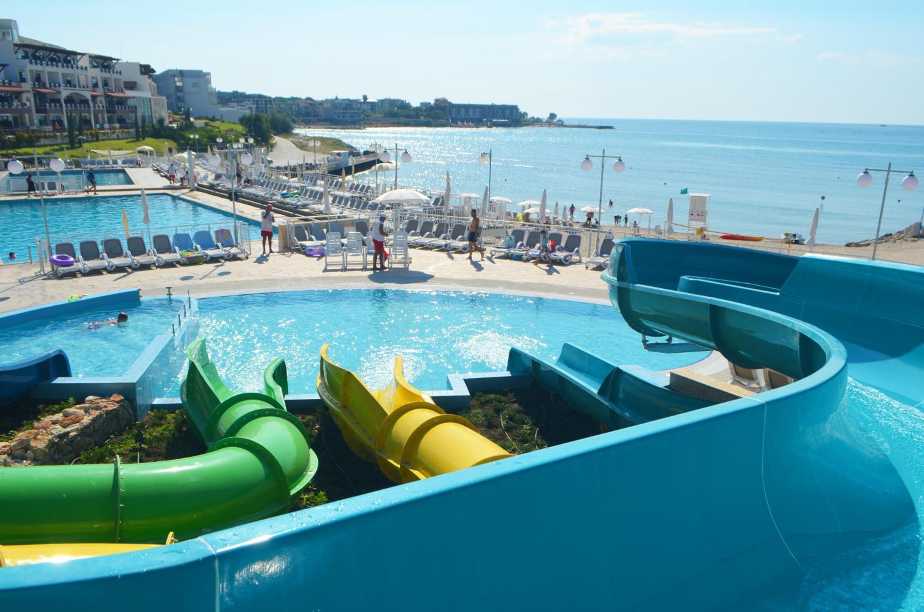 Наличието на много басейни и пързалки, и допълнителни атракции подходящи за деца.