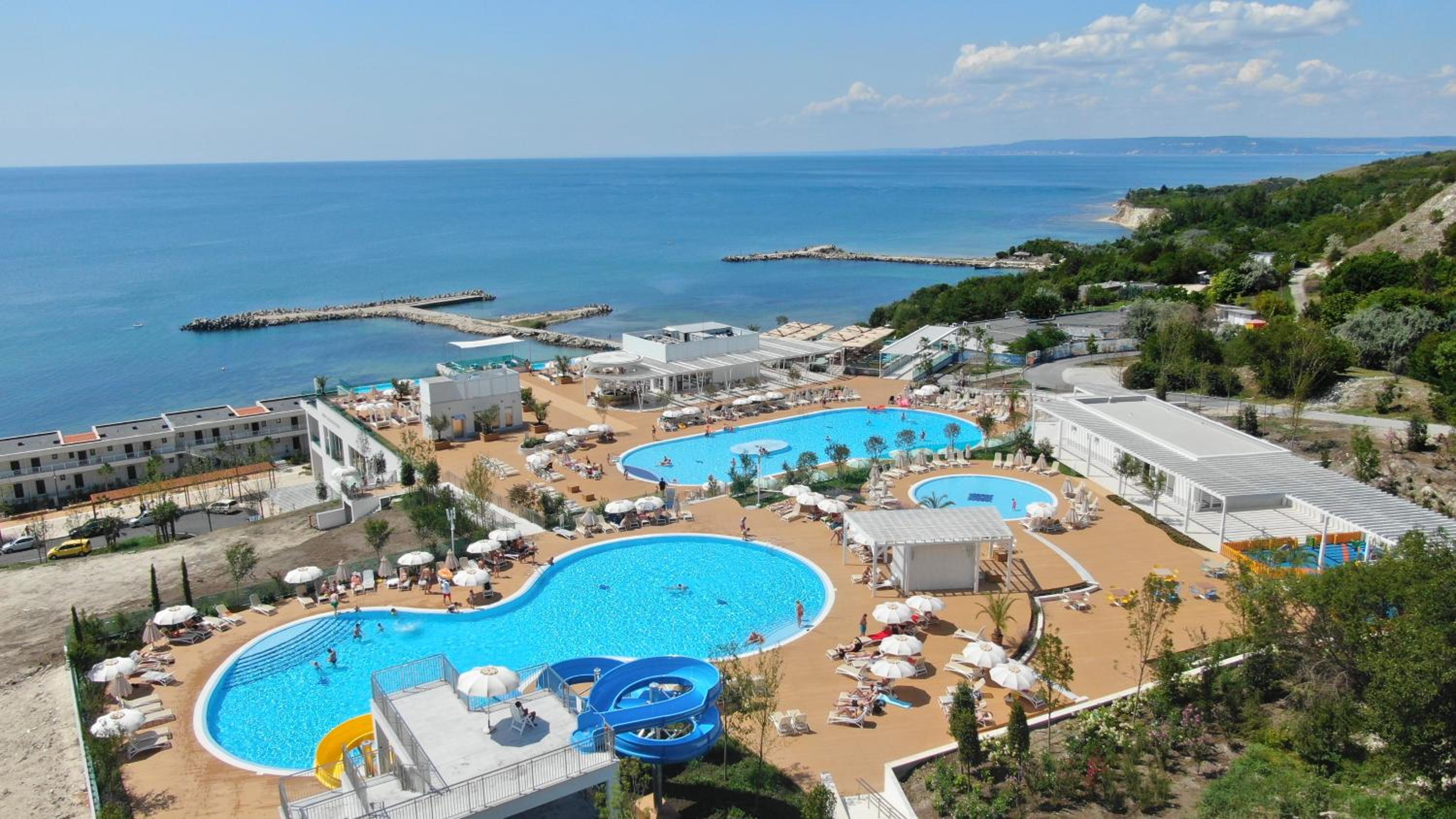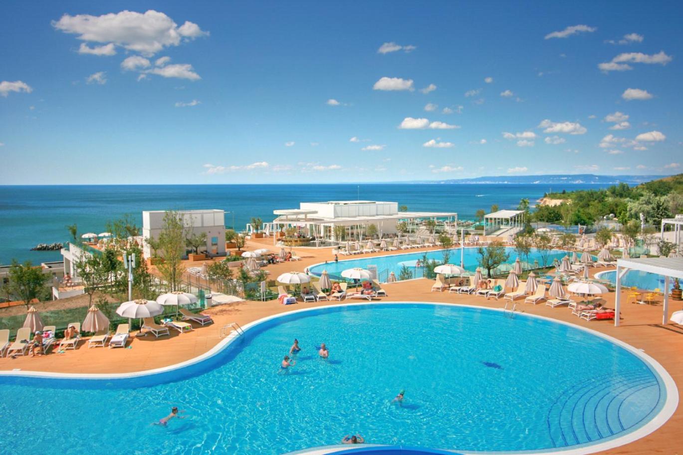 The White Lagoon Beach Resort in Kavarna offers modern studios and apartments with air conditioning, WiFi, and equipped kitchenettes. Guests can enjoy 2 pools, a gym with sea views, and a children's pool. The beachfront building provides sun beds, while the in-park building offers balconies in all rooms.