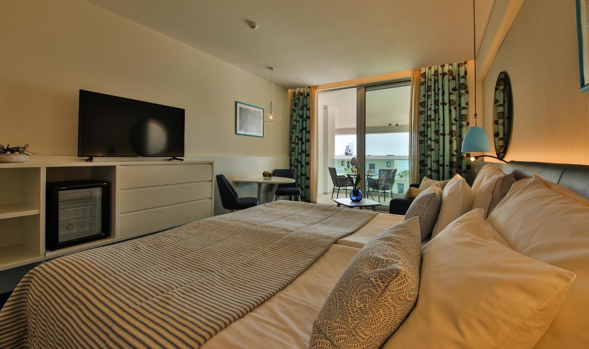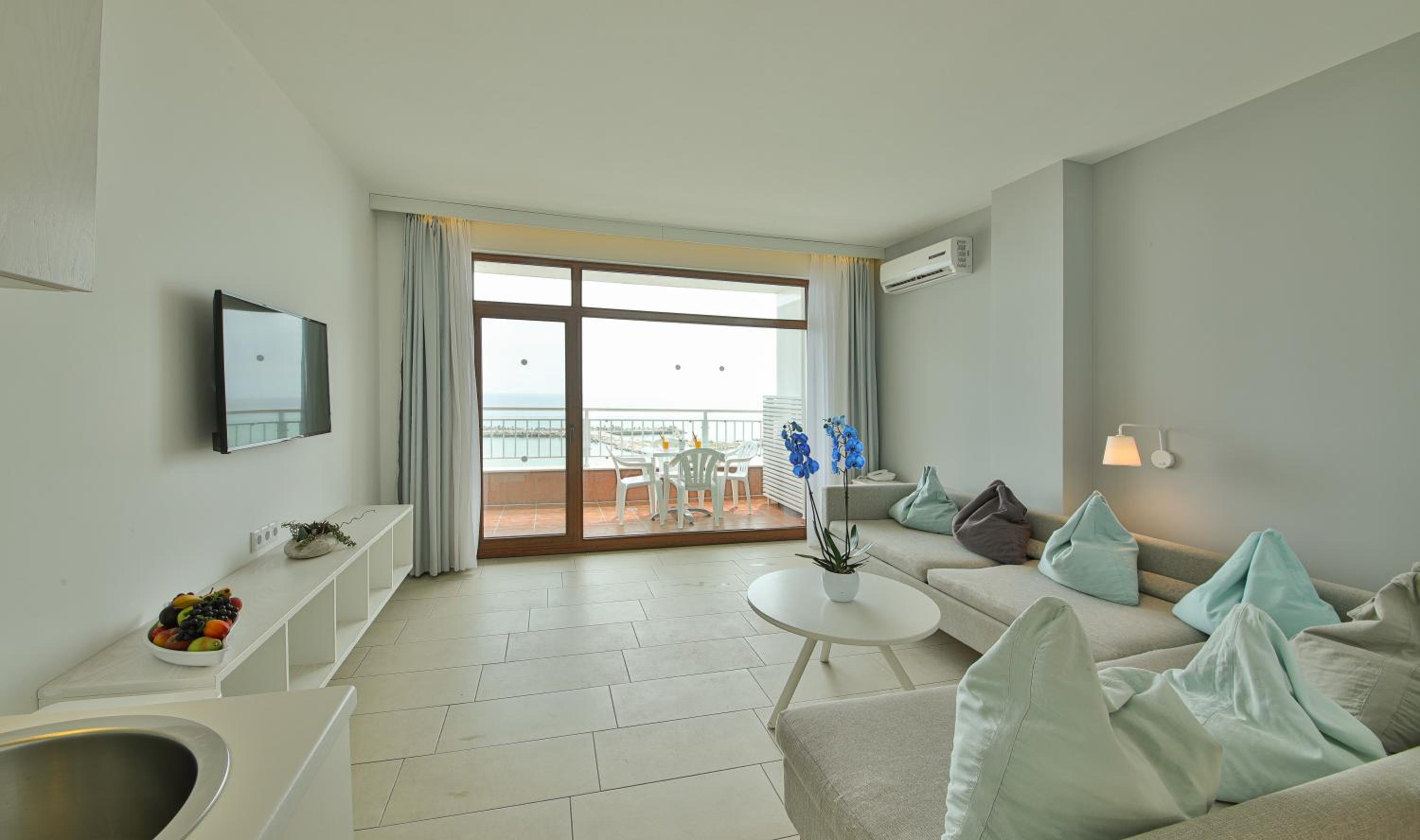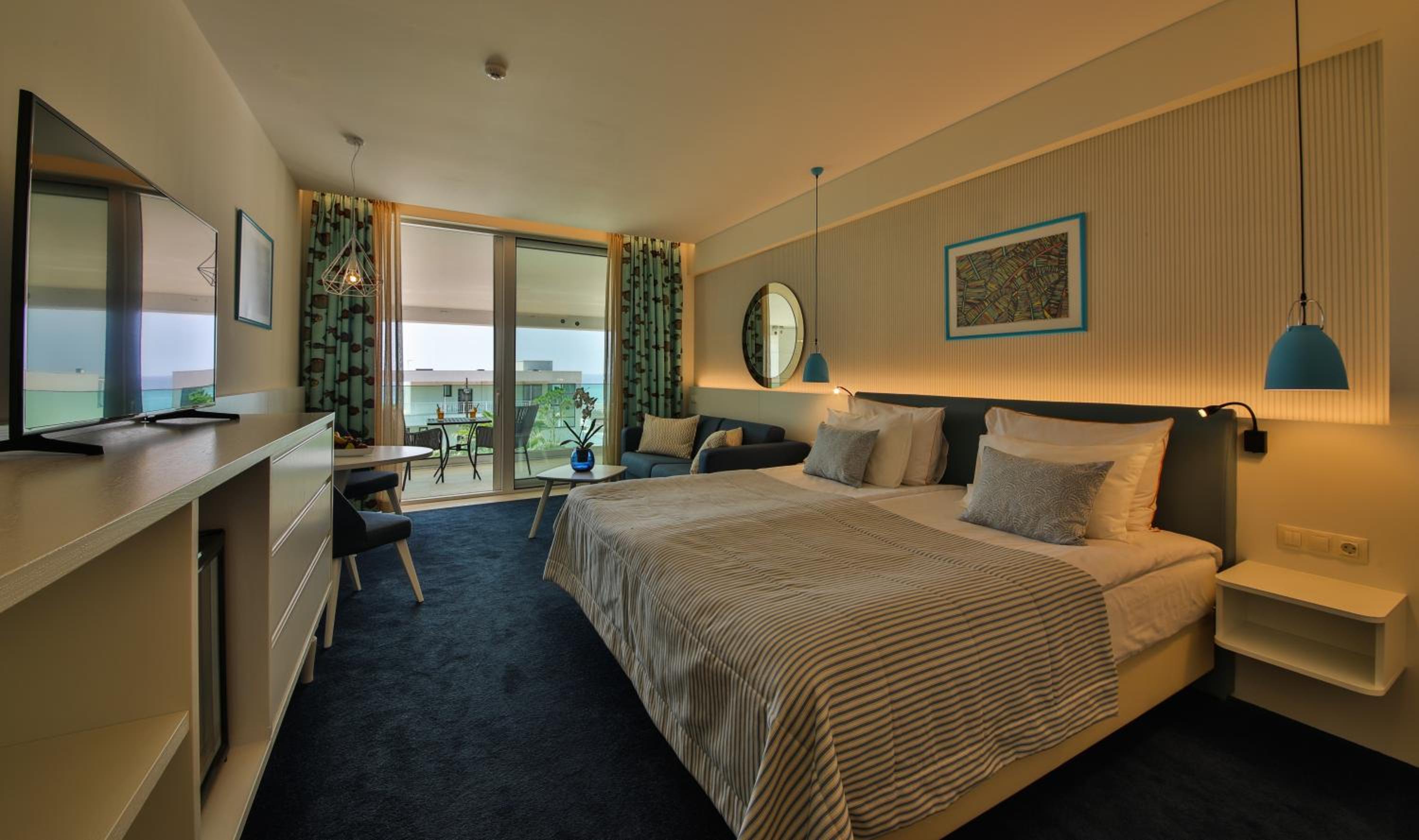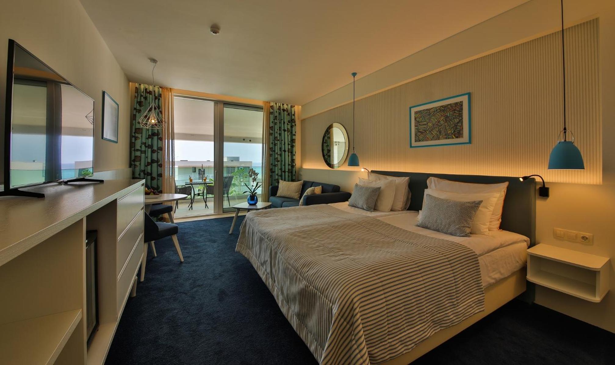 Curat, frumos, personal amabil, mancare buna, camera mare si balcon cu vedere, zona de piscine foarte ok