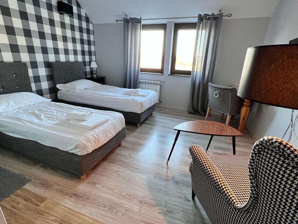 Indulge in rooms at Przystań featuring free WiFi, a cozy seating area, and private bathrooms. Enjoy the serene views of the garden and lake from the comfort of your room.