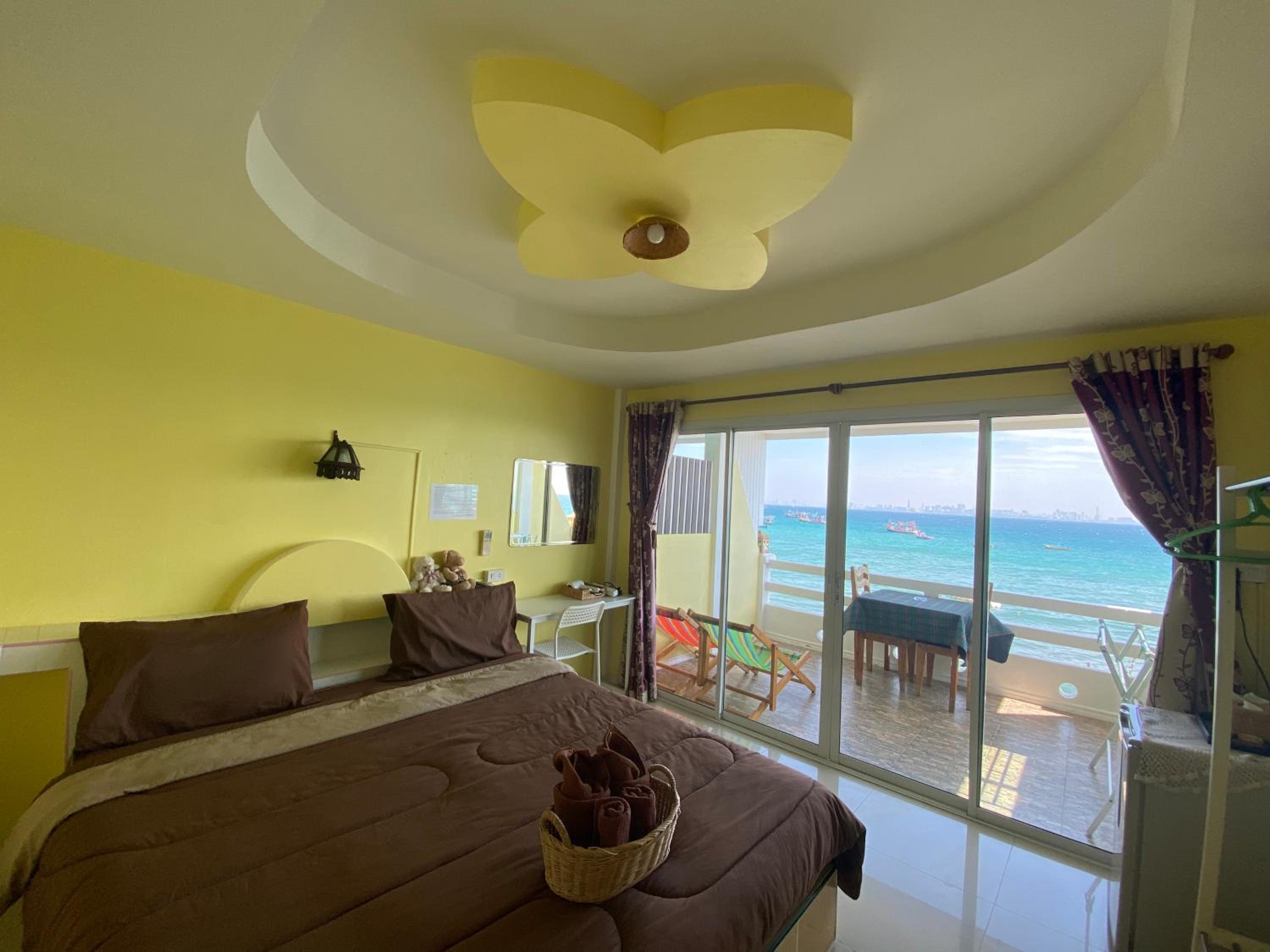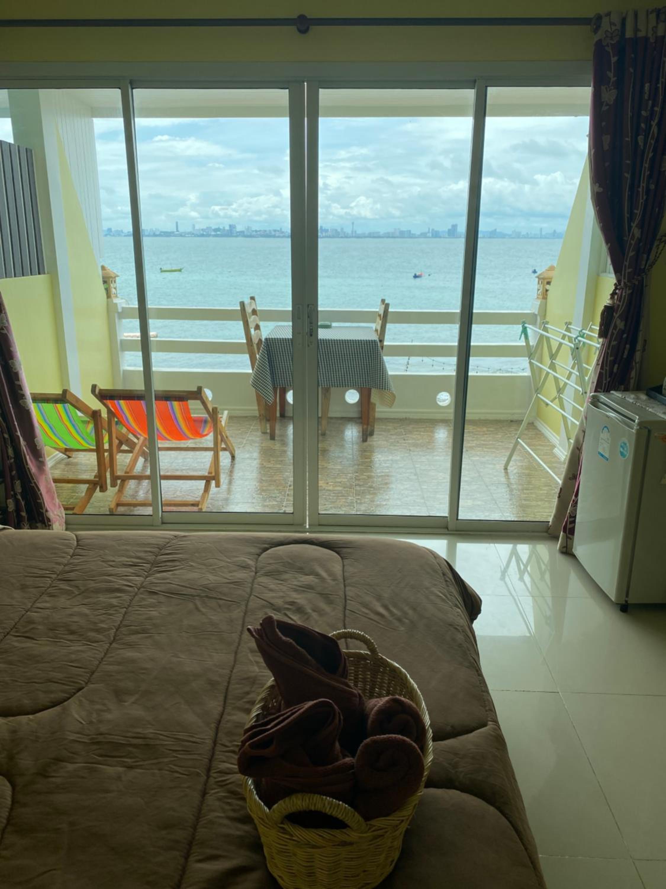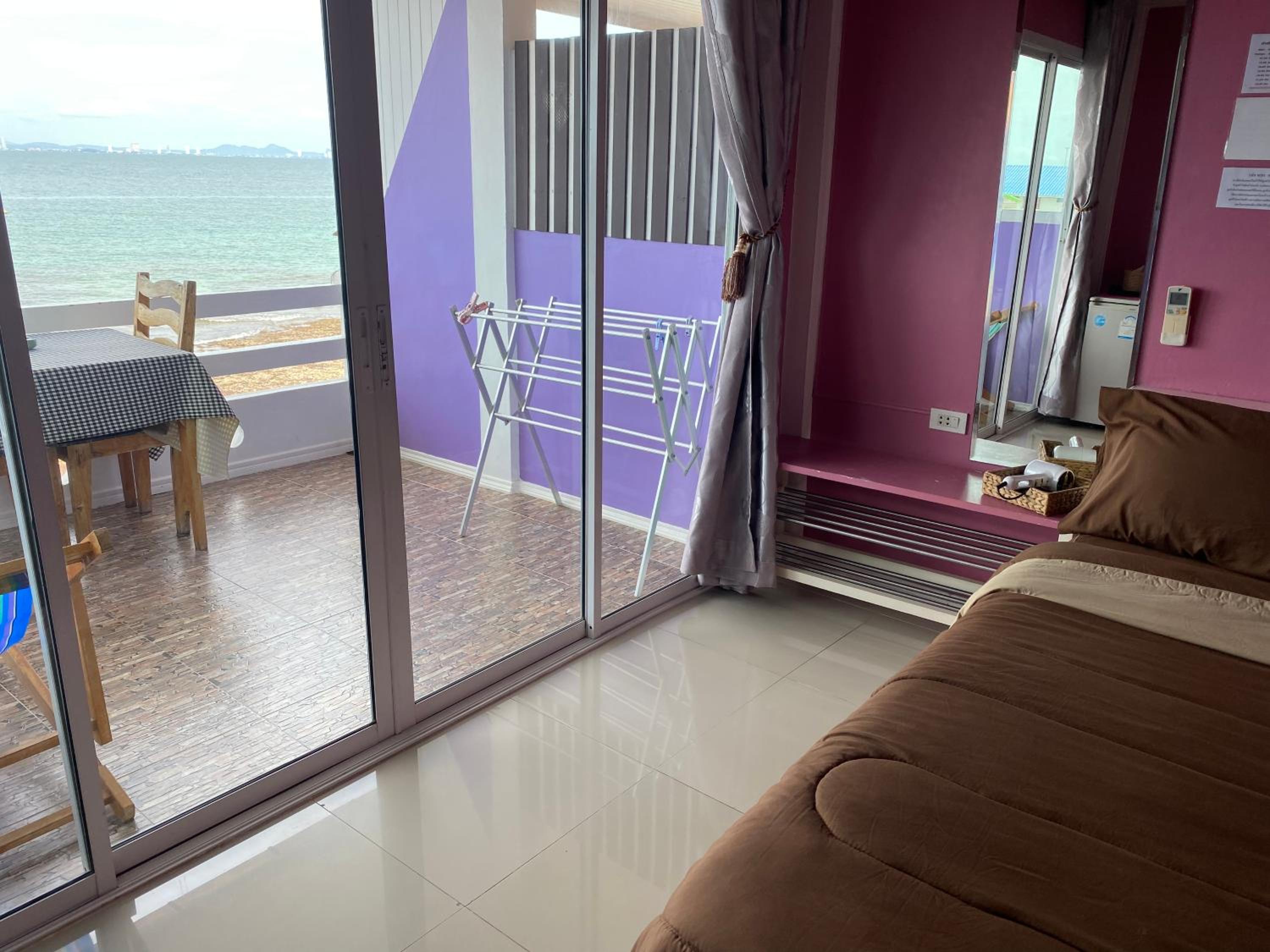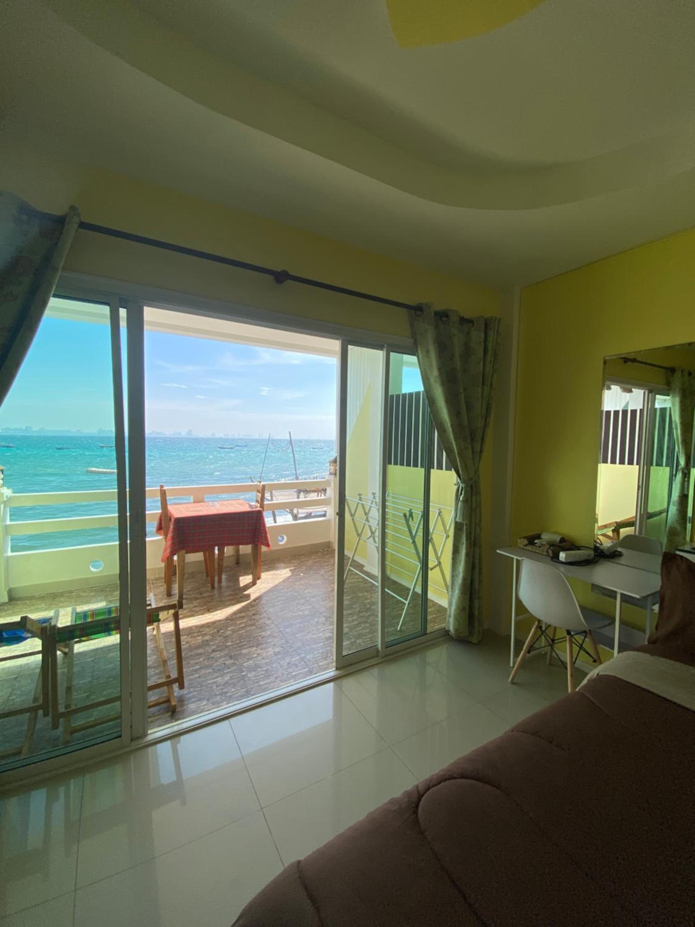 Amazing sea view from large window in room and balcony. Really friendly people. They made us a great cooked breakfast which we didn't expect and unfortunately because we are vegan we couldn't eat it....really sorry about that. We loved the room with fridge...hot water boiler would have been great....but since the mattress was comfortable...soft mattress in Thailand!!!!.....and we could see the sea and across to Pattaya from the bed...great sunrise...we will be back!!! Thank you!