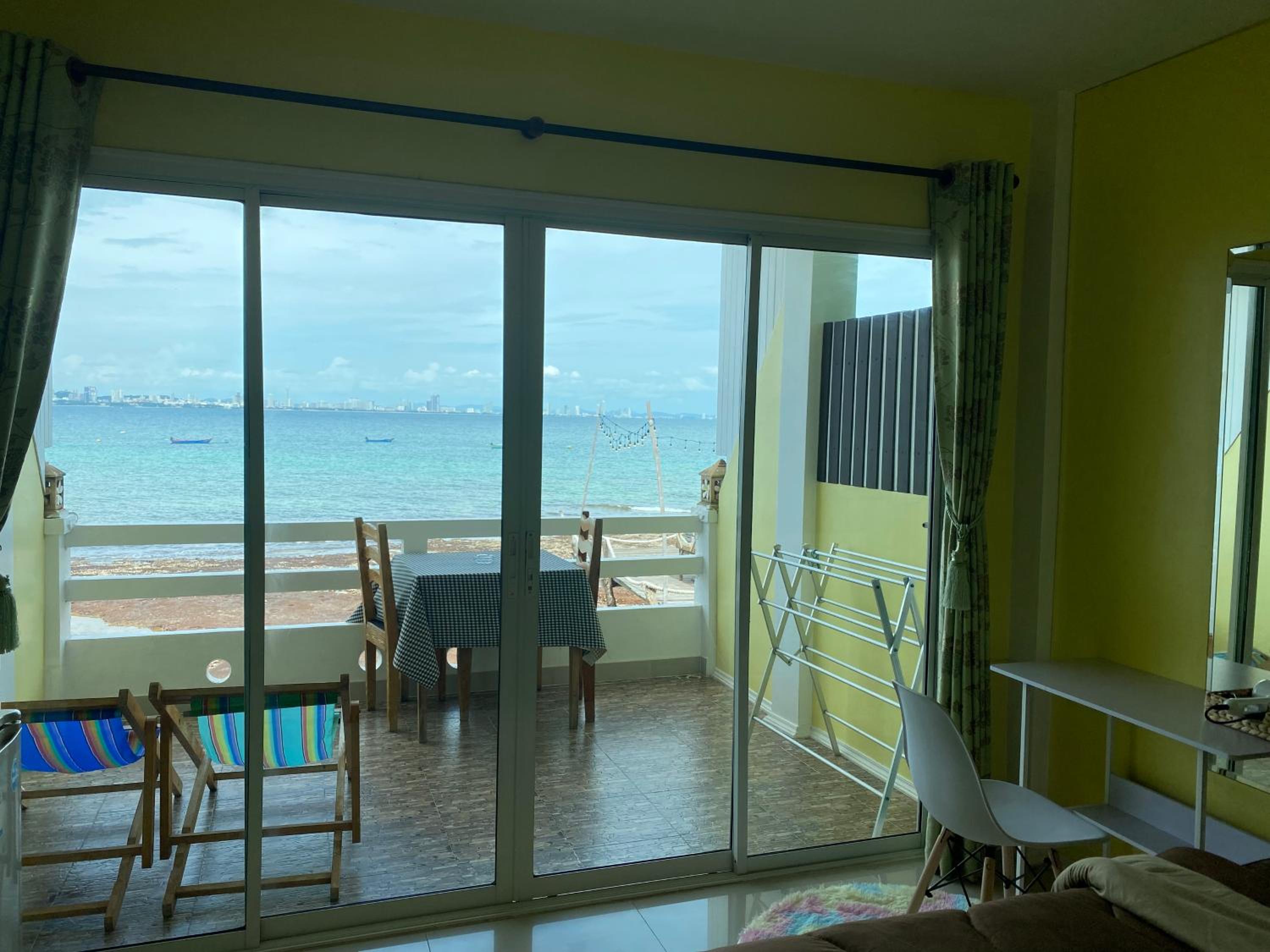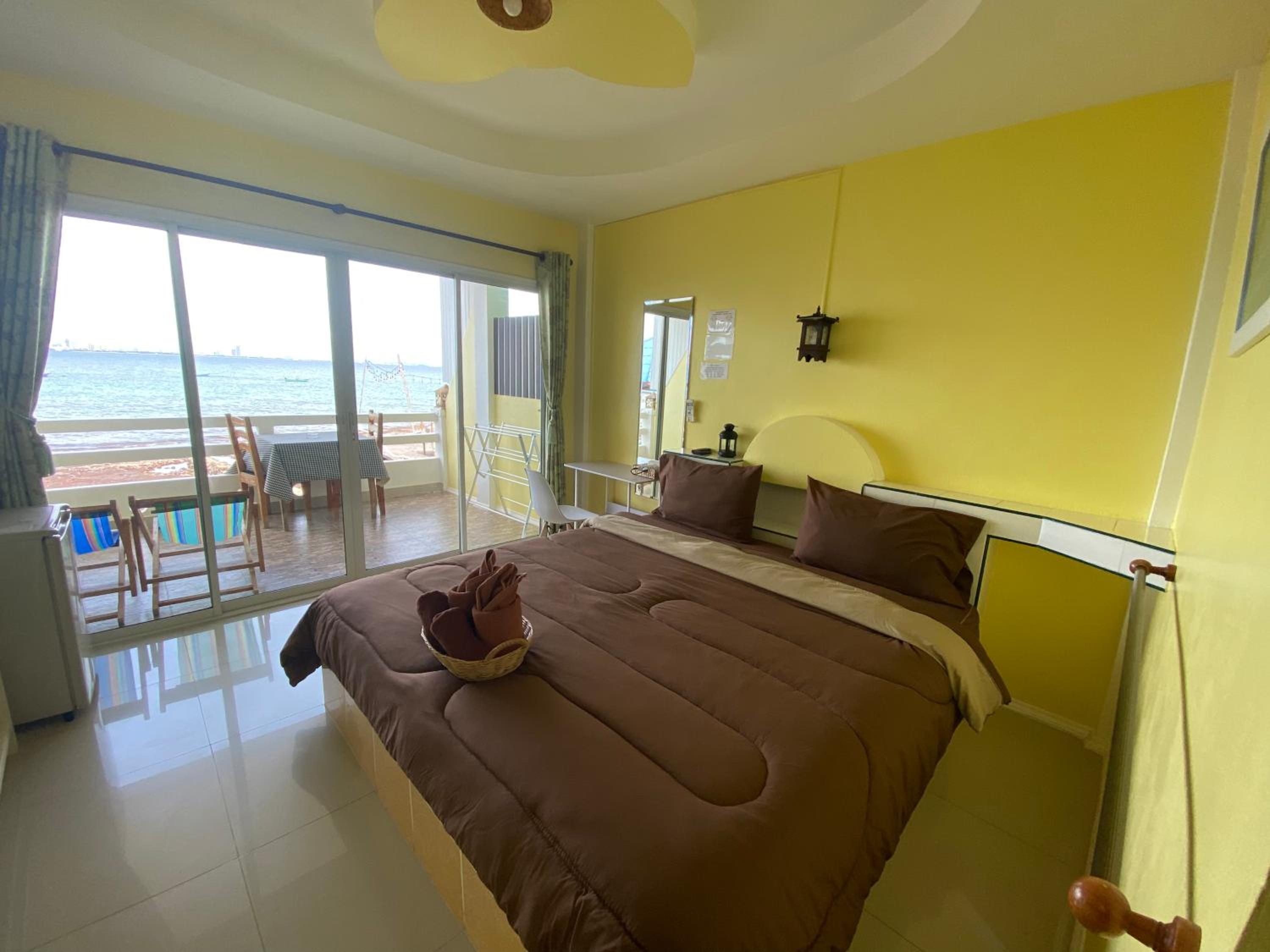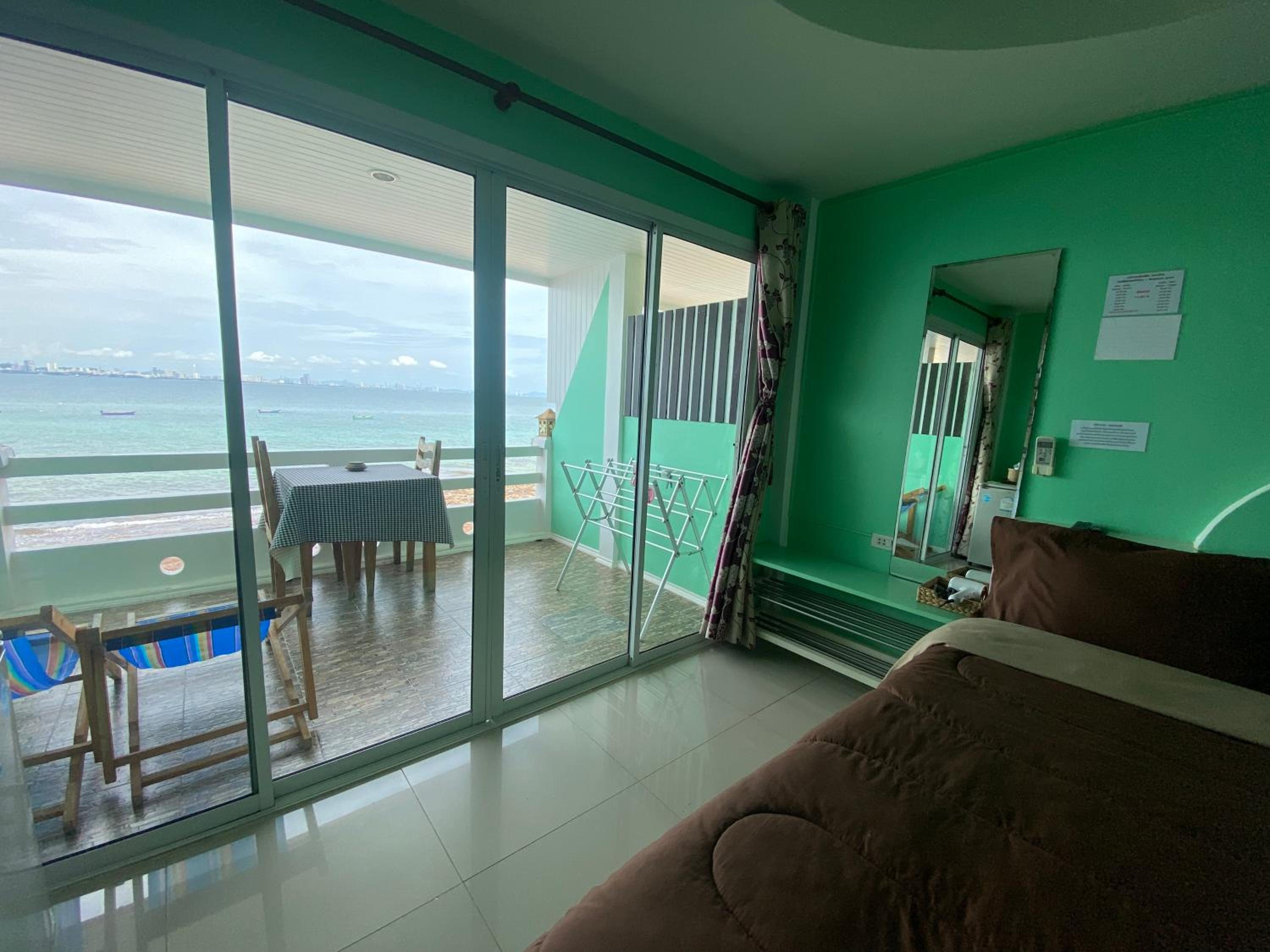 Amazing sea view from large window in room and balcony. Really friendly people. They made us a great cooked breakfast which we didn't expect and unfortunately because we are vegan we couldn't eat it....really sorry about that. We loved the room with fridge...hot water boiler would have been great....but since the mattress was comfortable...soft mattress in Thailand!!!!.....and we could see the sea and across to Pattaya from the bed...great sunrise...we will be back!!! Thank you!