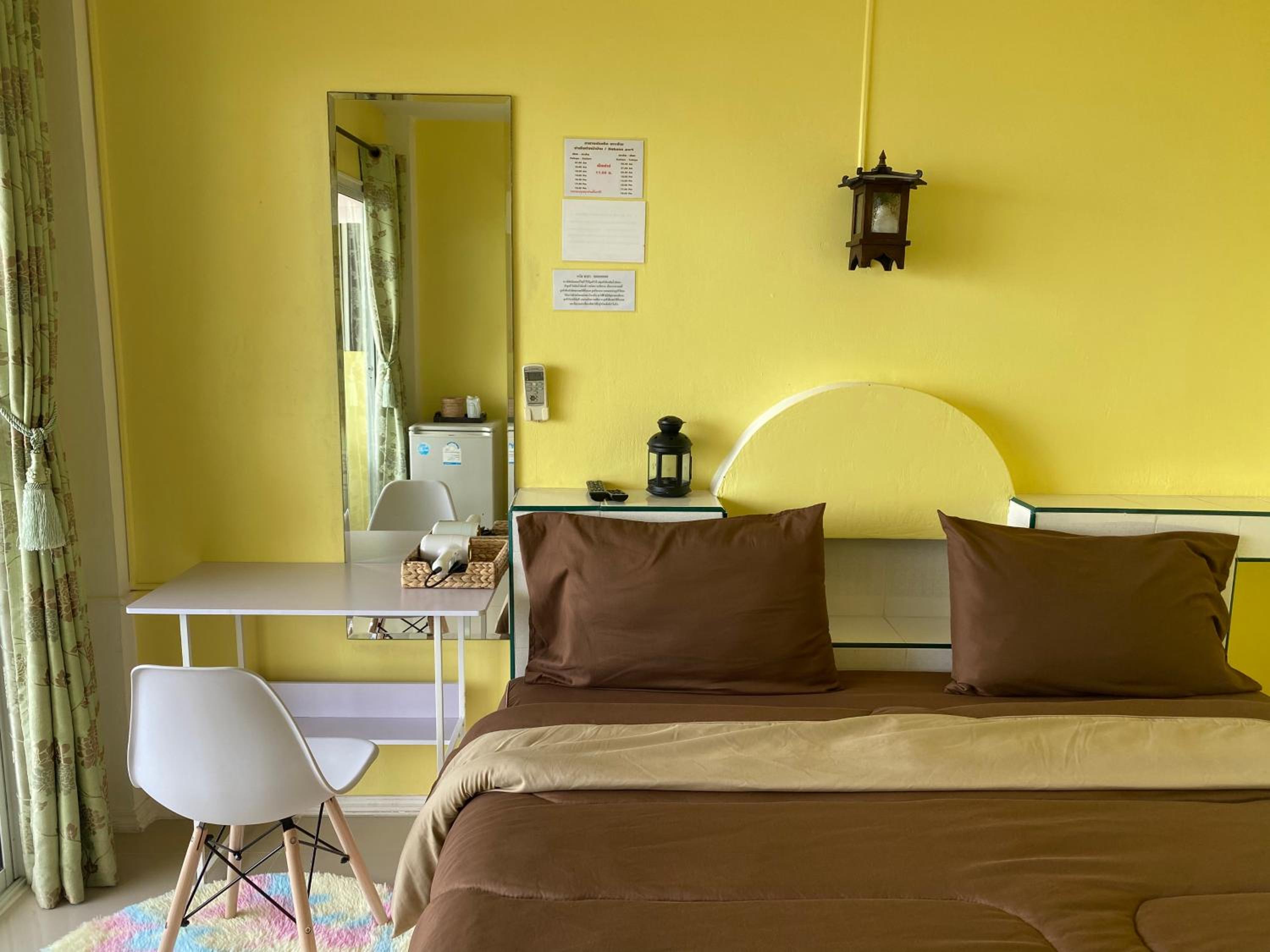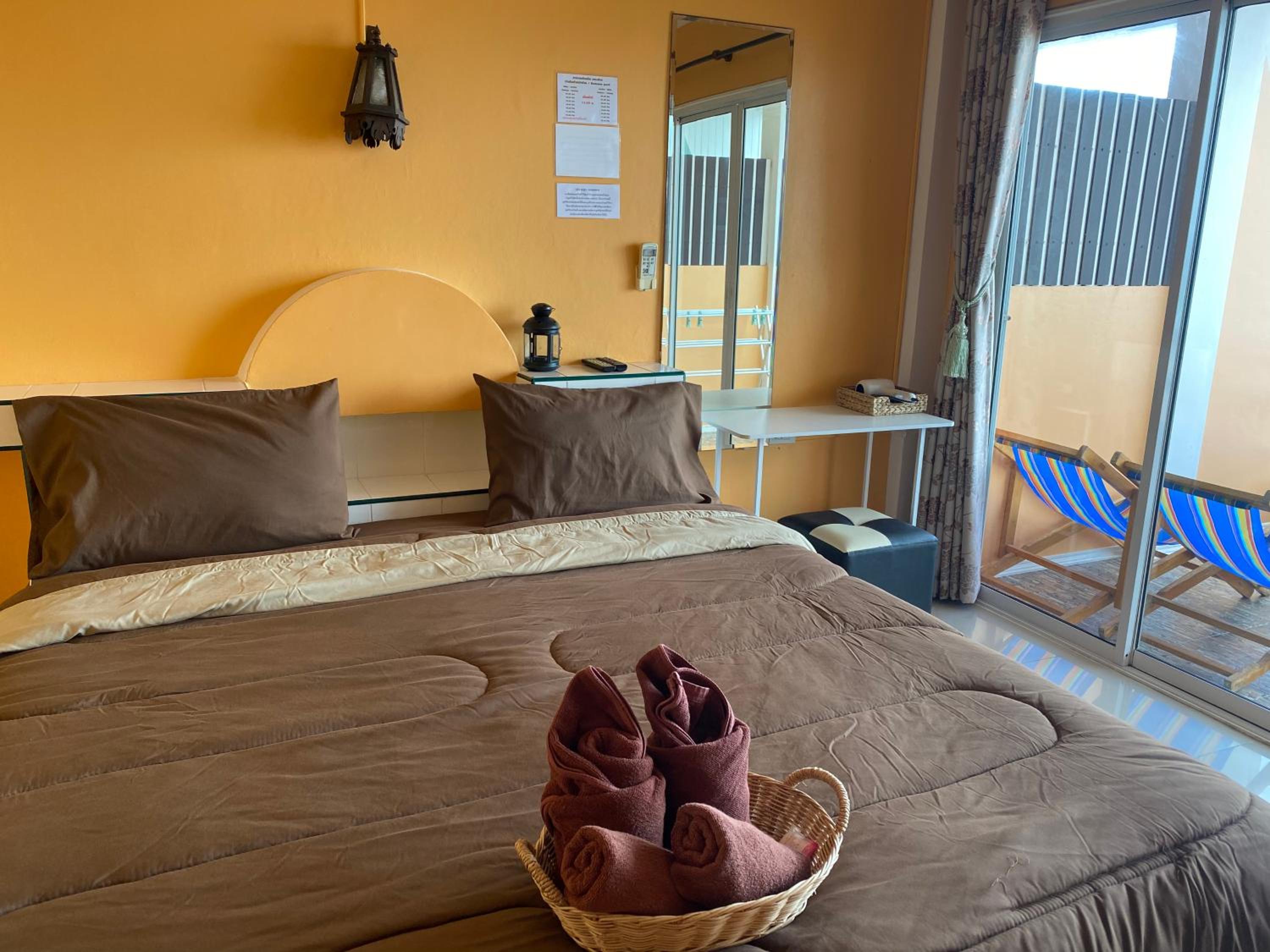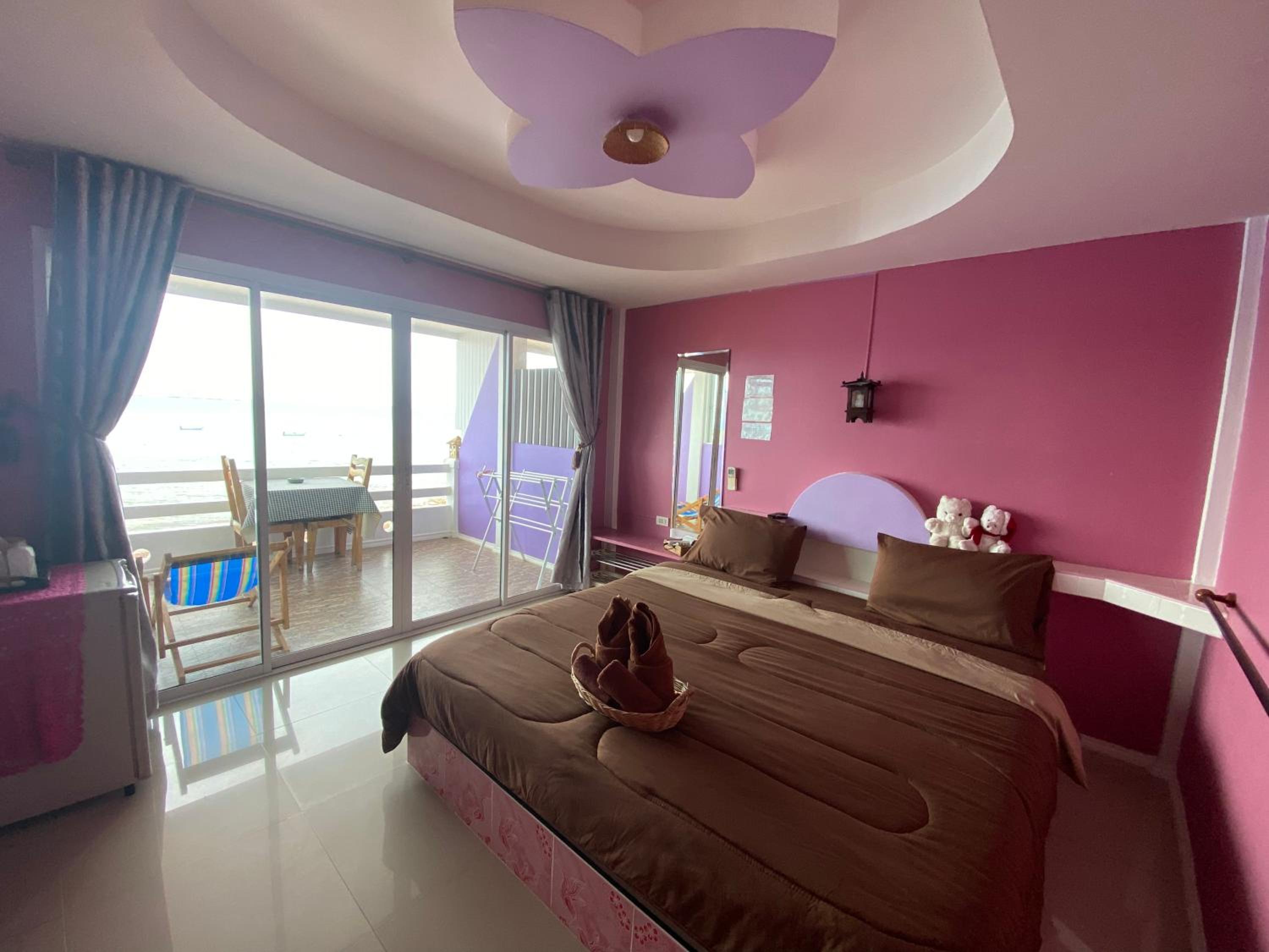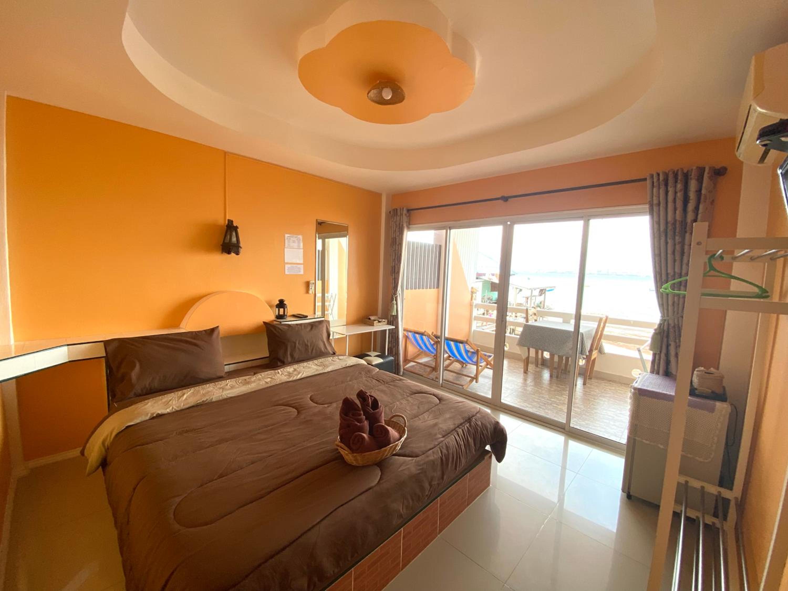 Amazing sea view from large window in room and balcony. Really friendly people. They made us a great cooked breakfast which we didn't expect and unfortunately because we are vegan we couldn't eat it....really sorry about that. We loved the room with fridge...hot water boiler would have been great....but since the mattress was comfortable...soft mattress in Thailand!!!!.....and we could see the sea and across to Pattaya from the bed...great sunrise...we will be back!!! Thank you!