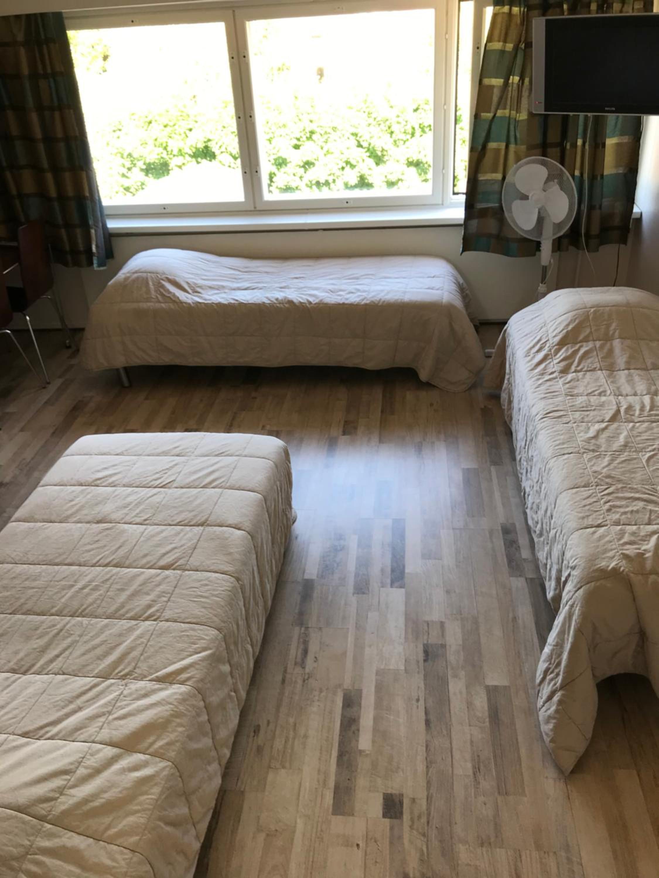 Aamiaista ei ollut ollenkaan ilmoituksesta huolimatta ja varaamani leveän sängyn sijaan sain kaksi kapeaa.