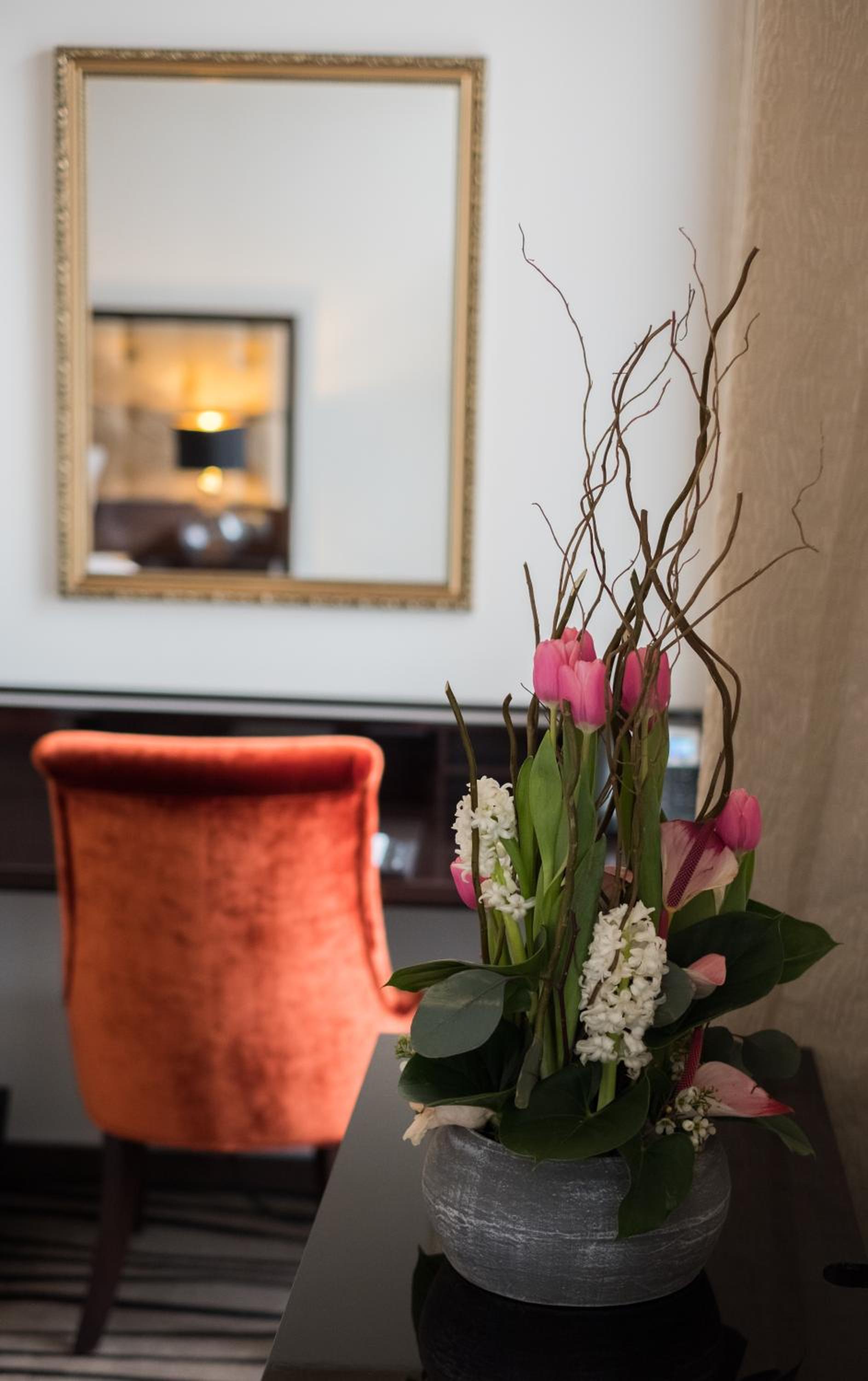 Beautiful interior, art gallery in the restaurant, very clean and chic room, kind and hospitable people who work there .
