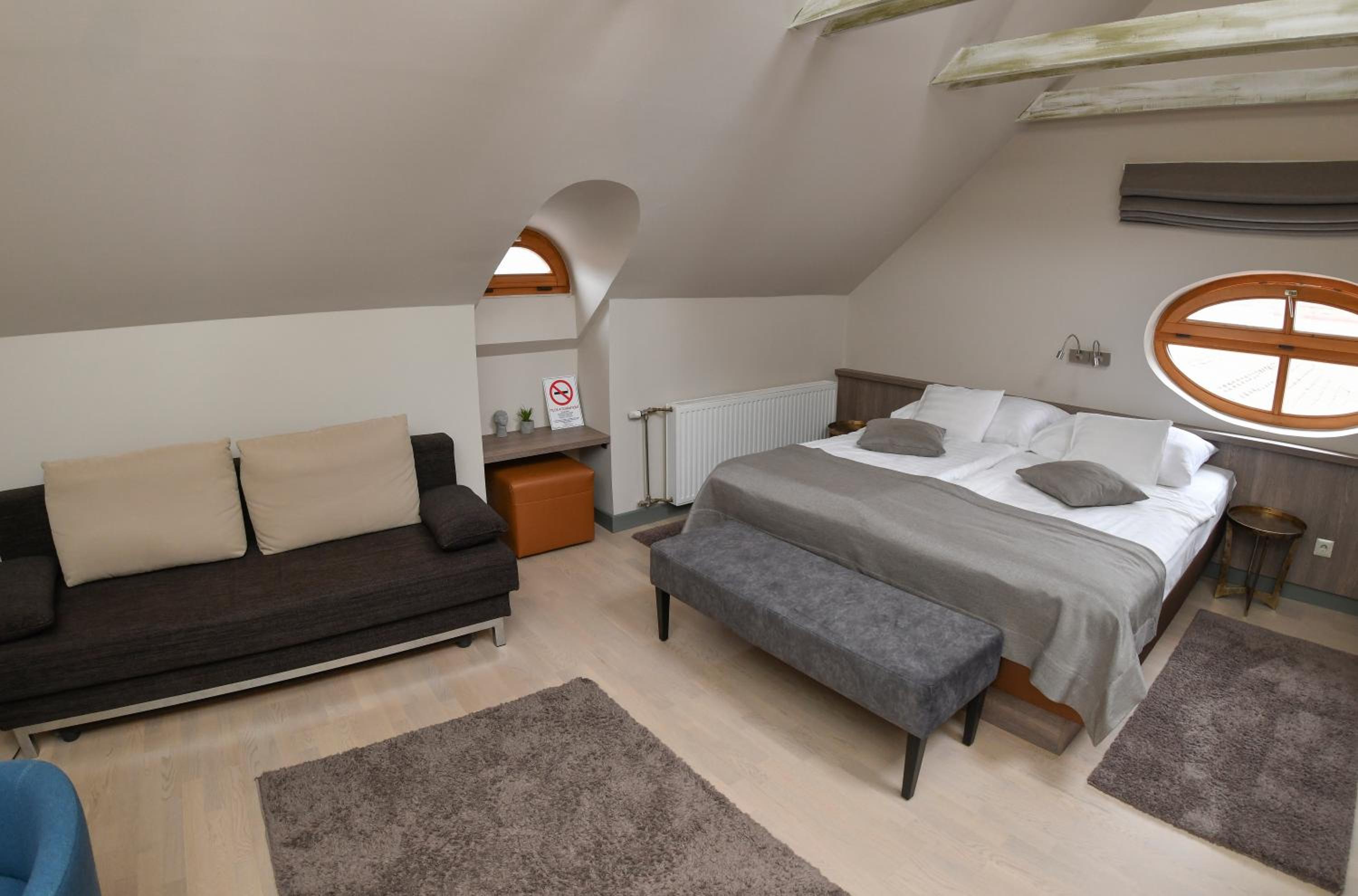 Situated in the heart of Kőszeg, guests can easily explore the historic Kőszeg Castle located just 300 meters away. The hotel also provides easy access to the local train station and offers a transfer service for further excursions to Szombathely and Bük with its renowned spa facilities.