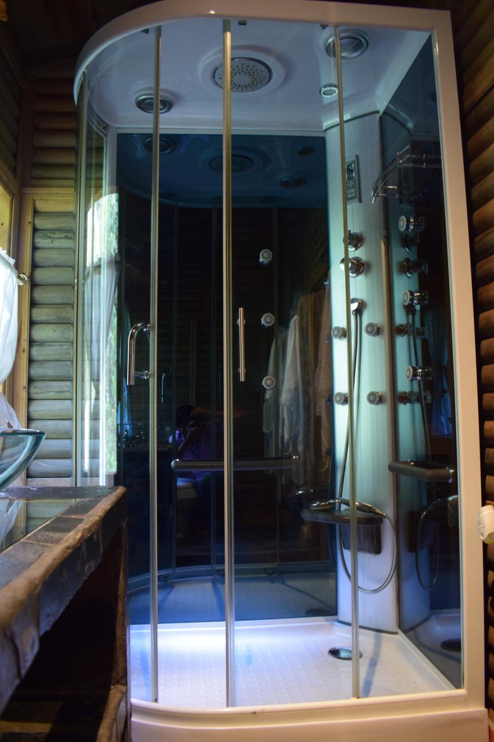 We zaten in de suite. Ver overprized. Flesje water niet inclusief. Koude douche. Extra 5% voor creditcard betalingen.