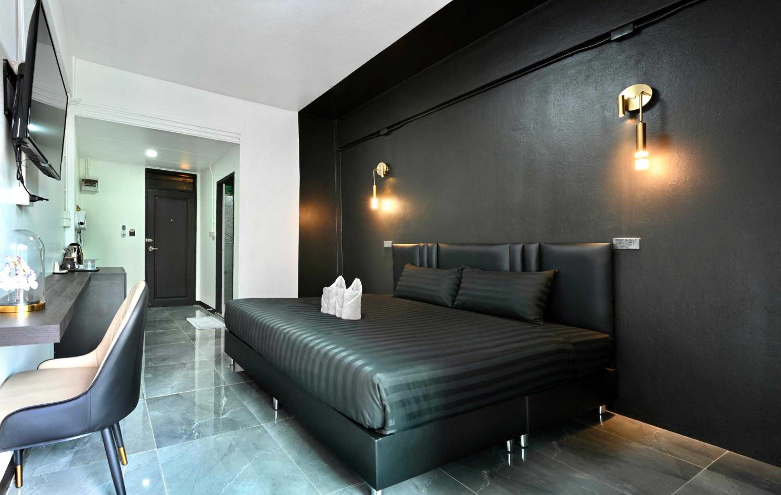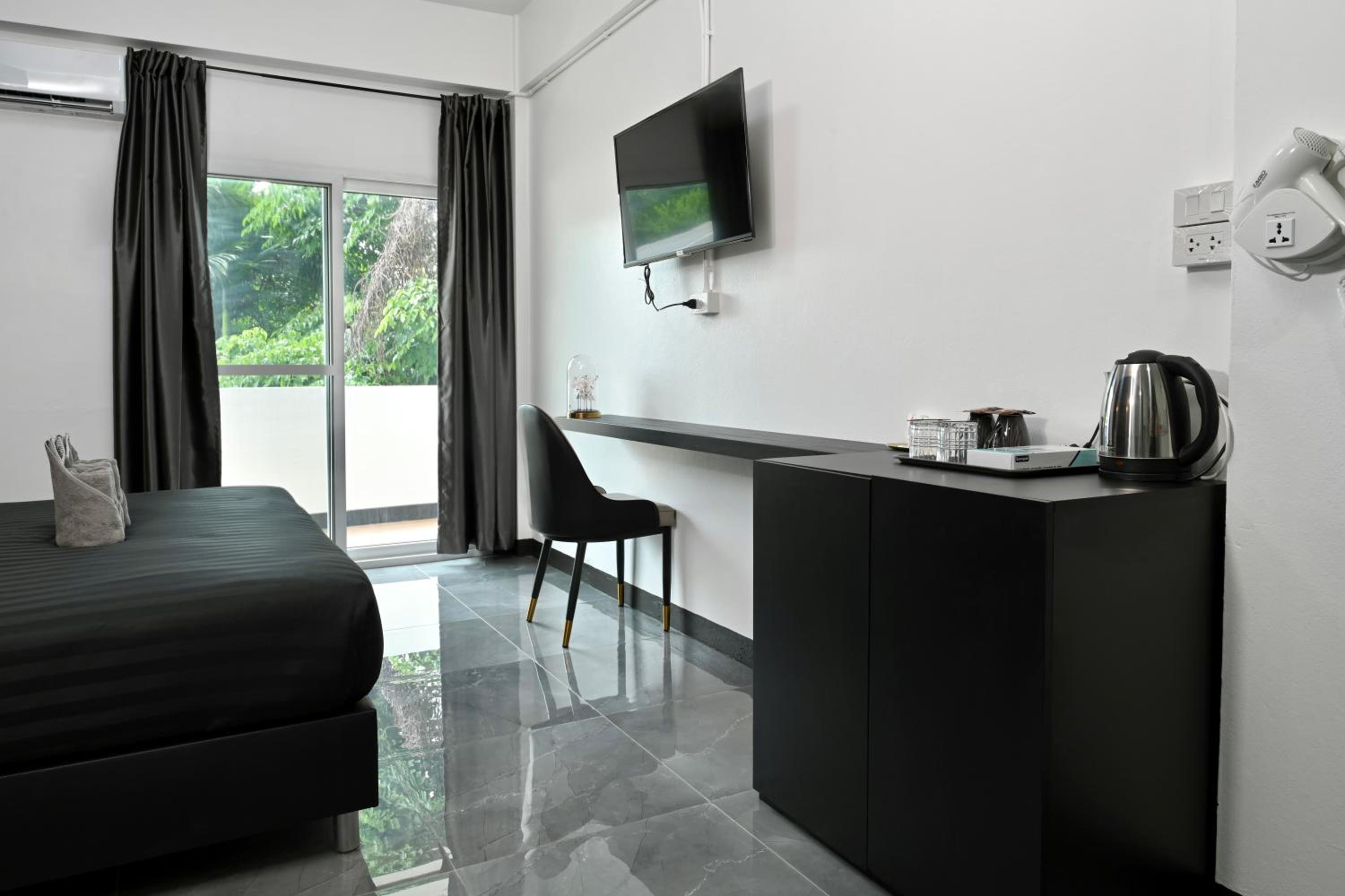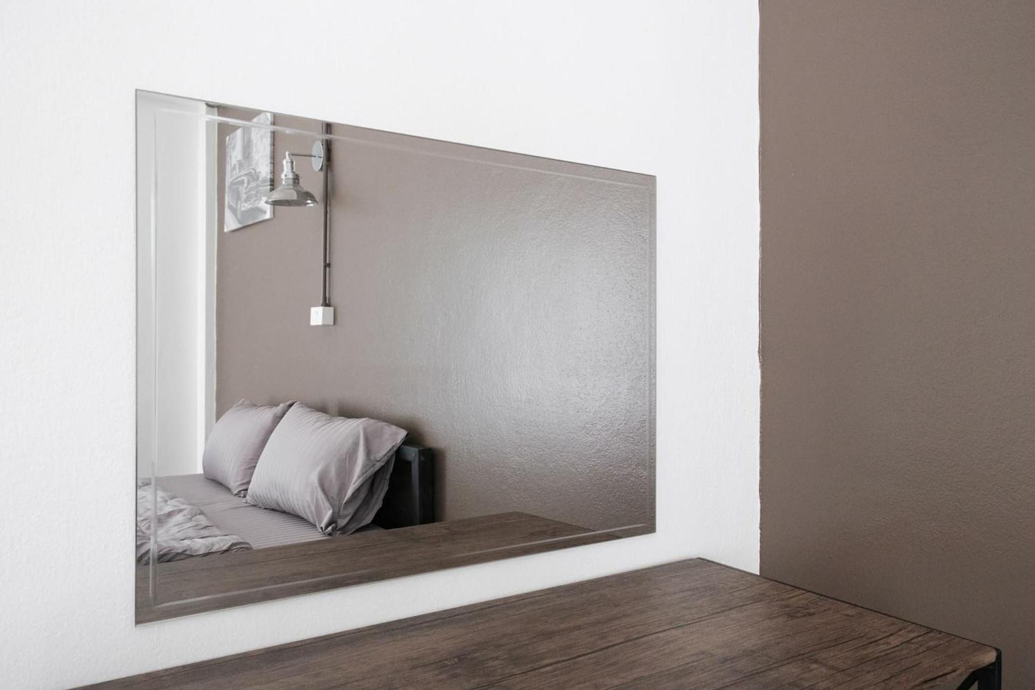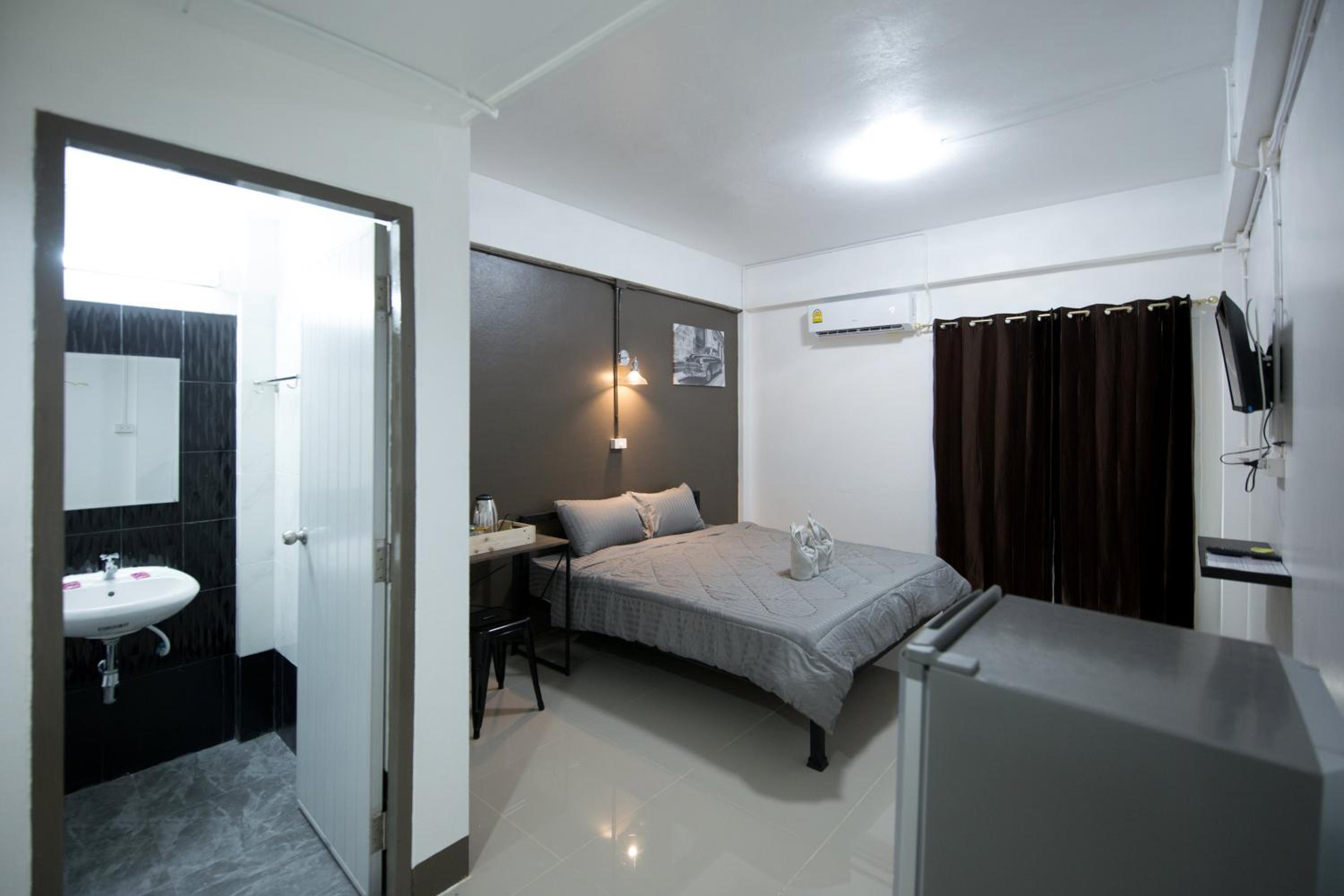 Room has all the basic needs: bed with clean sheets, water, tea and coffee, fridge, bathroom with nice towels, tv and ac.