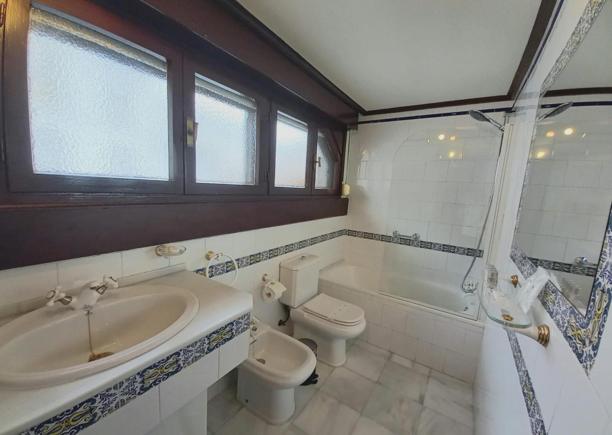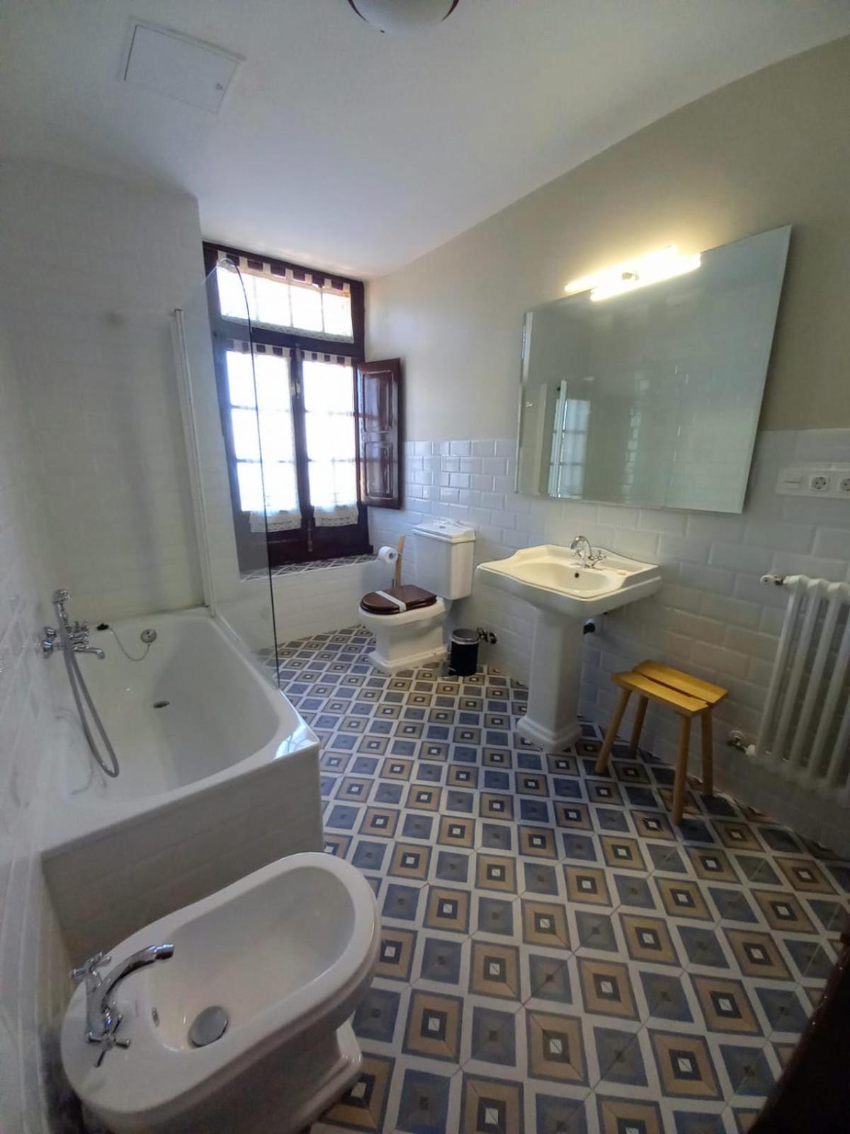 La habitación , remodelada a nuevo con las mismas características de la edad original del Edificio . Todos los elementos de un gusto increíble, desde el mobiliario hasta el mínimo detalle de la tapa de la bañera! Buen gusto y gran inversión puesta en este edificio histórico .