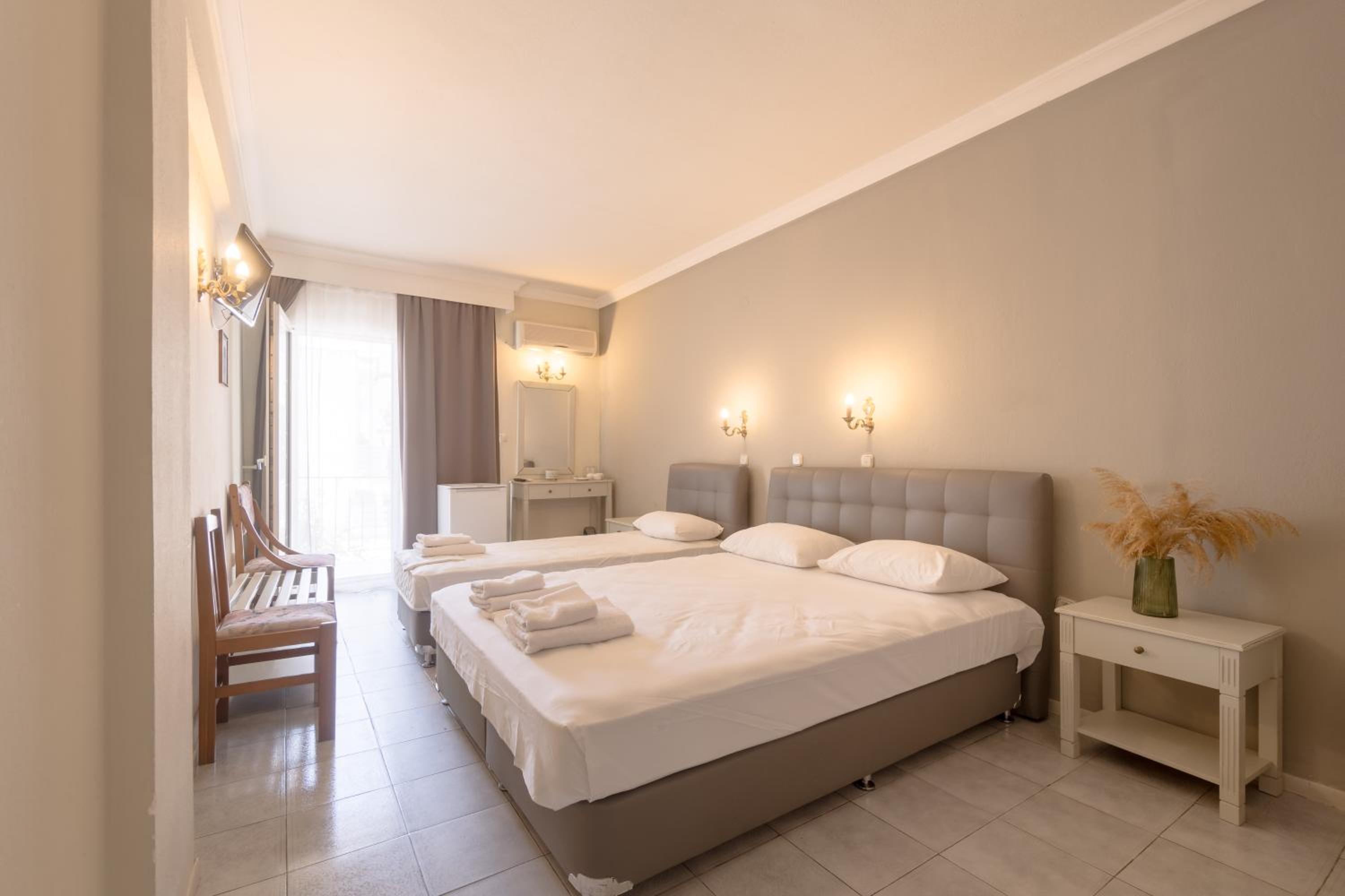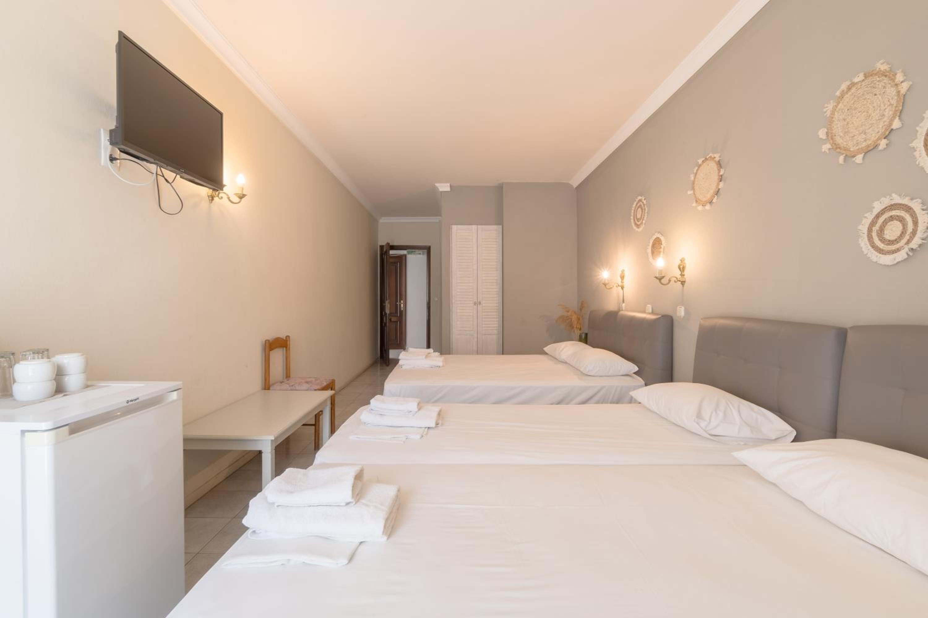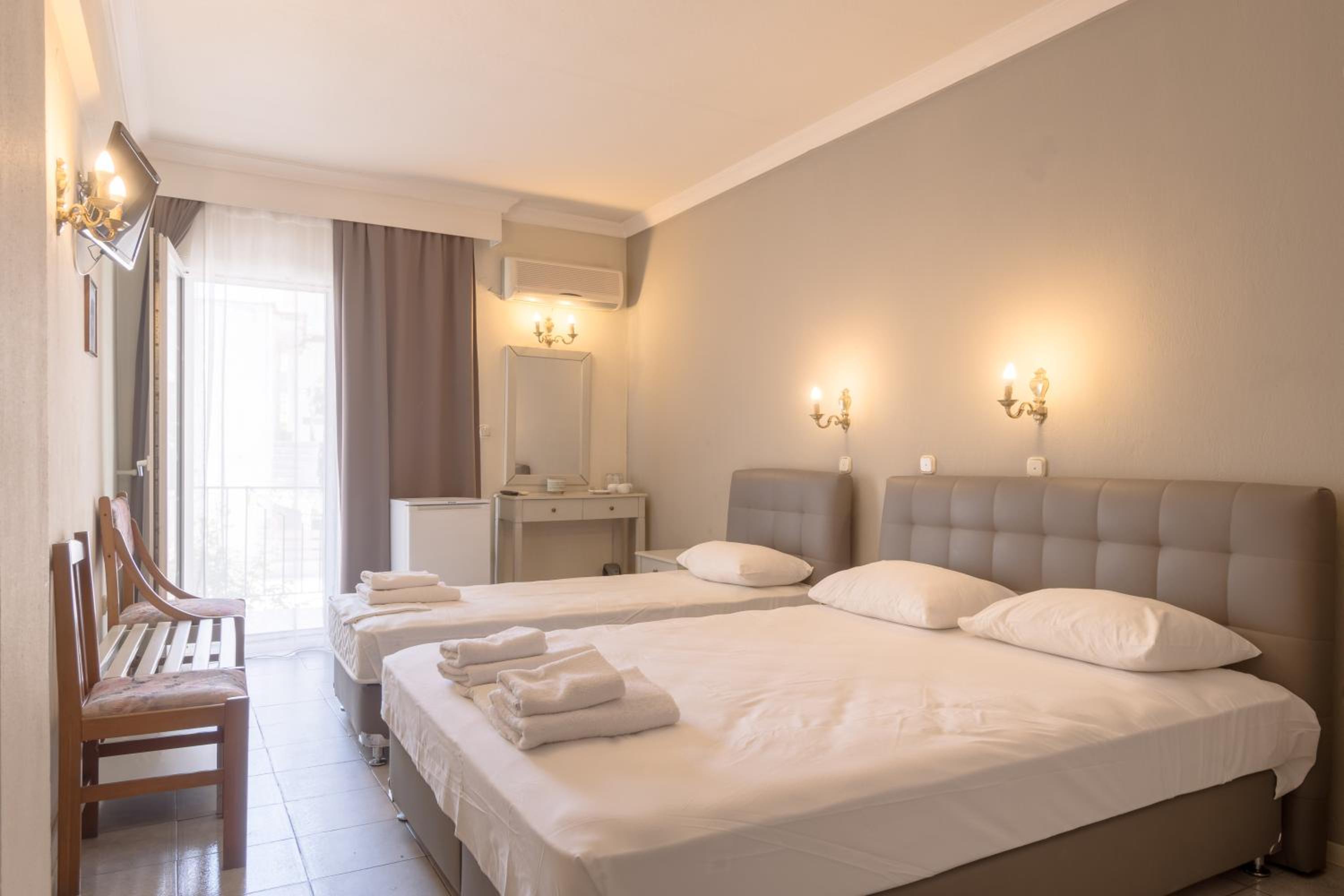 Mironi Hotel, nestled in the heart of Thassos, offers guests a serene escape just a stone's throw away from the bustling port. The air-conditioned rooms, each with a private balcony, provide a tranquil retreat with modern amenities such as a fridge and TV.