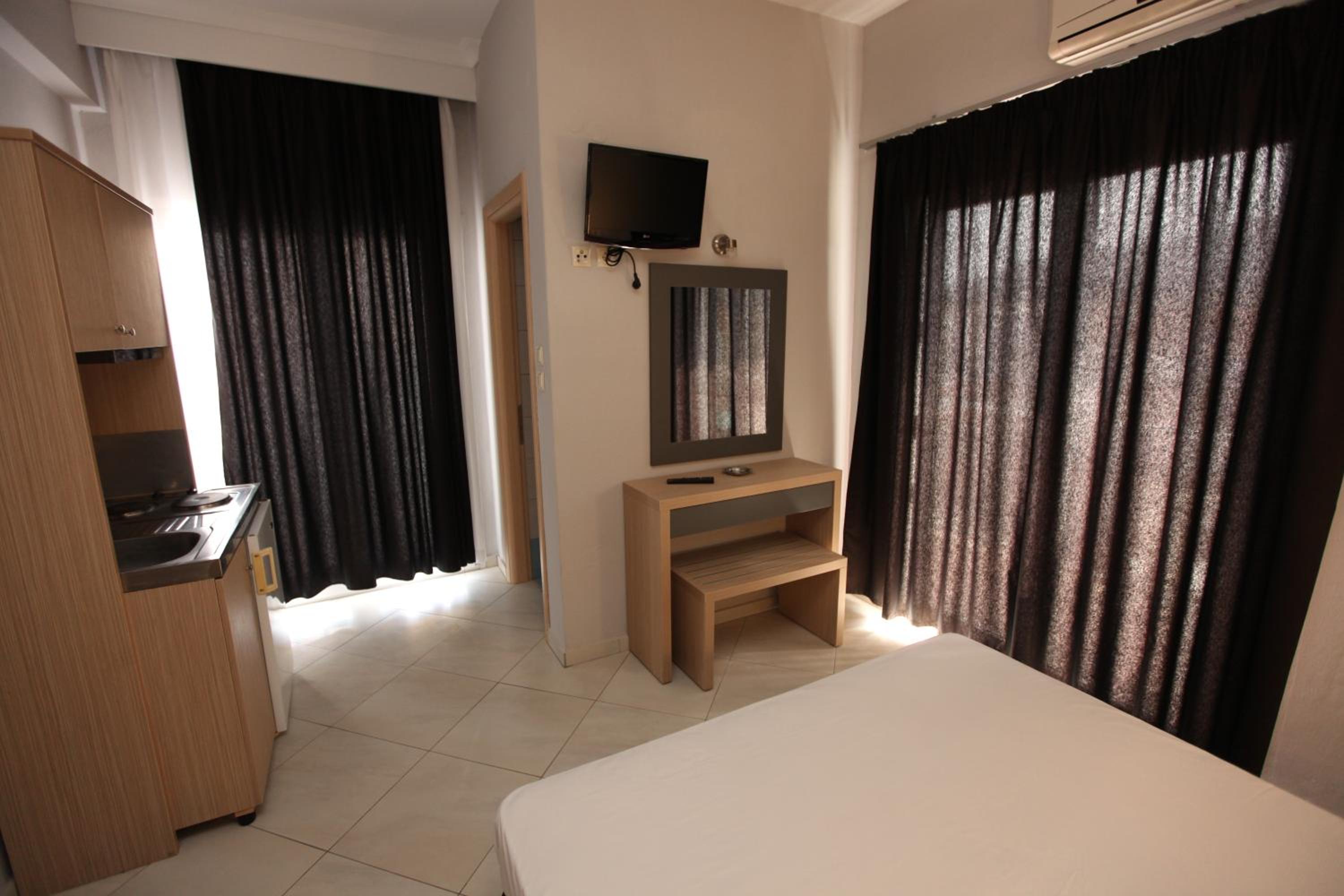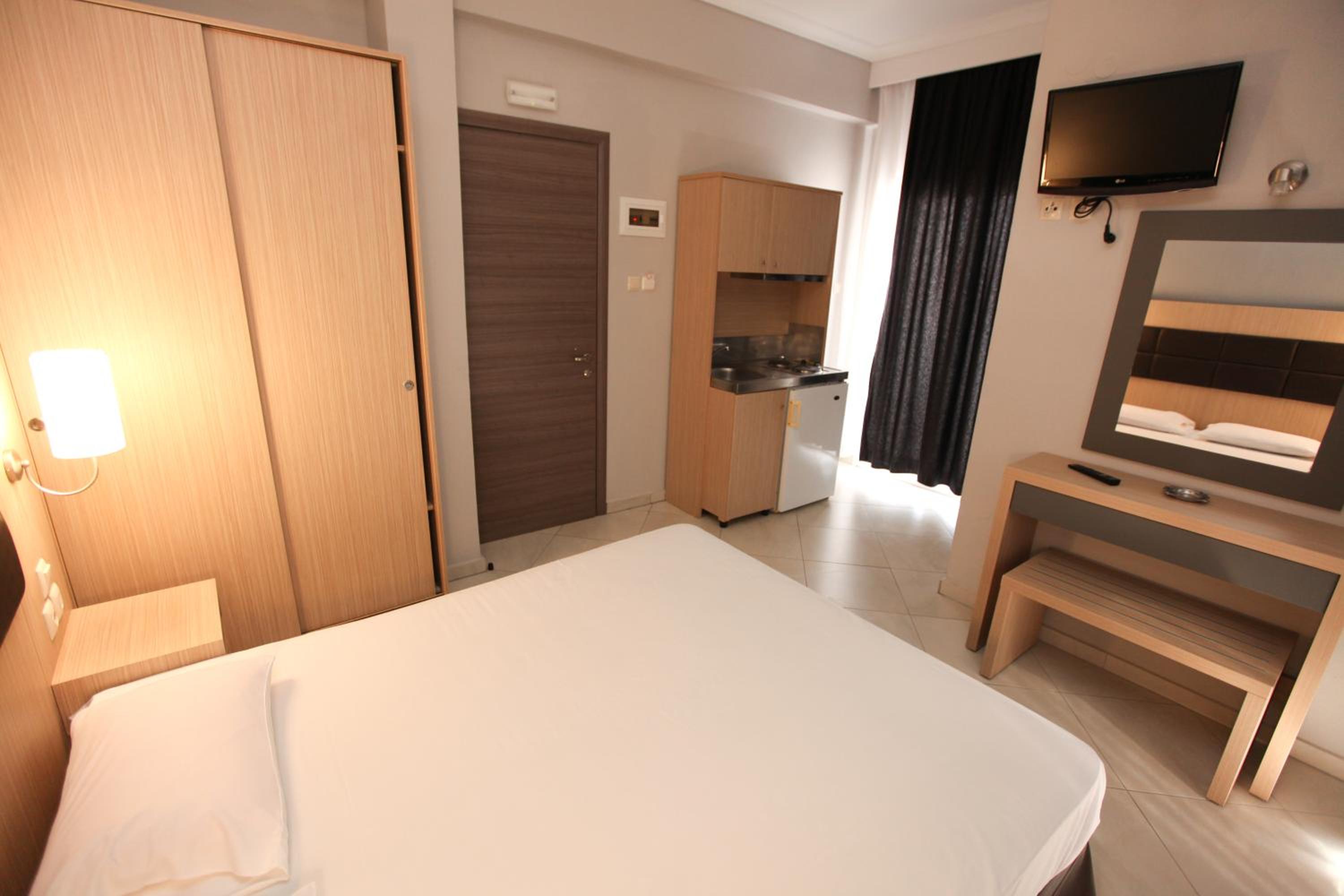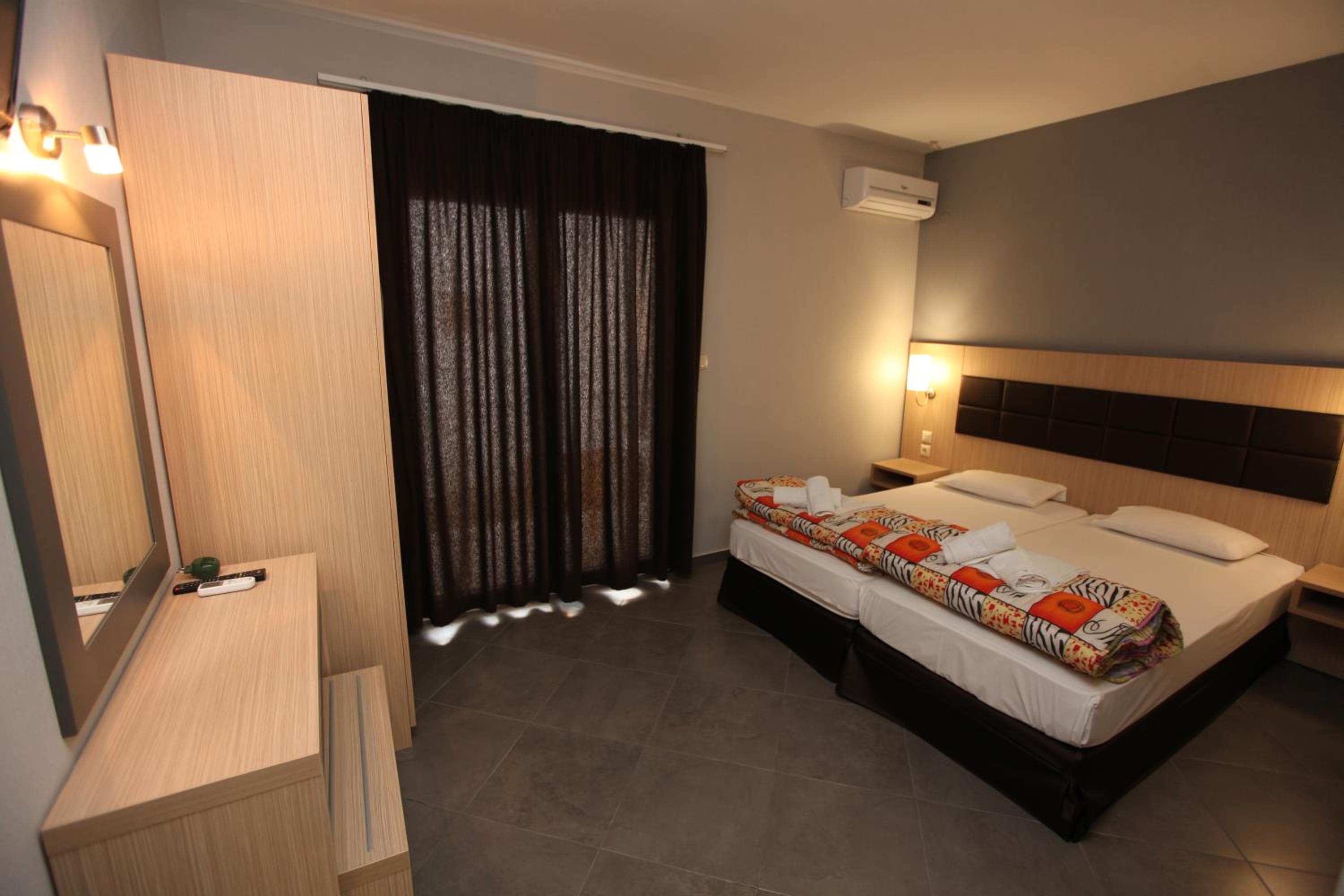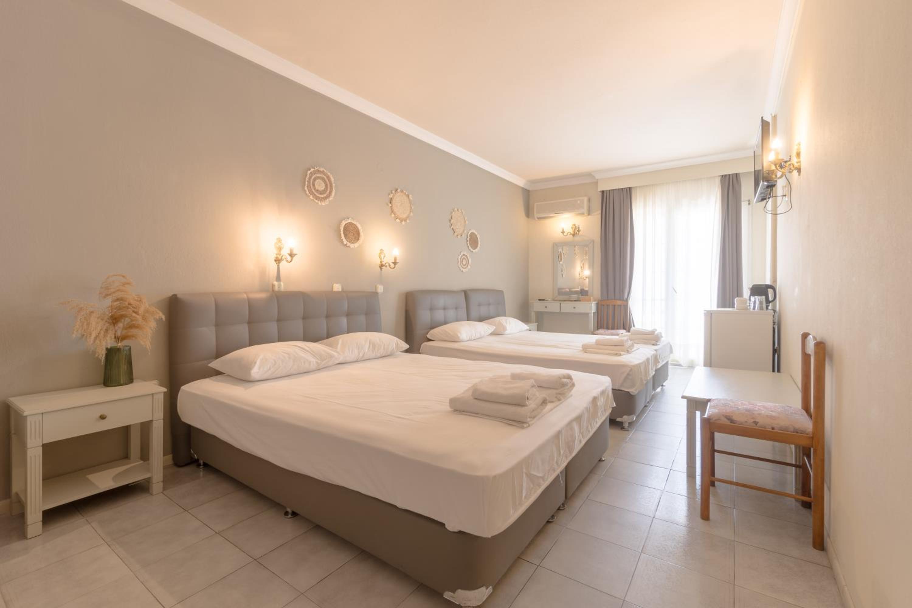 Mironi Hotel, nestled in the heart of Thassos, offers guests a serene escape just a stone's throw away from the bustling port. The air-conditioned rooms, each with a private balcony, provide a tranquil retreat with modern amenities such as a fridge and TV.