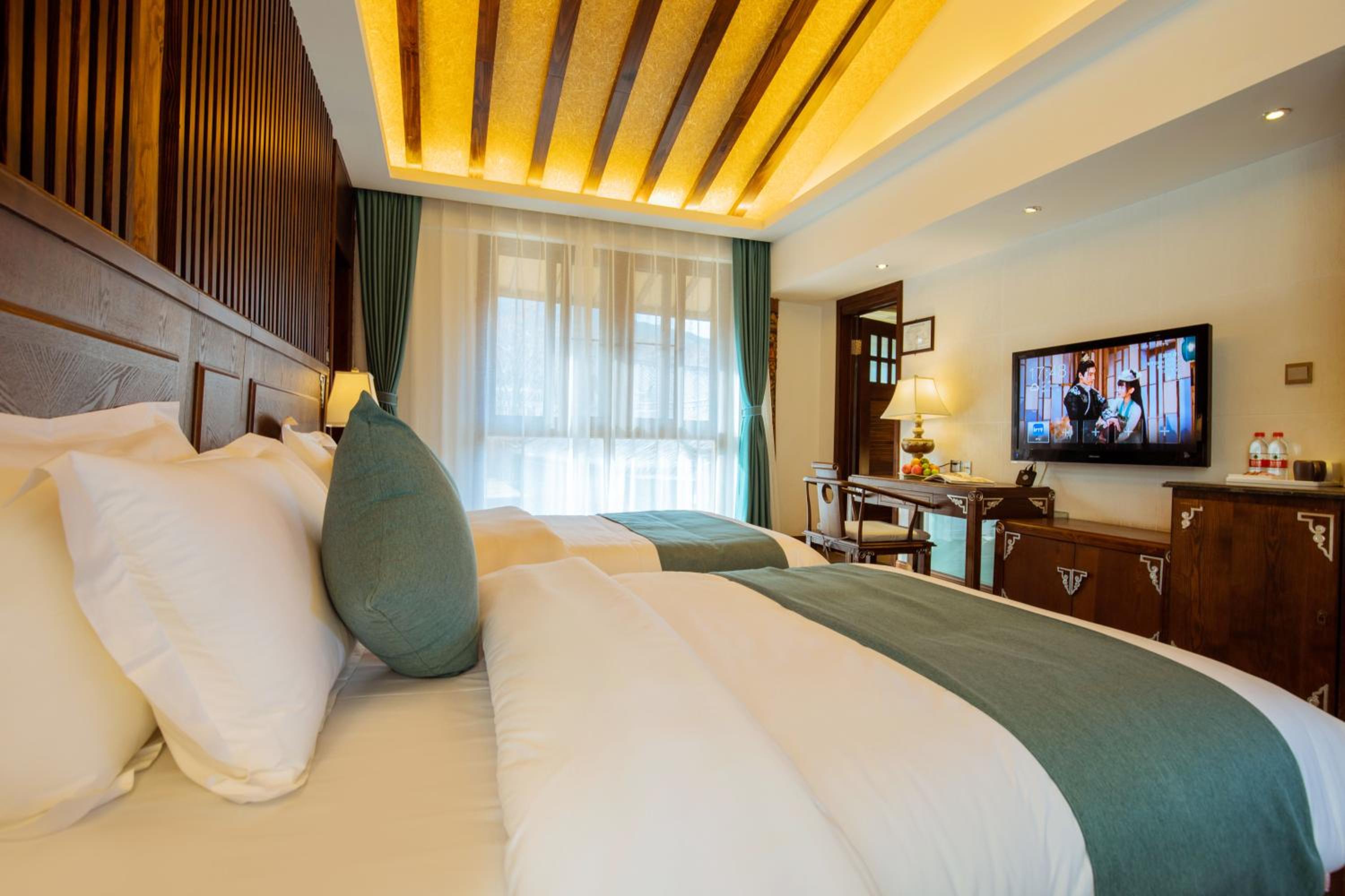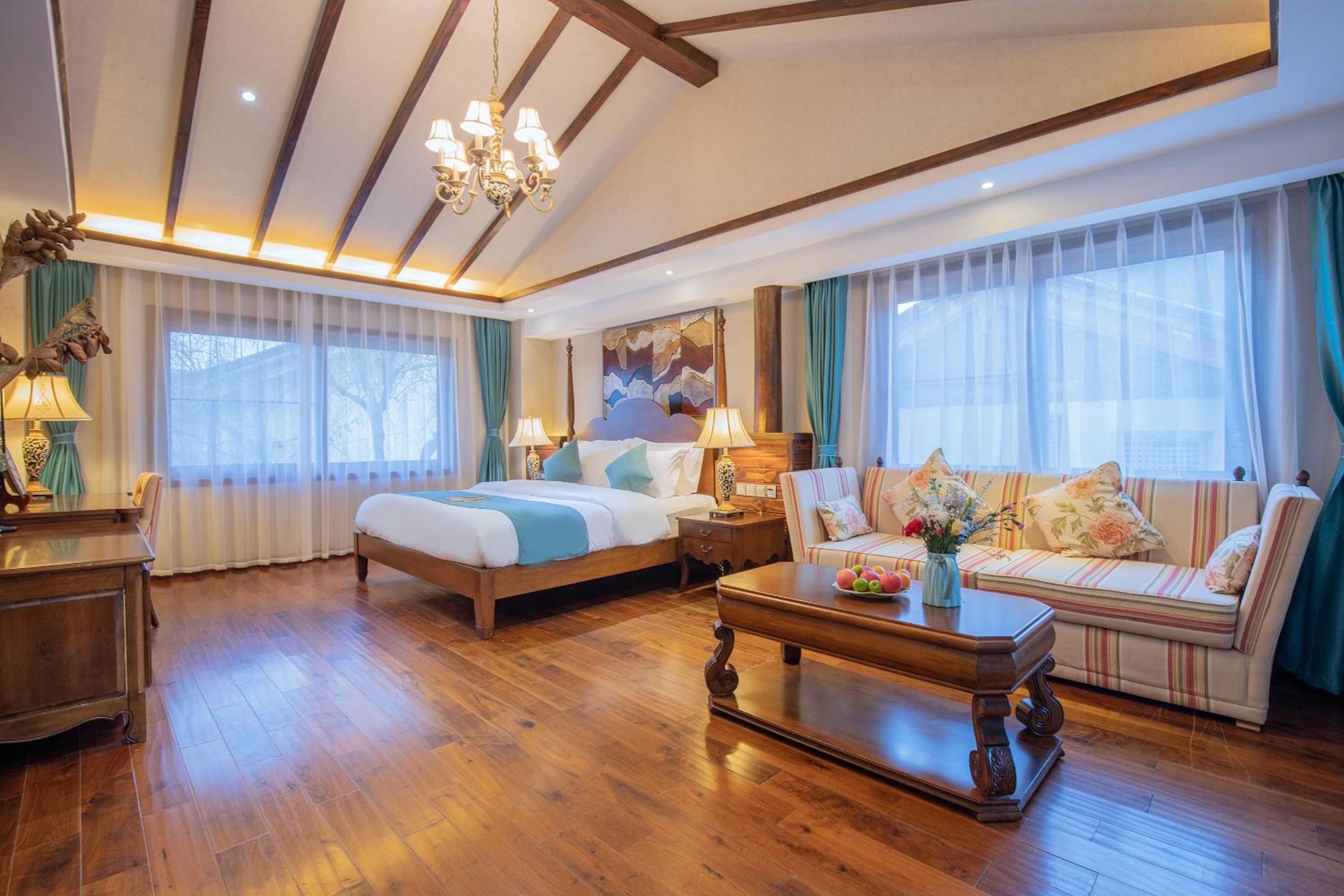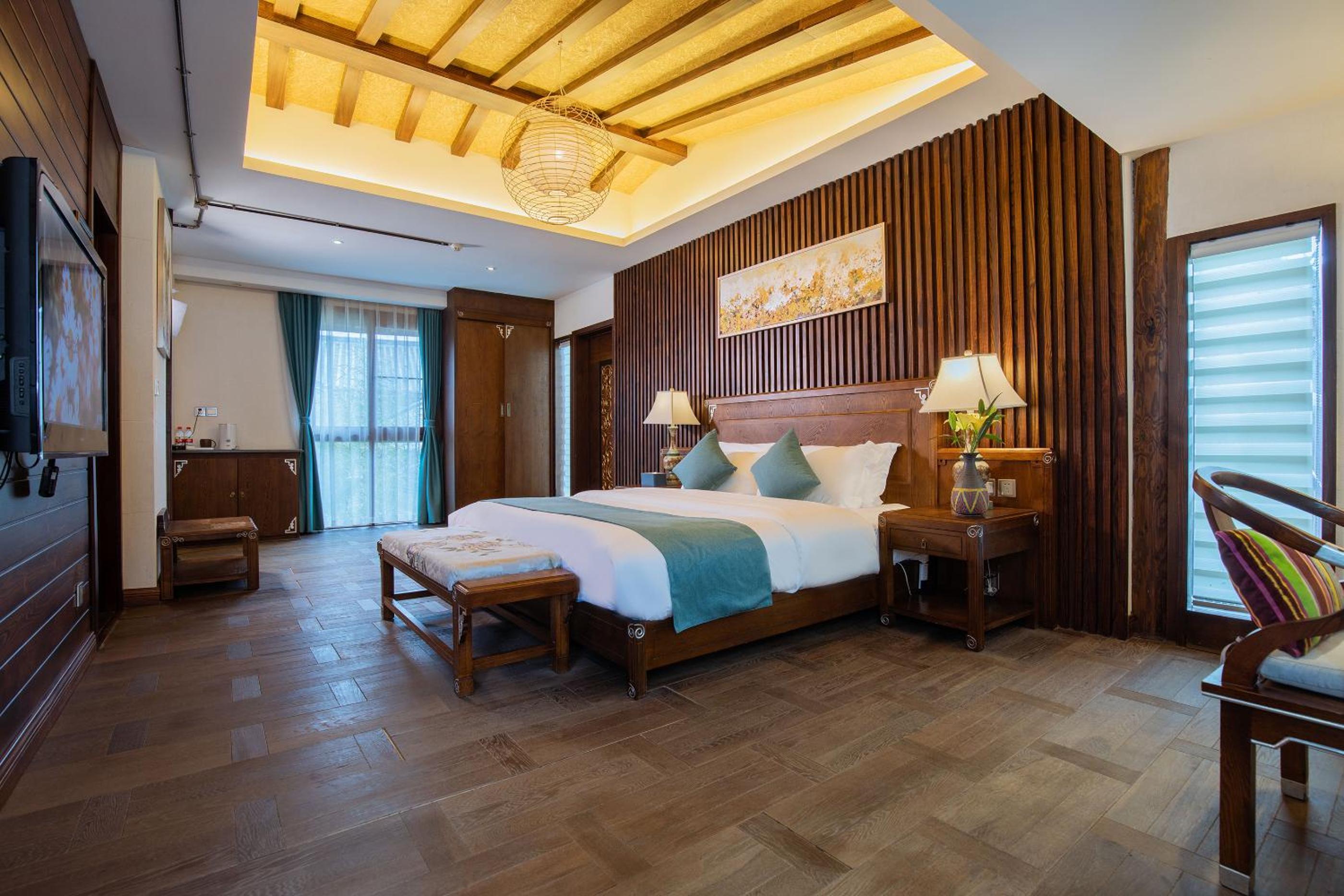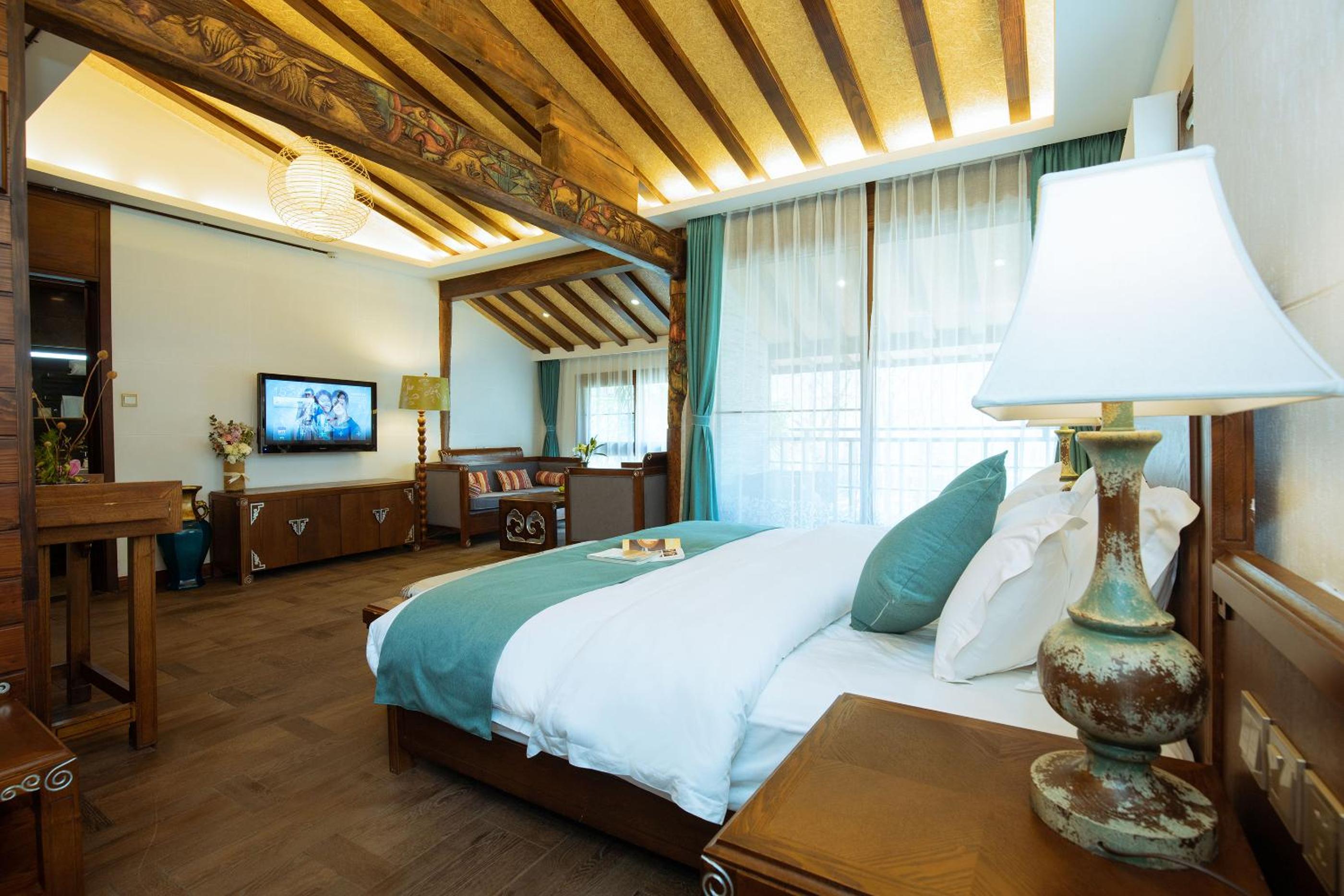 Experience tranquility at 丽江束河元年别院 Yuannian Lijiang, surrounded by lush gardens and offering rooms with stunning mountain views. Relax in the shared lounge or on the terrace while enjoying impeccable service from the entertainment staff and concierge.