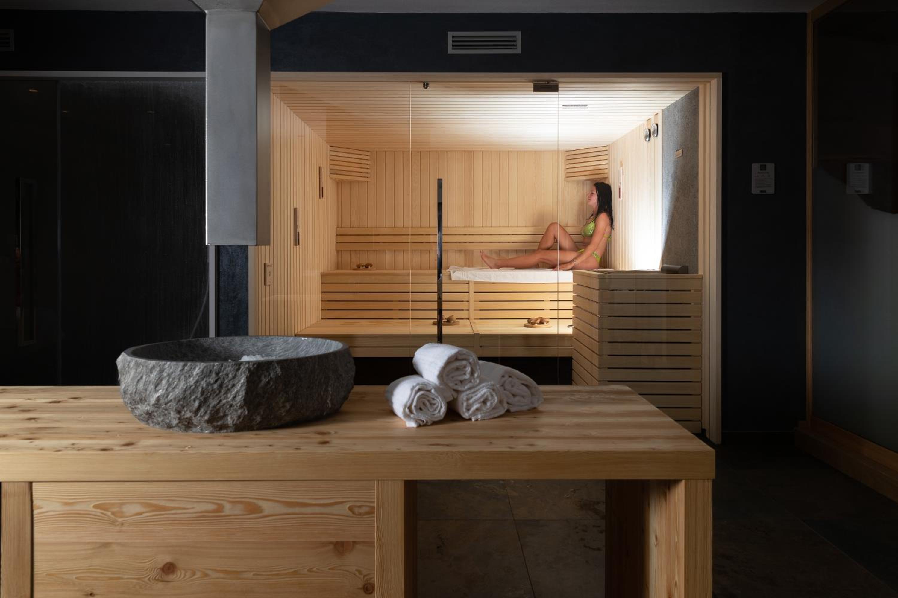 Indulge in relaxation at the spa and wellness center featuring a sauna, hot tub, and a bar. Unwind after a day of skiing or cycling in the tranquil setting of the hotel.