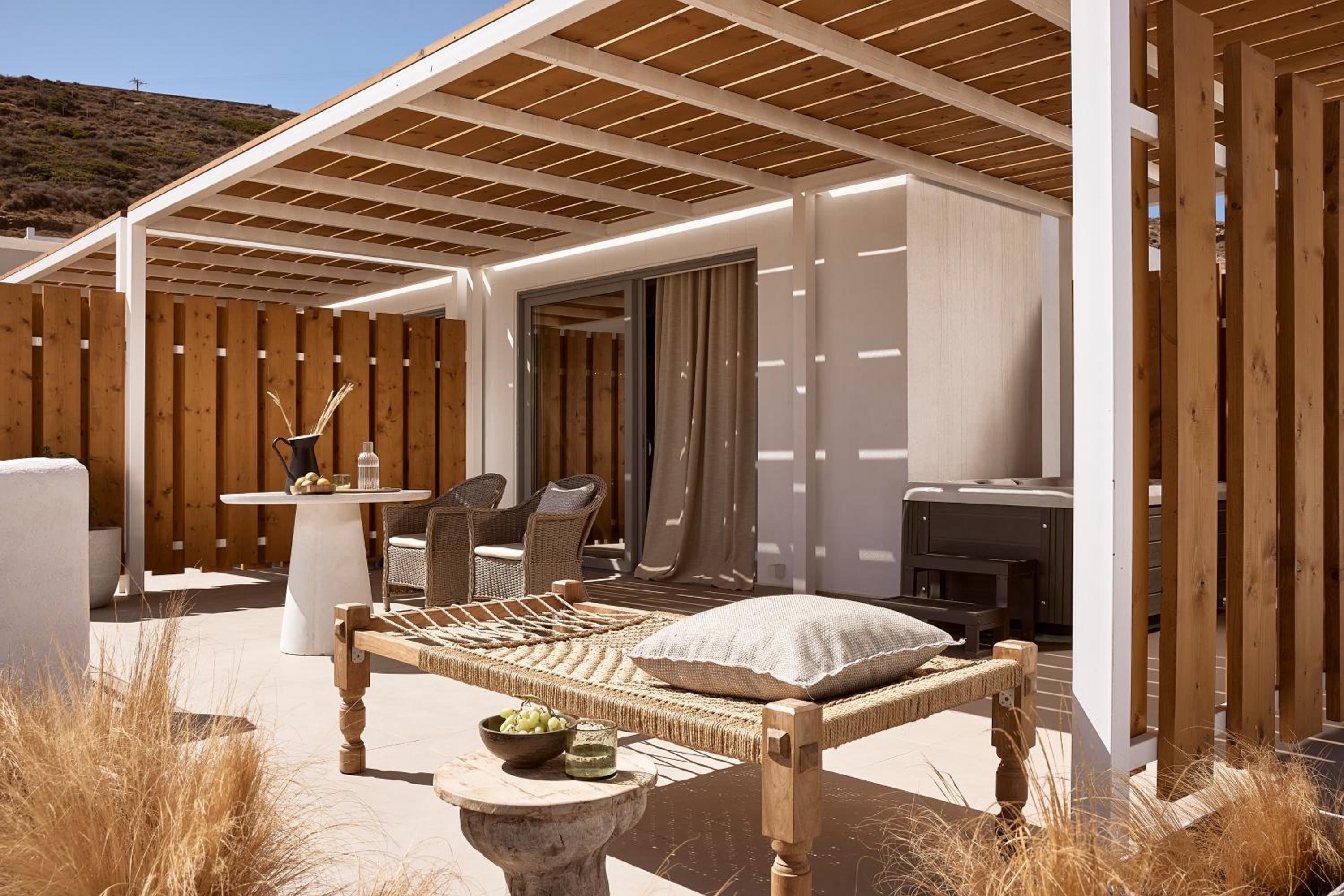 Experience breathtaking sea or mountain views from your own balcony at Kythnos Bay Hotel. Relax and soak up the sun on the charming sun terrace.