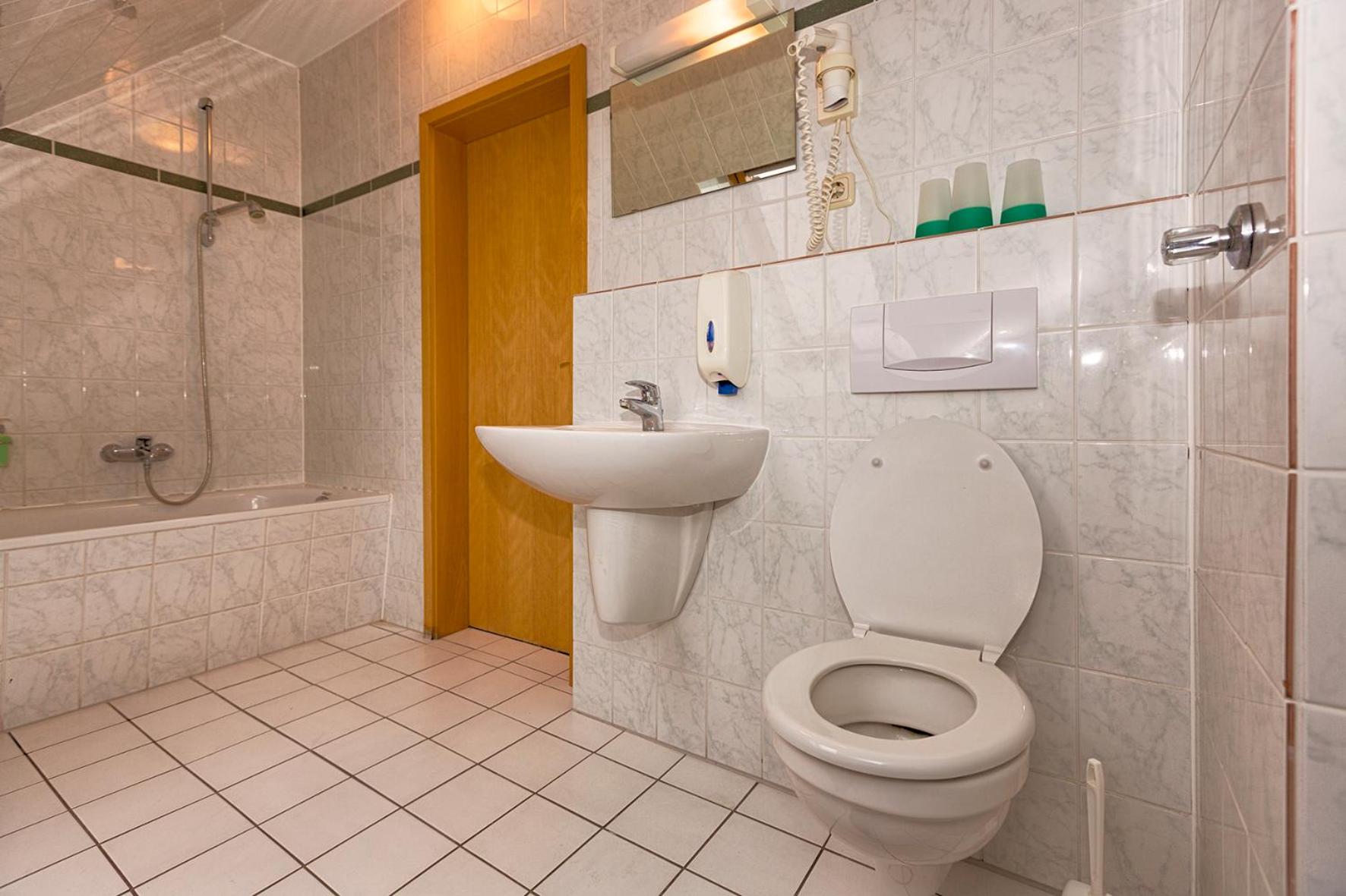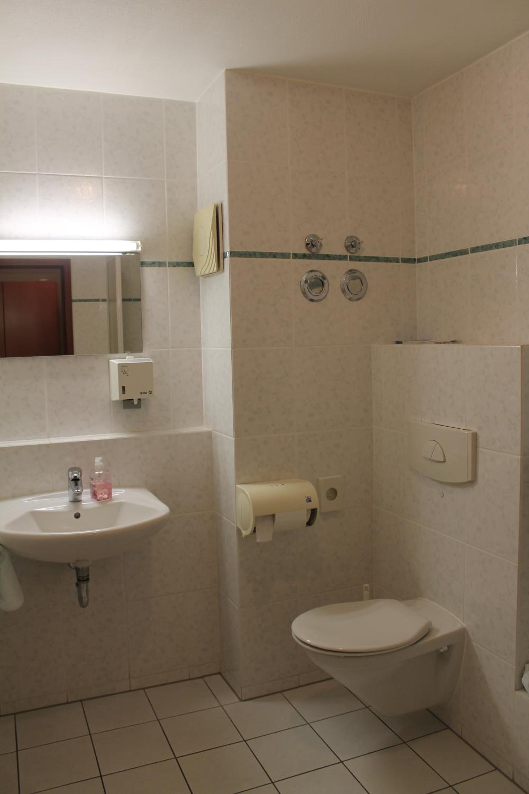 No breakfast (clearly specified on Booking.com). No soap or shampoo (not clearly stated on Booking.com). Supermaket REWE around the corner, so not such a big issue.