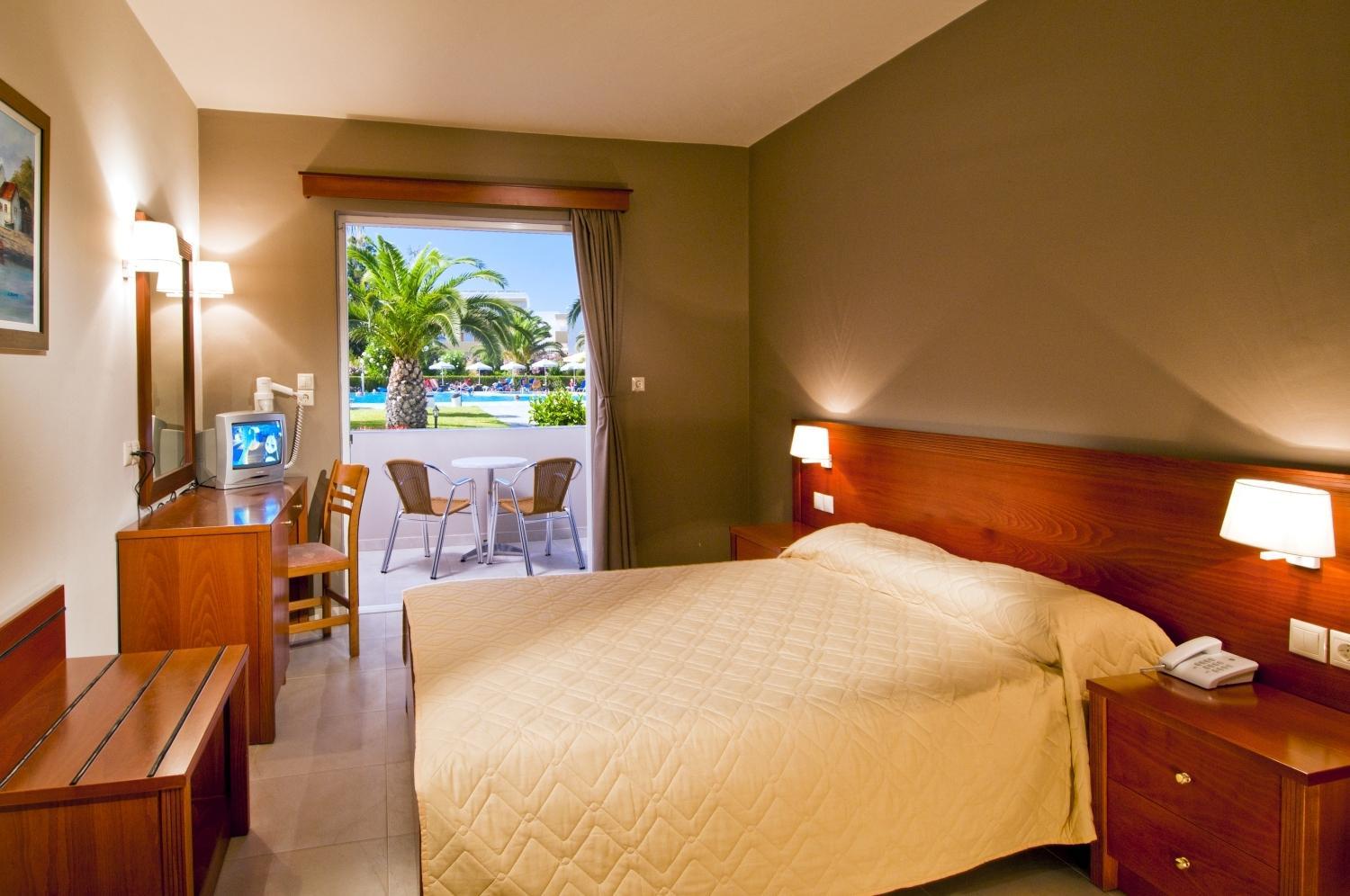 Luxurious Accommodation: Enjoy spacious rooms at Hotel Esperia with private balconies overlooking the pool or garden, complete with safety features and air conditioning.