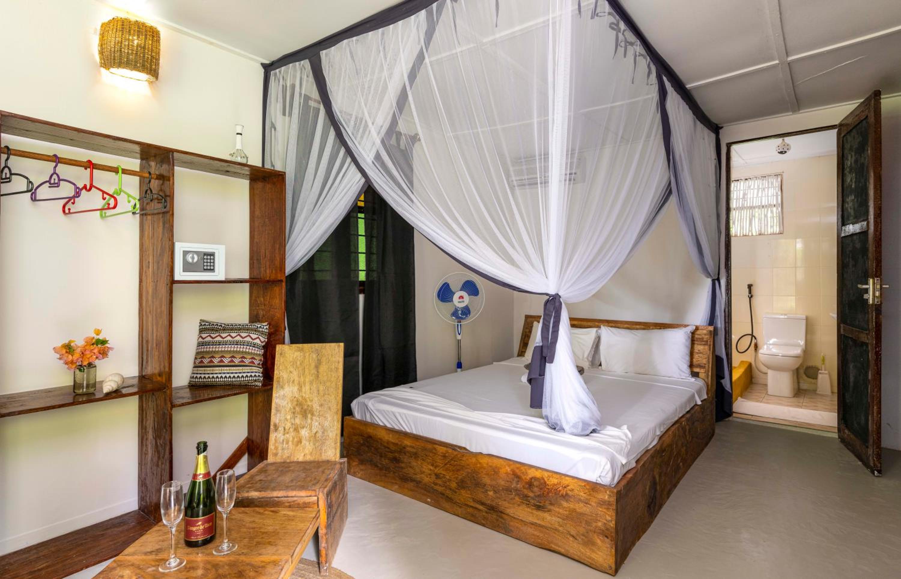 Relax in simple yet charming bungalows equipped with hot and cold water, fans, and comfortable mosquito-netted beds. Enjoy a peaceful night's sleep after a day of exploration.