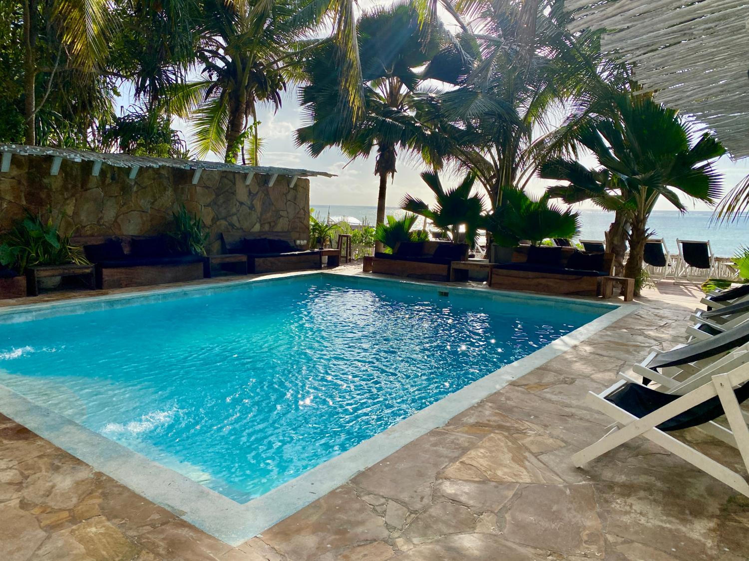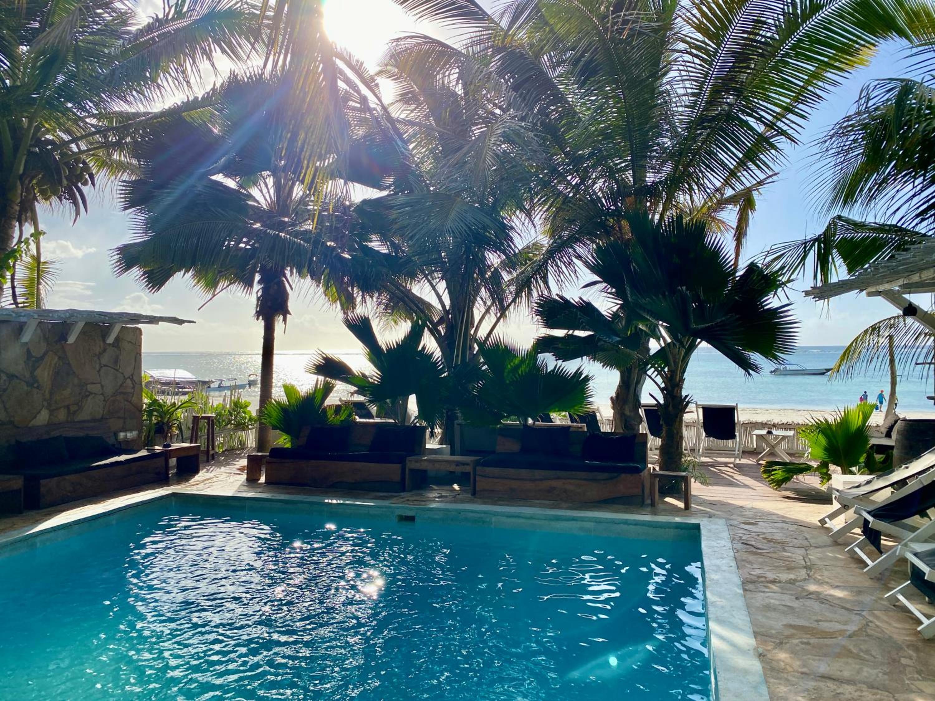 Le personnel était très accueillant, notamment Amina à la réception. Nous avons apprécié l’emplacement, pieds dans l’eau, la piscine et les nombreux espaces pour s’assoir dans le jardin. La chambre était propre et donnait sur les palmiers du jardin. Nous recommandons !