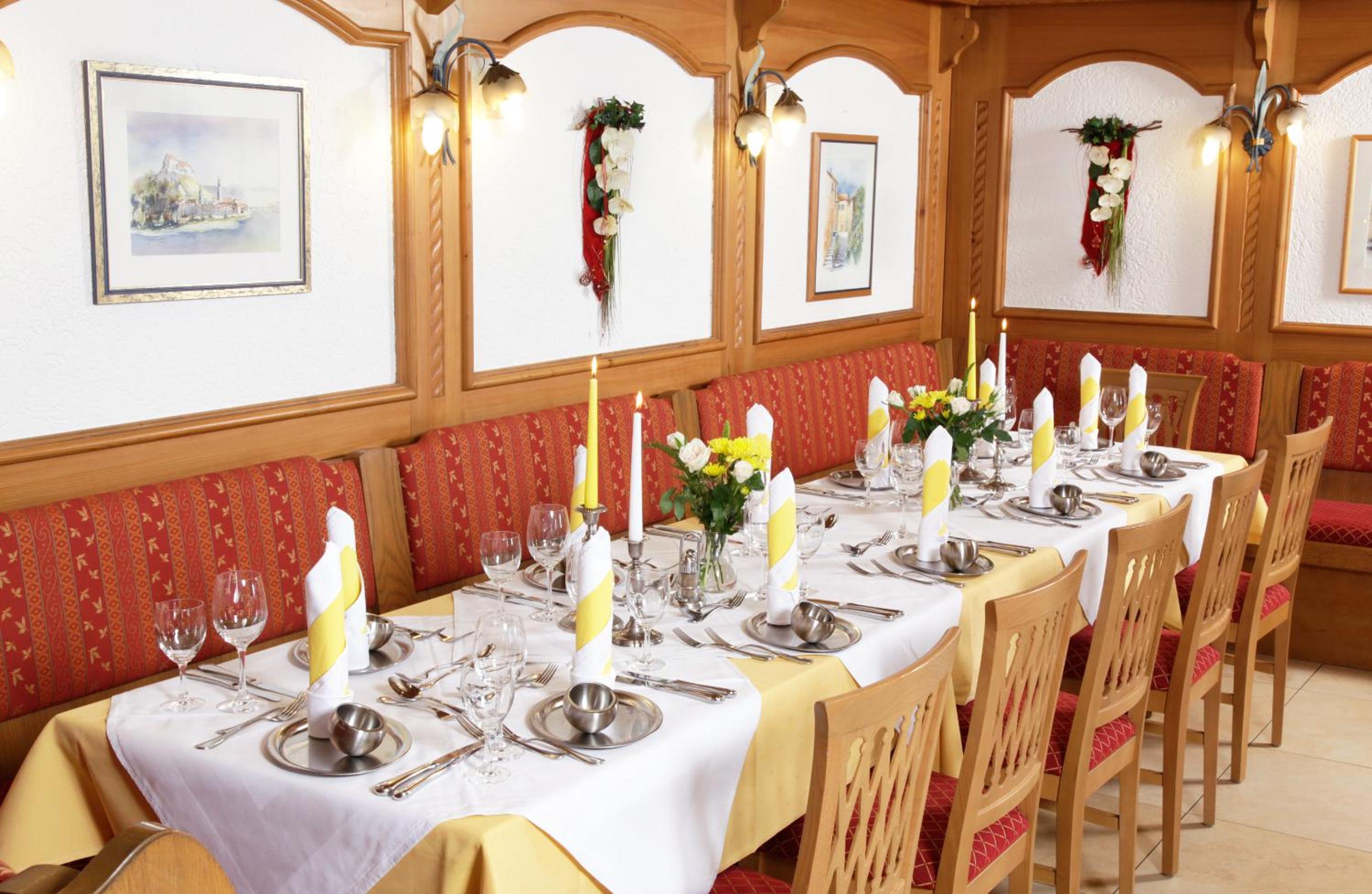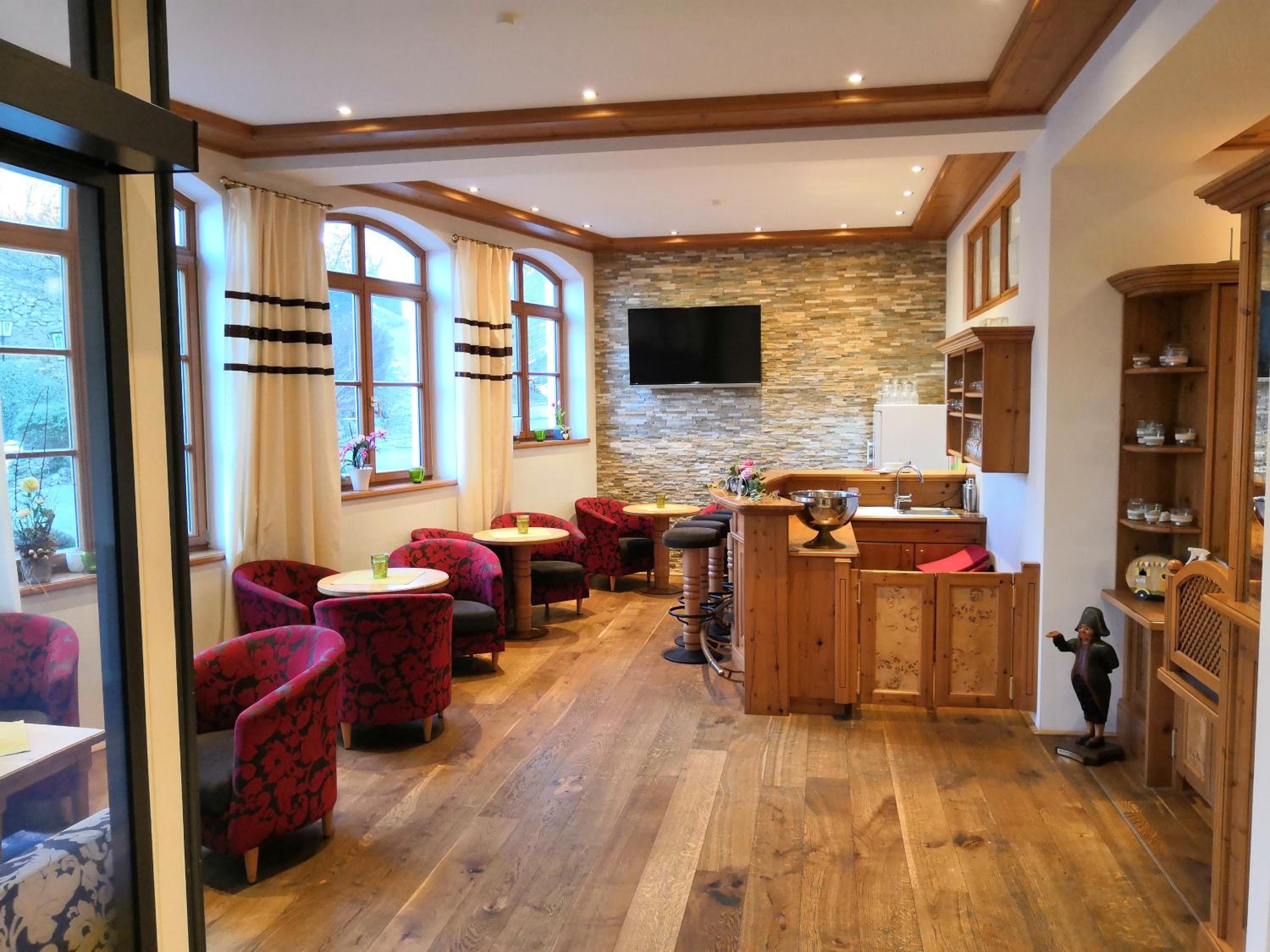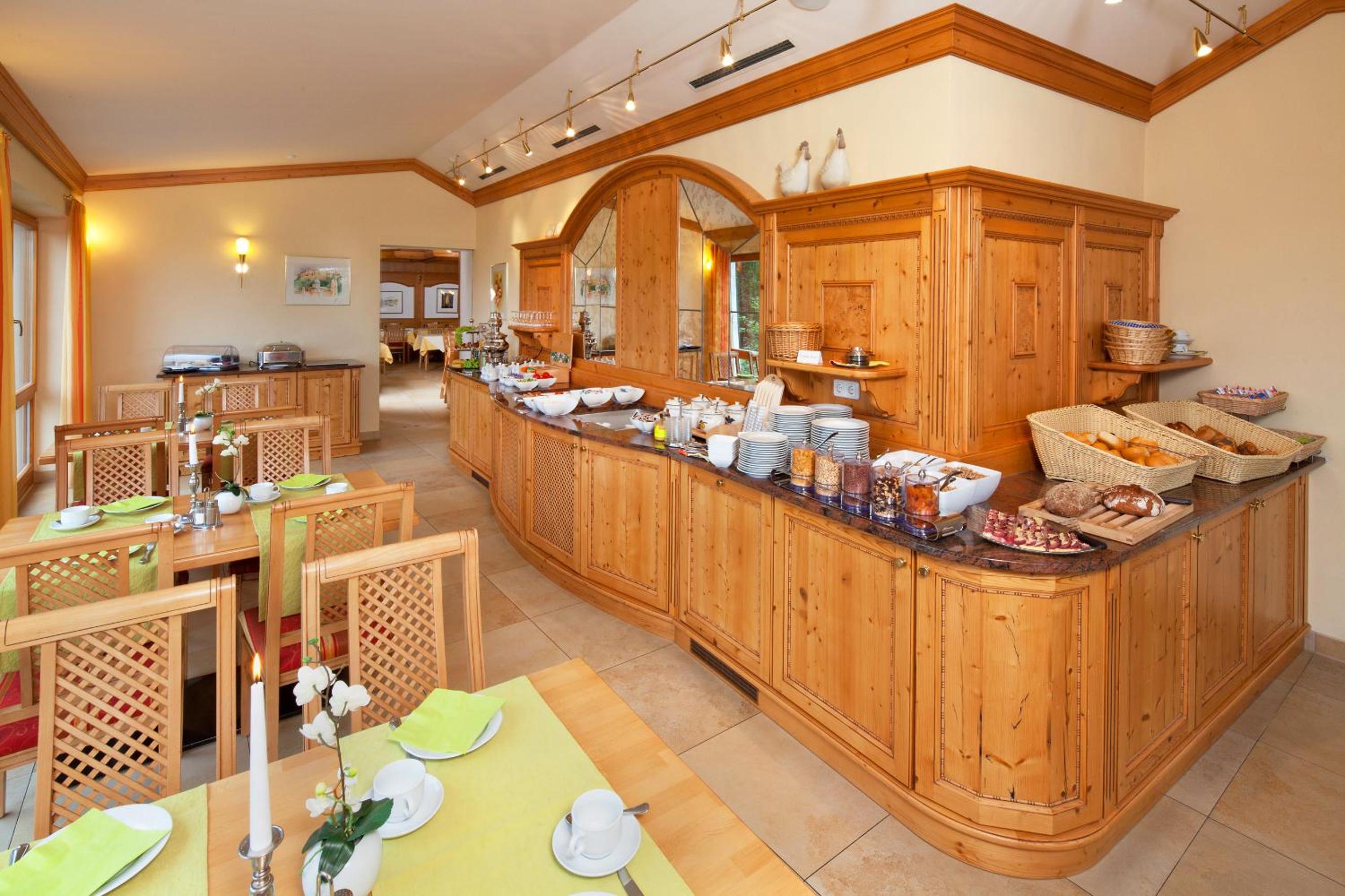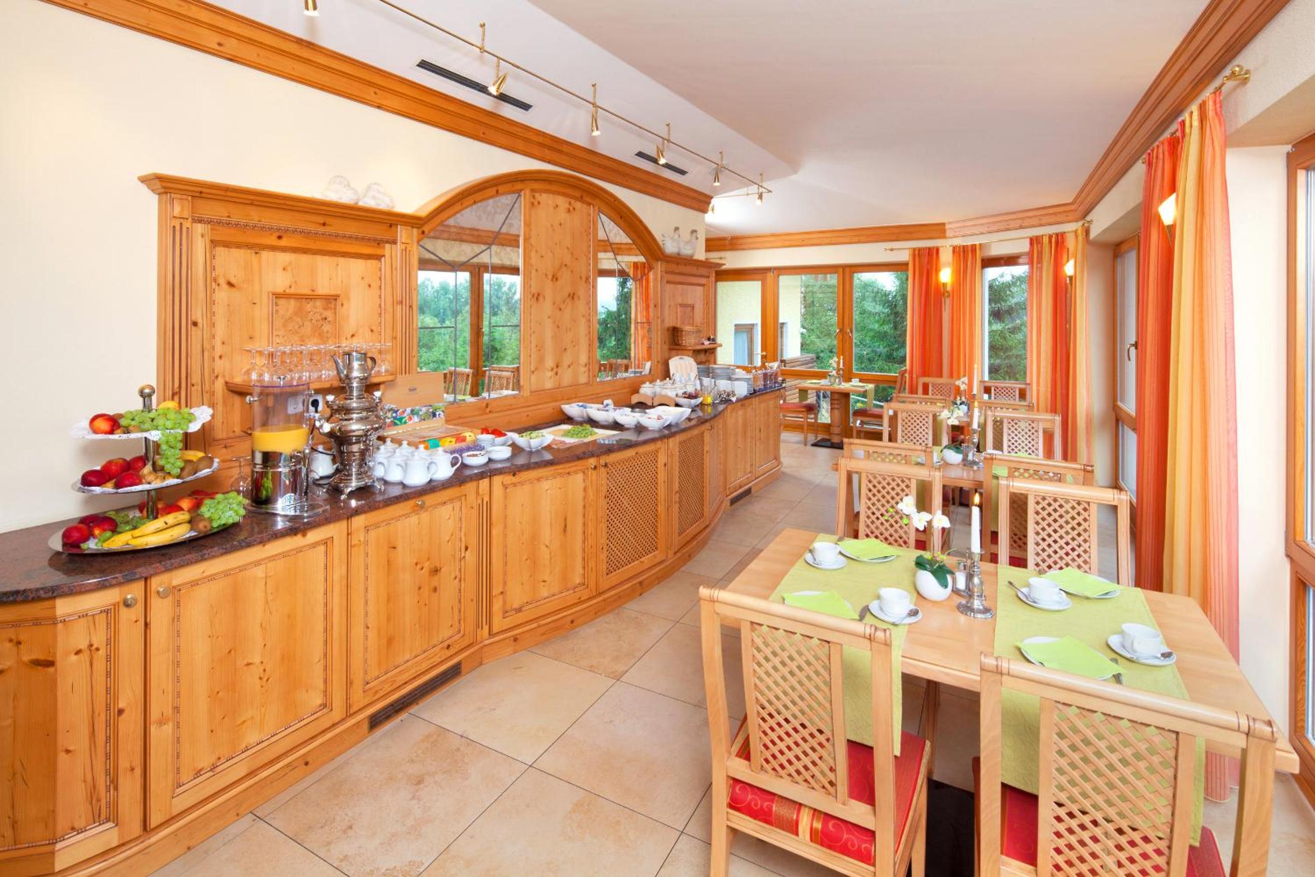 Indulge in a rich breakfast buffet and savor Bavarian and seasonal dishes at Gasthof Schwarz's restaurant. Unwind in the beer garden with a large sun terrace and wood oven.