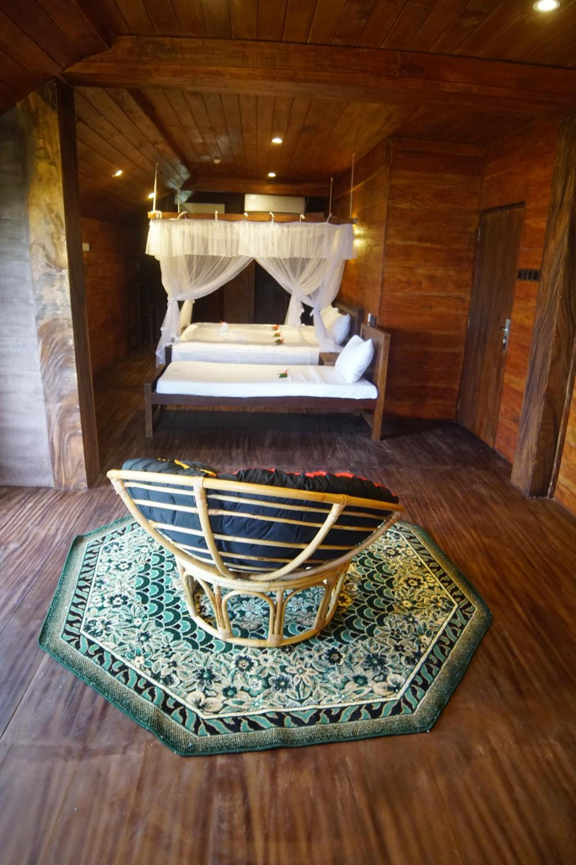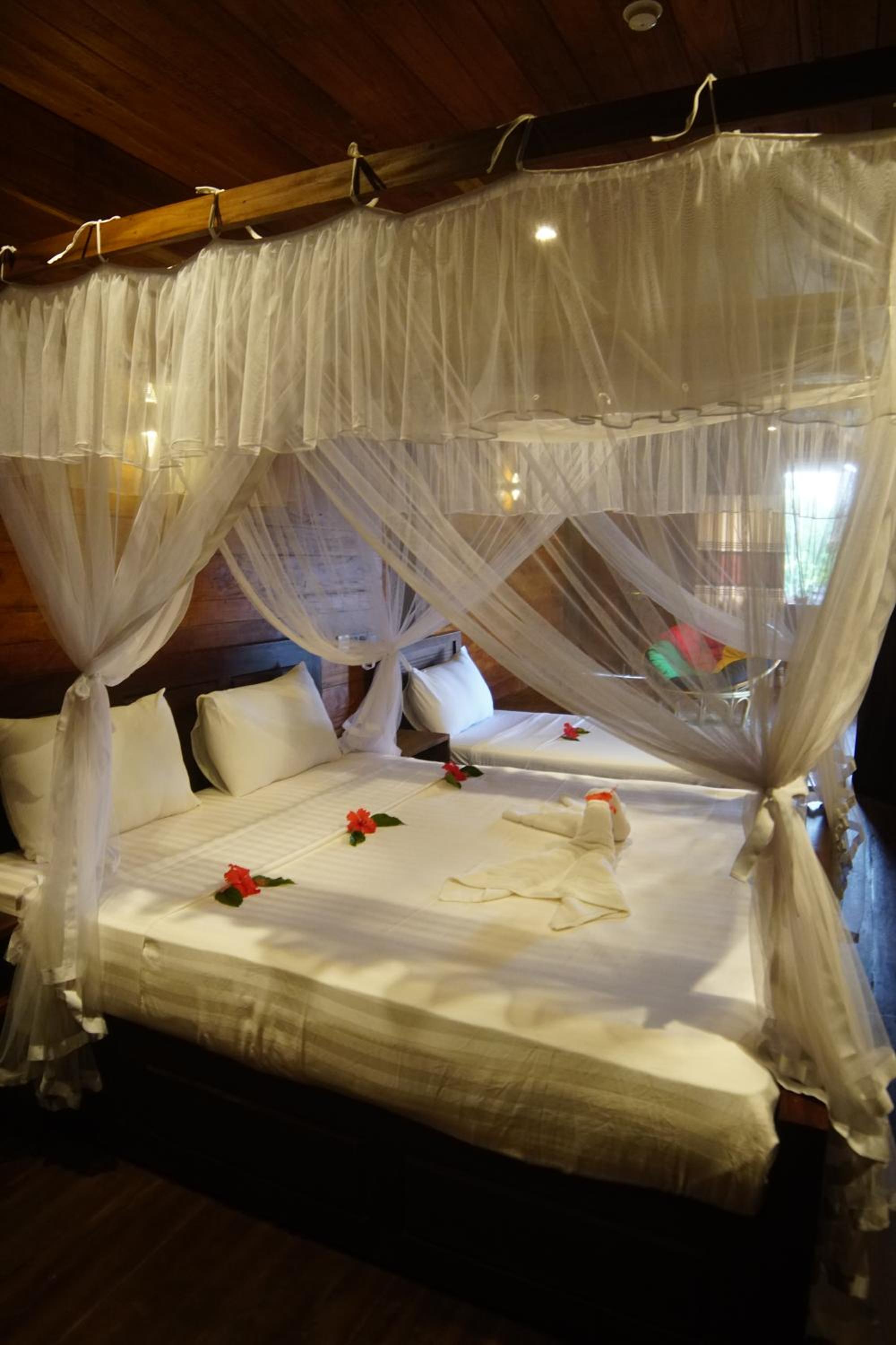 Lots of rubbish around the complex, particularly between the rooms and the restaurant. The mosquito net was very dirty. There was a right of way through the complex to the beach where a stream of people walked all day