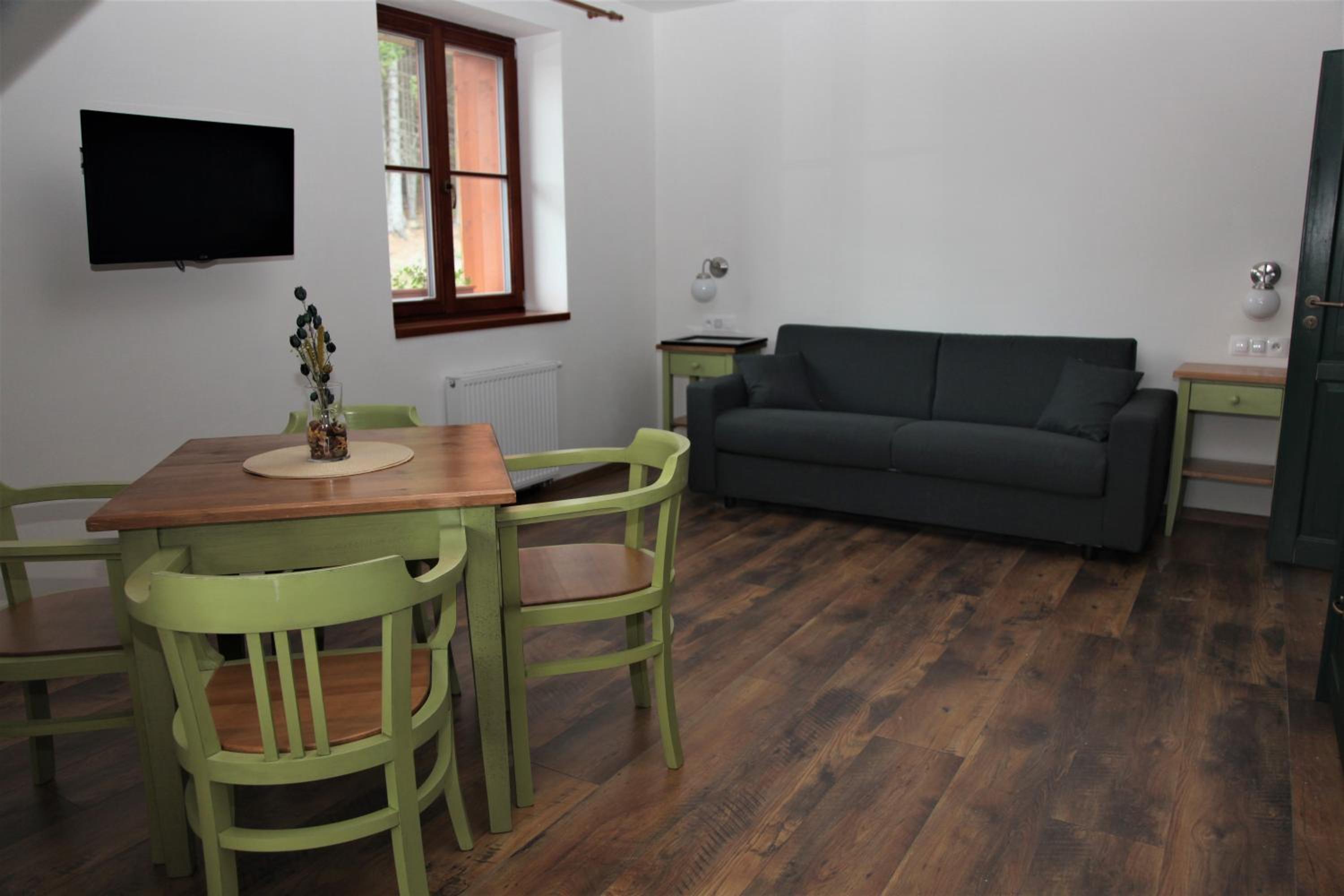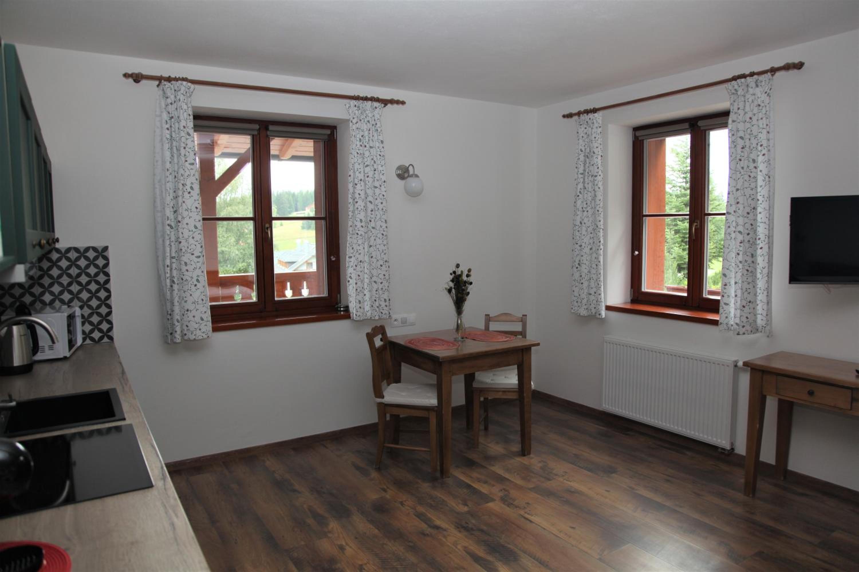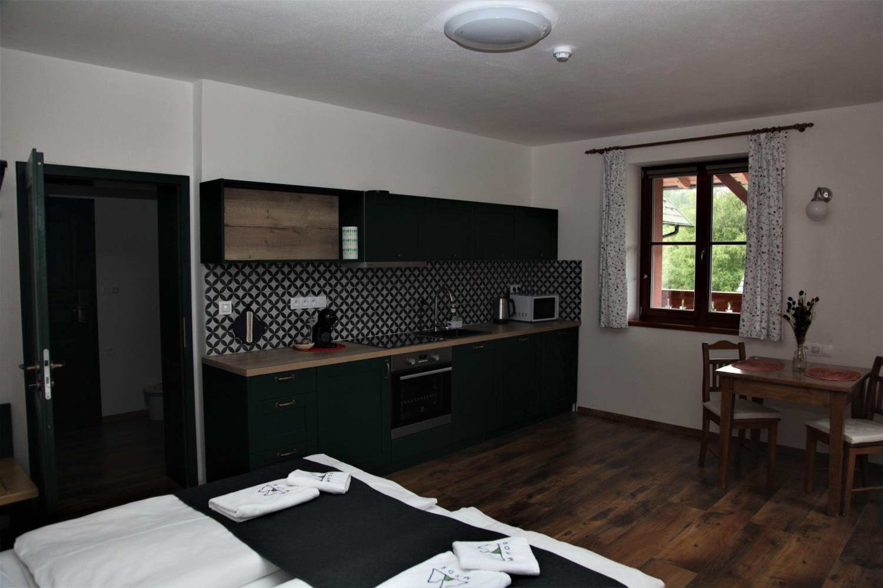 Experience a lavish stay at Aparthotel Mádr in Modrava. Each room is equipped with a flat-screen TV and a private bathroom featuring premium amenities like bath robes and slippers. Enjoy the comfort of free toiletries and a hair dryer during your stay.