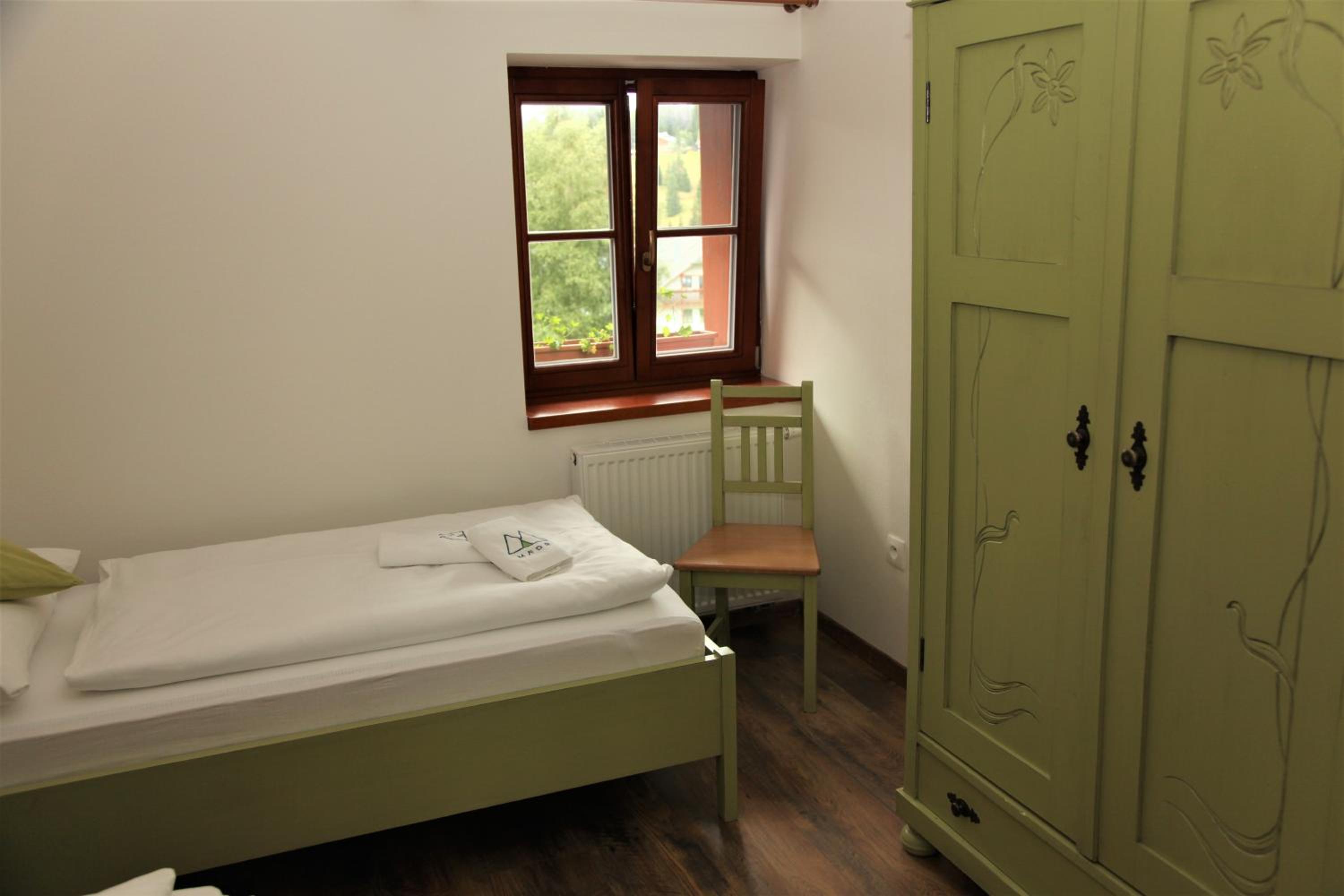 Pokoj číslo 3 byl velký, velmi pěkně zařízený, nerušil nás hluk z jiných pokojů. V koupelně bylo dost místa kam odložit kosmetiku, dostatek háčků na ručníky.
