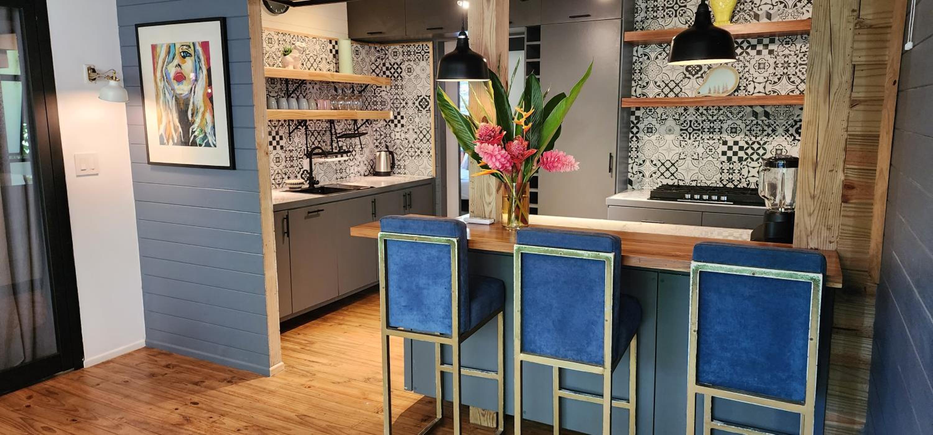 Liked having a 2 storey room, with indoor / outdoor kitchen and lounge, loved the tropical vibe. Close to some restaurants and cafes. Next to pickleball courts but didn't bother me at all