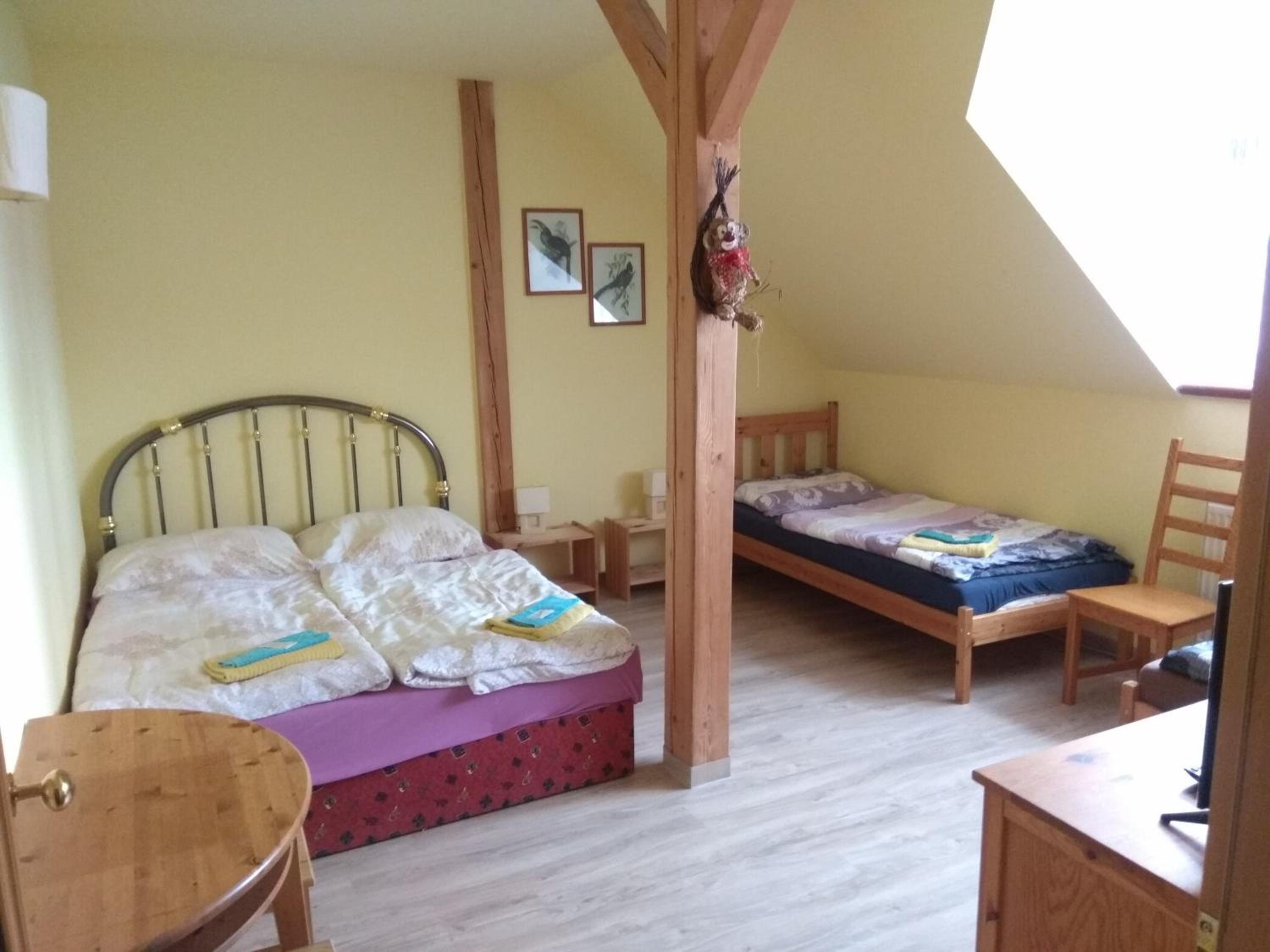 Pohodlné postele, pekná, čistá izba. Milá, ústretová pani domáca. Krásne, pokojné prostredie.