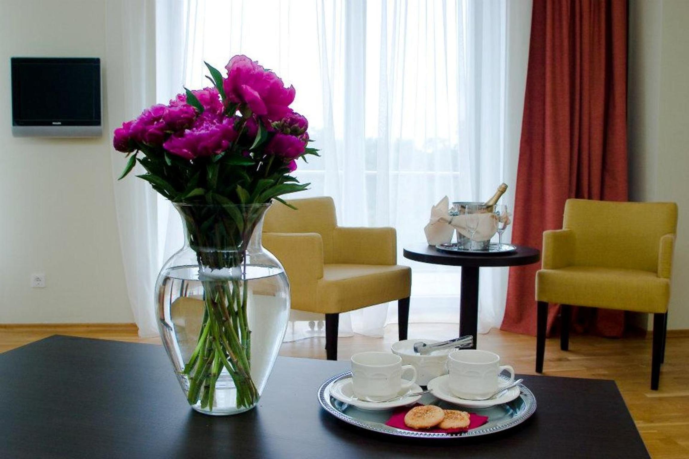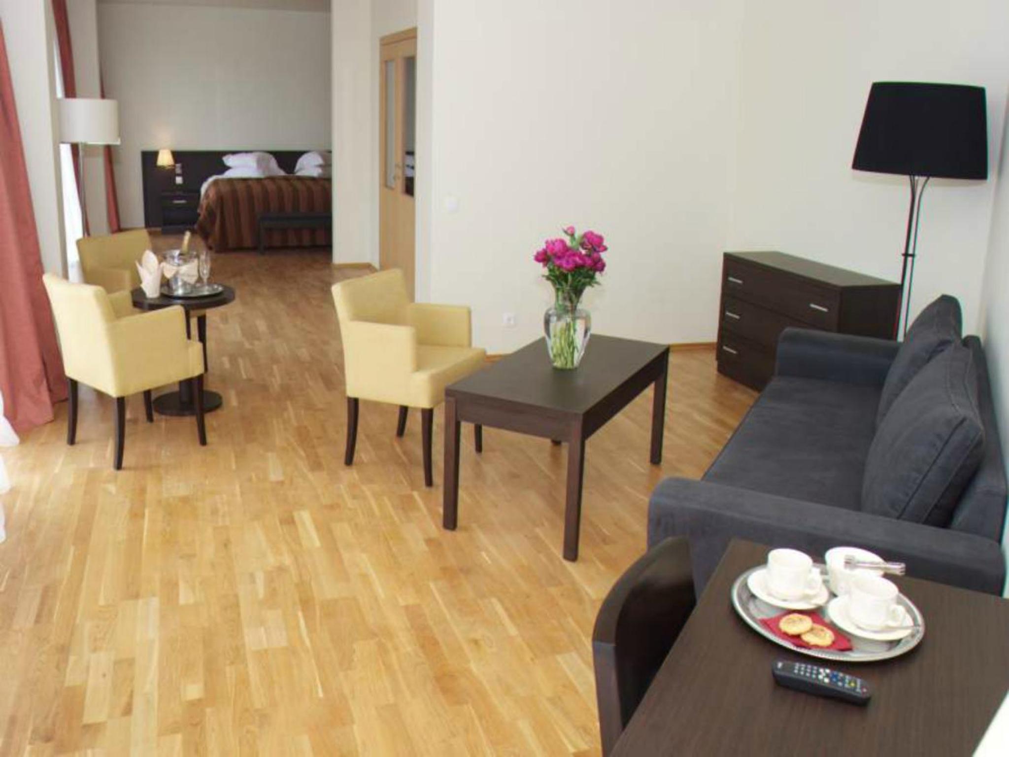 Experience modern comfort at the 4-star Baltic Inn in Palanga. Each room features a balcony, satellite TV, and a refrigerator. Upgrade to an apartment for added amenities like individual safes and an electric kettle.