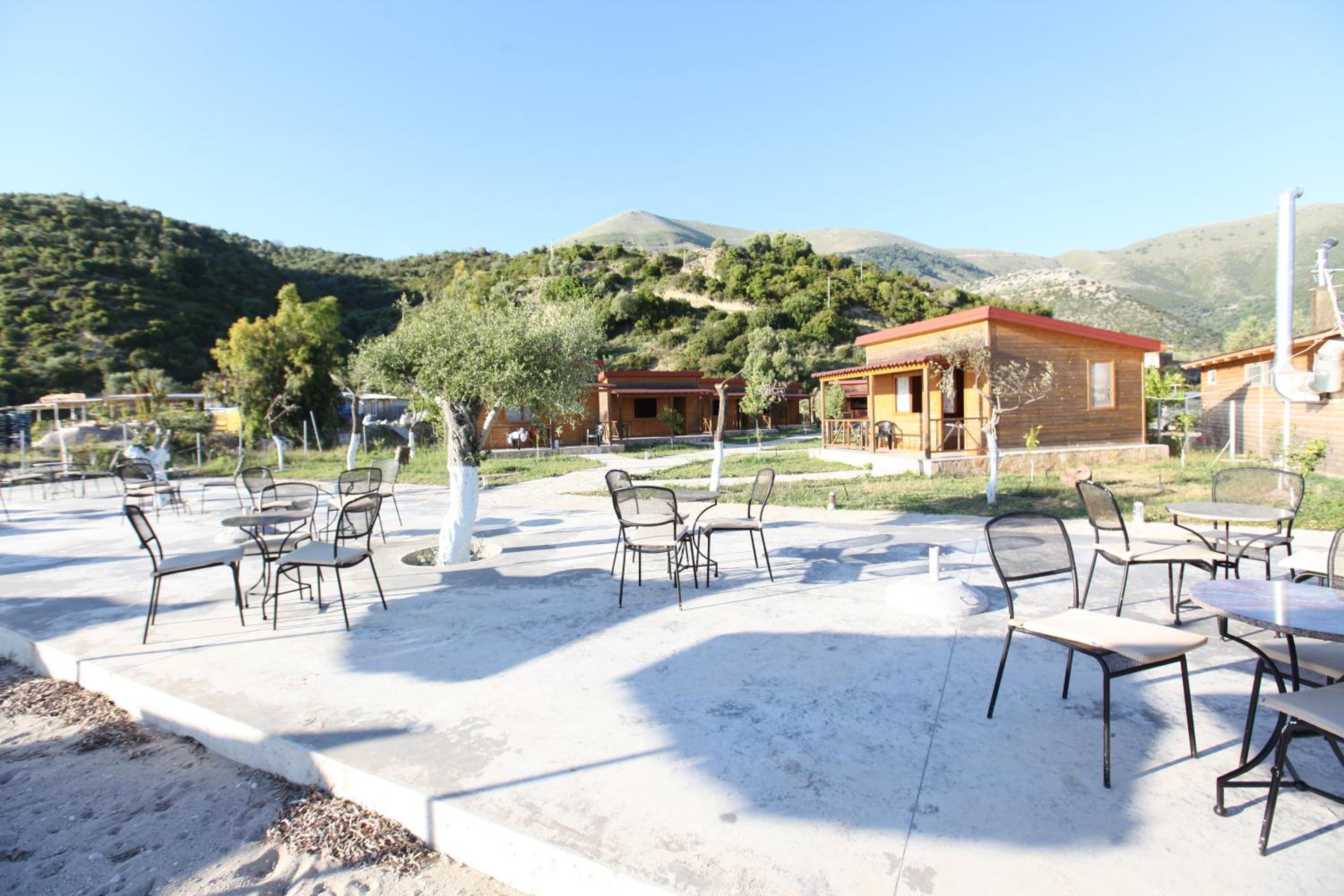 Nice bungalows in lush gardens with trimmed lawns and olive, lemon, lime, pear and other trees, few meters from the sea. Stunning location in a small bay, perhaps the only one left in the Albanian south cost reachable by car and still with no big hotels, clubs with loud music, crowds, water scooters etc. A families’ paradise. Helpful staff.