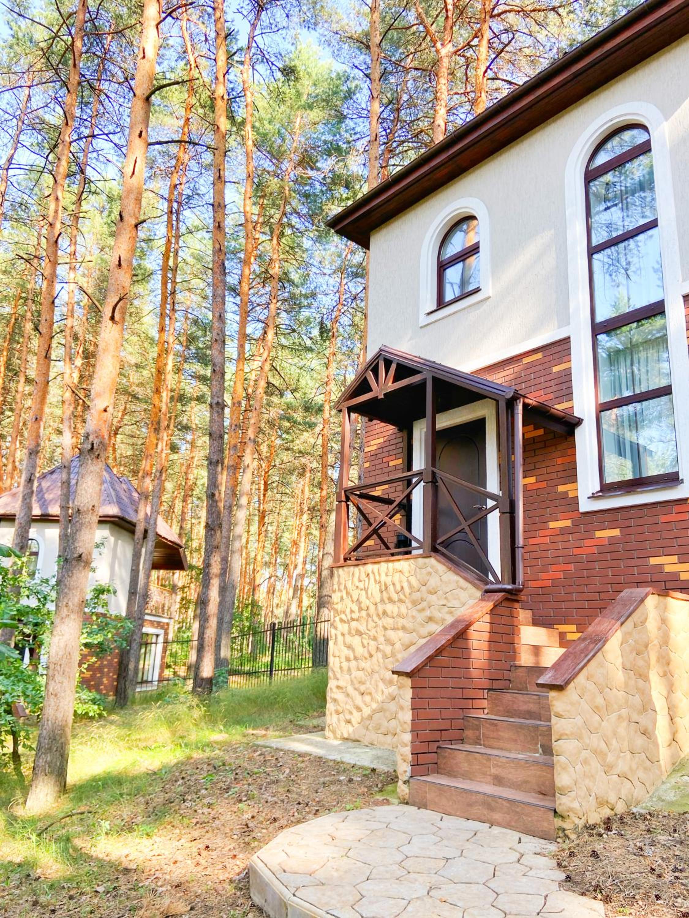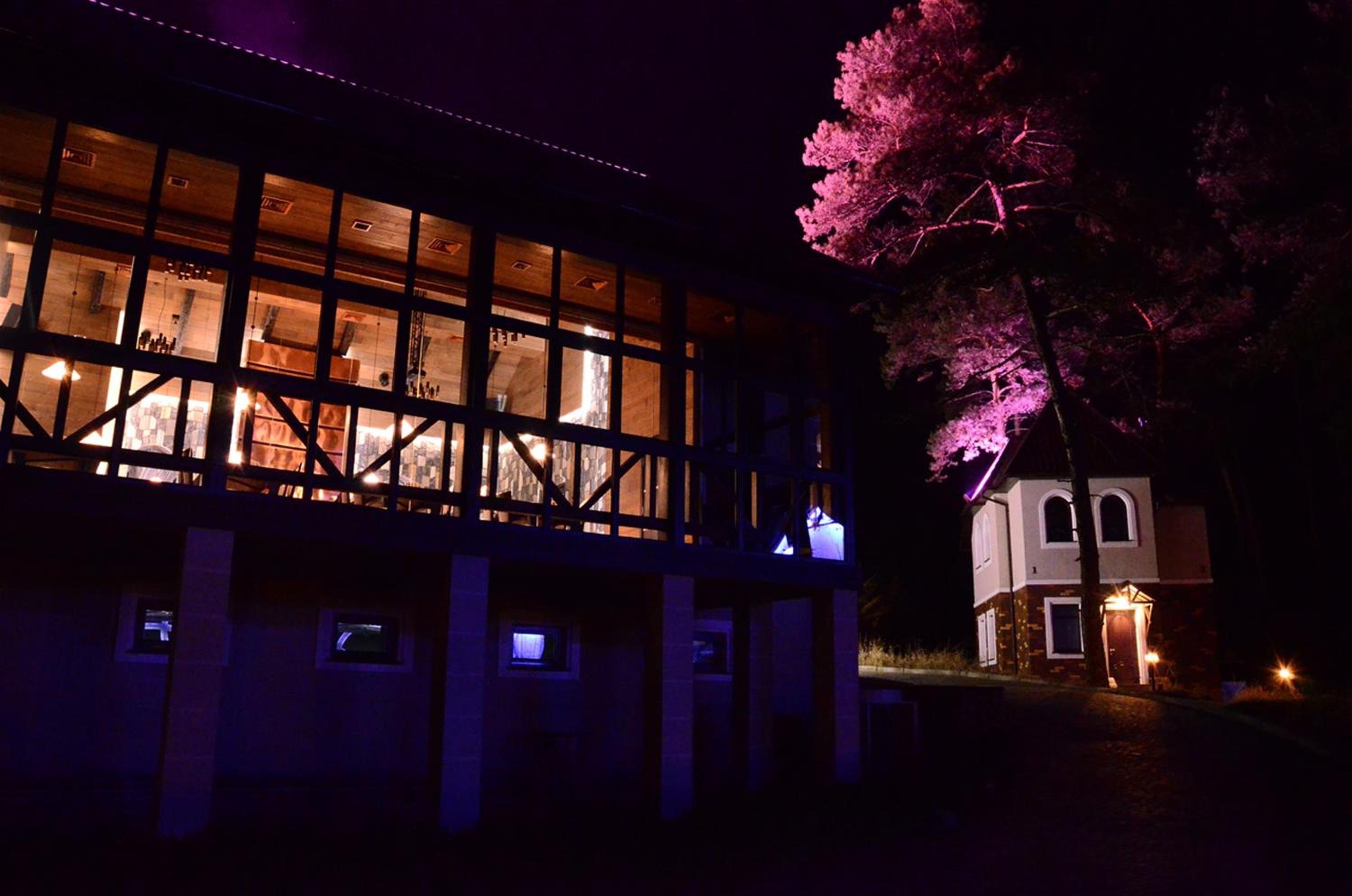 Замечательное расположение в сосновом лесу, очень красивая территория, вечером в свете огней- это сказка!