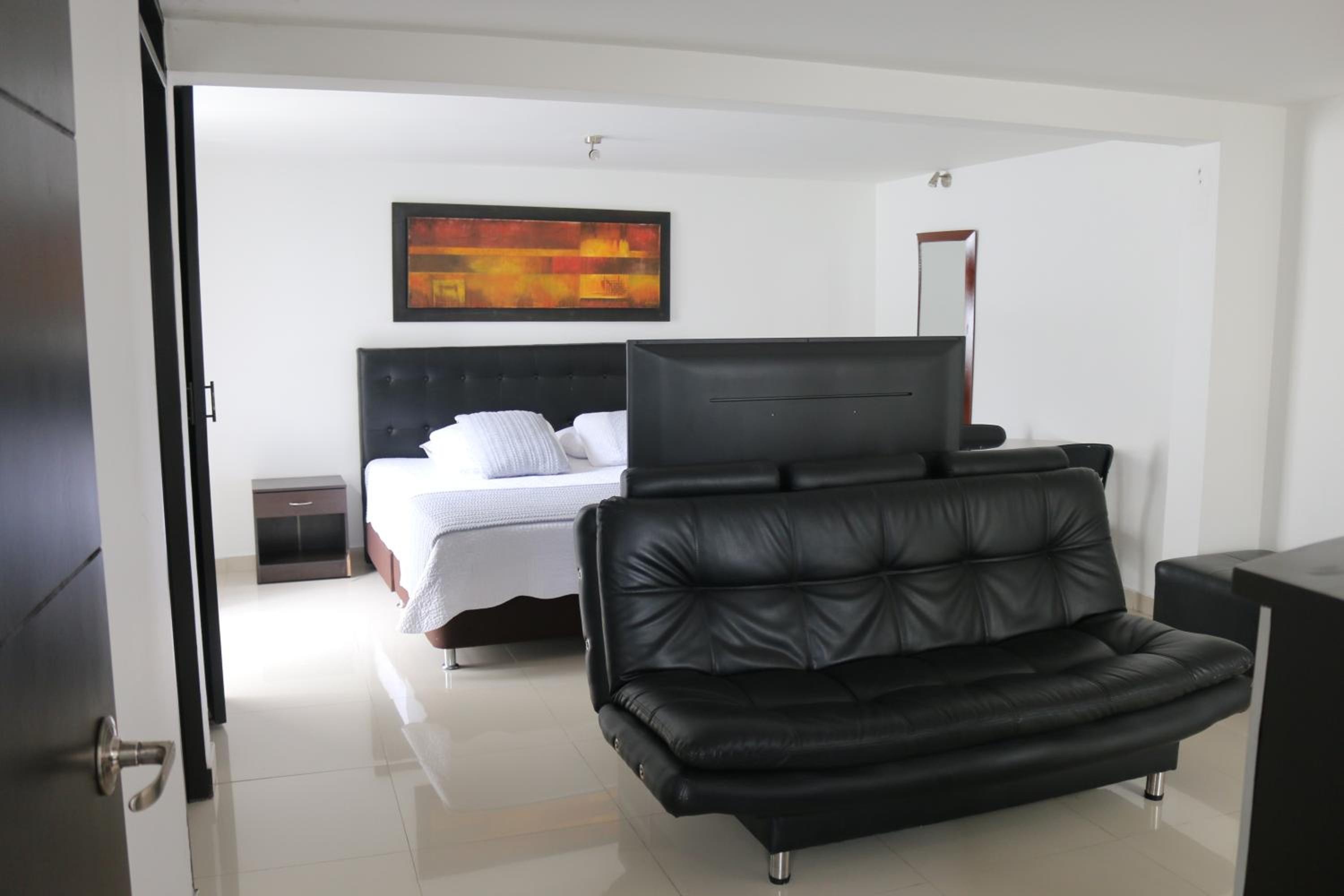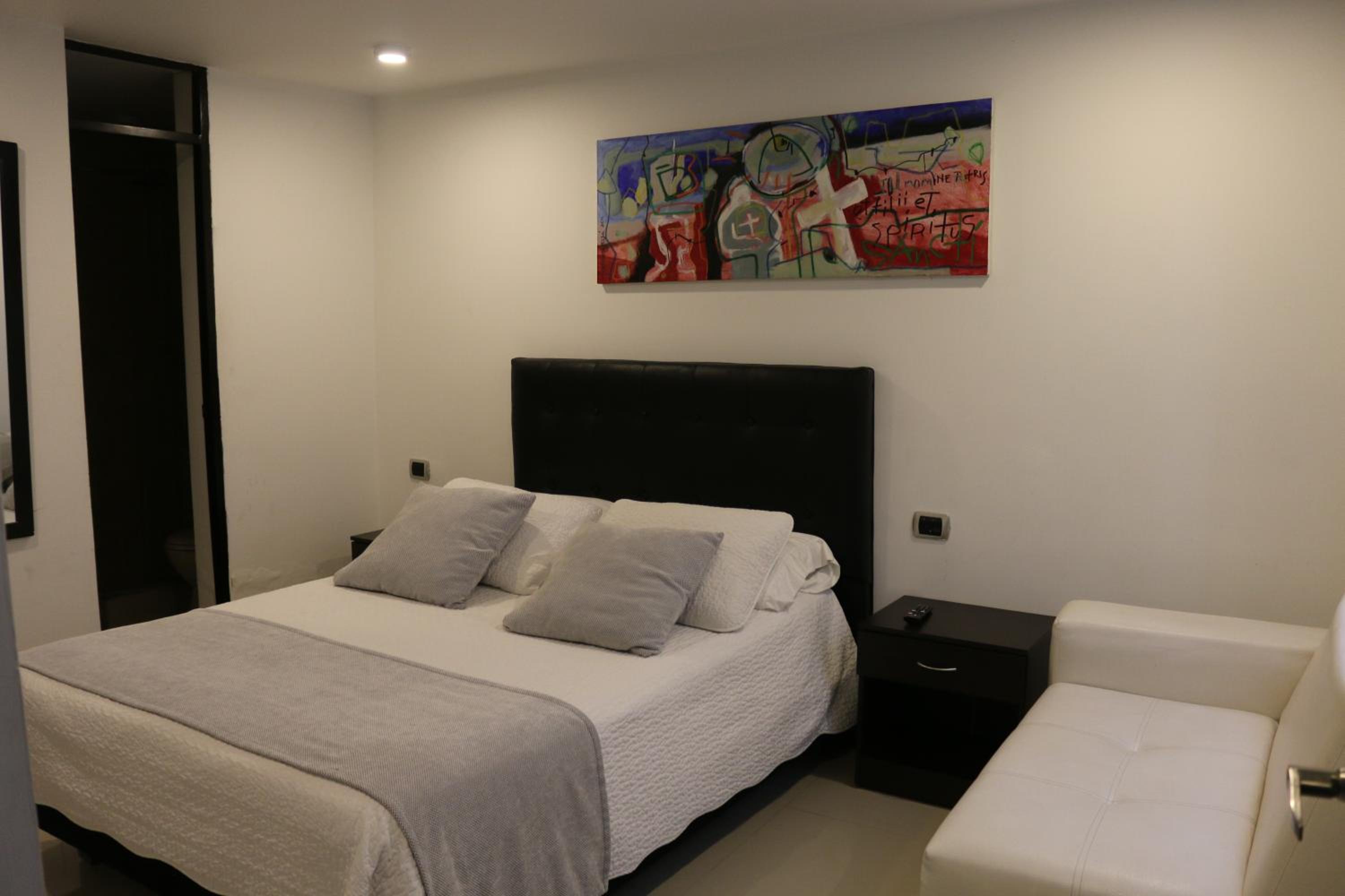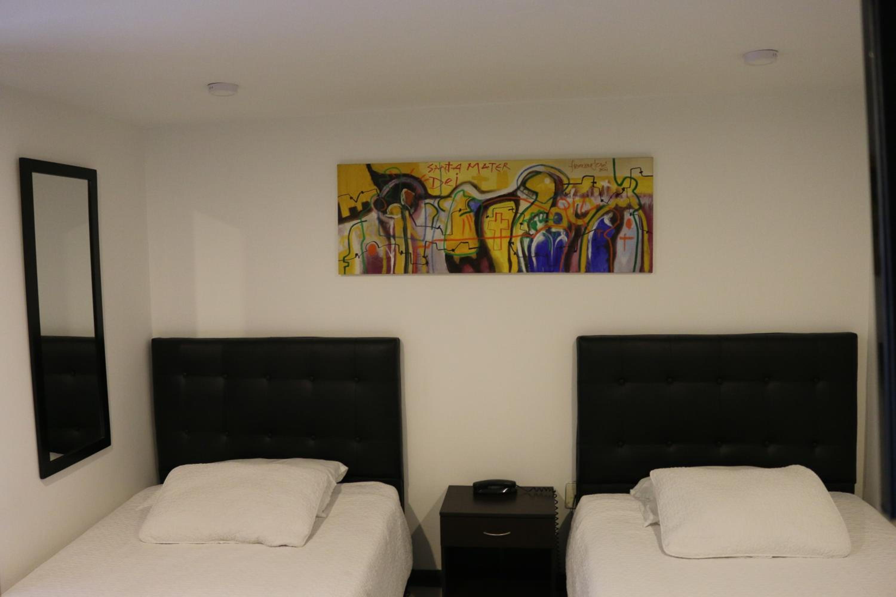 Hotel Santa Maria offers cozy rooms with flat-screen TVs, private bathrooms, and seating areas for relaxation after a busy day.