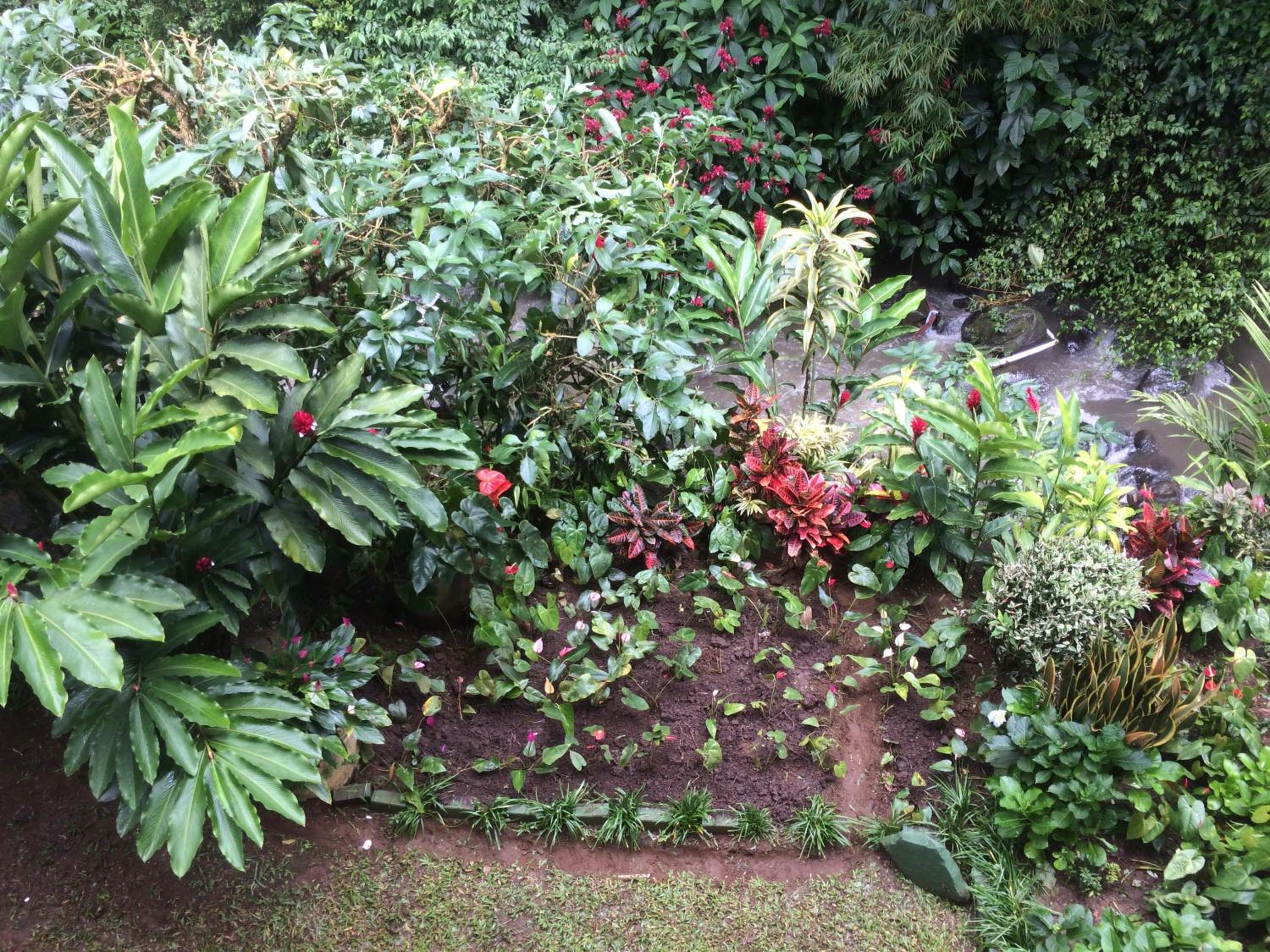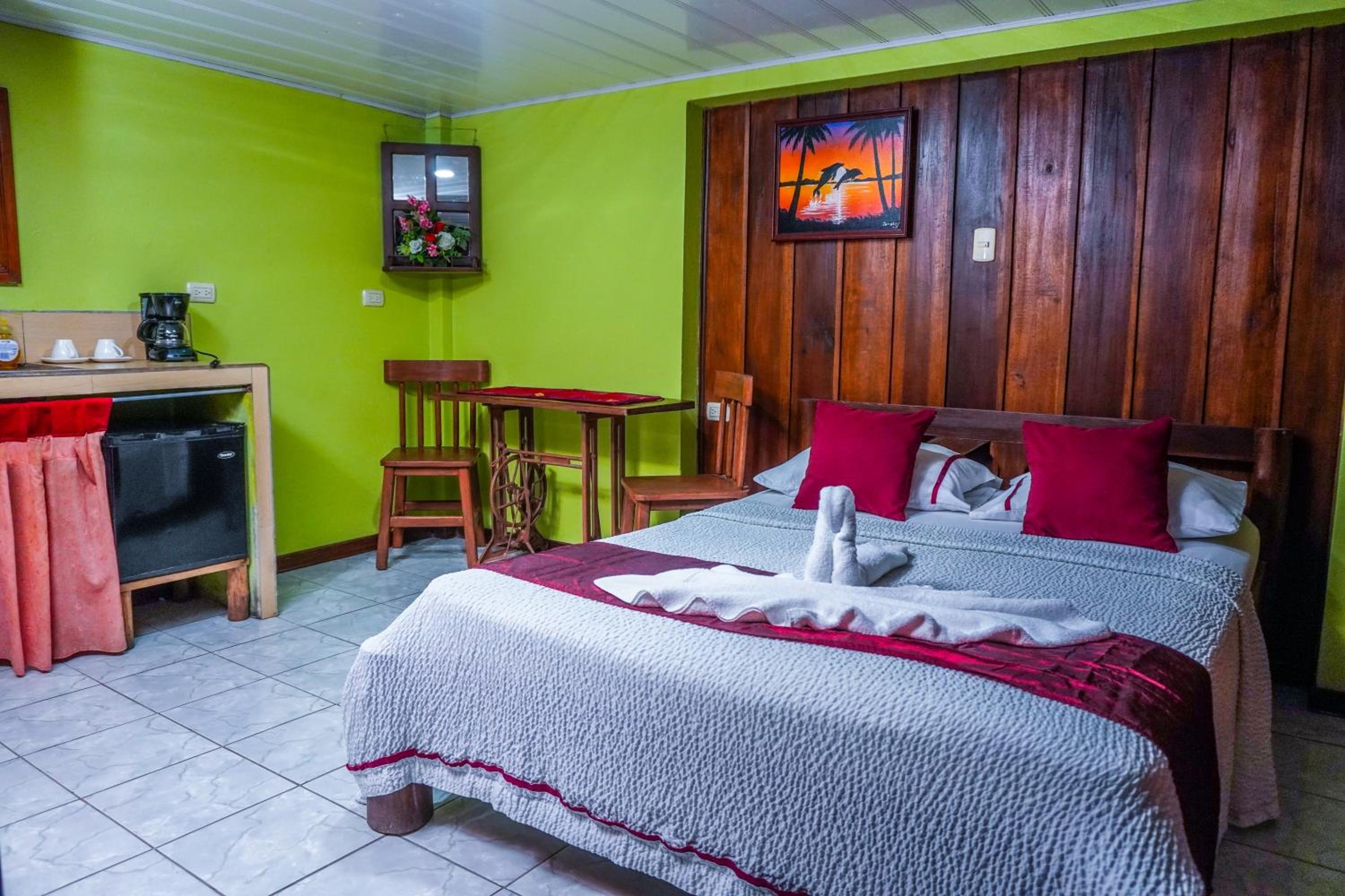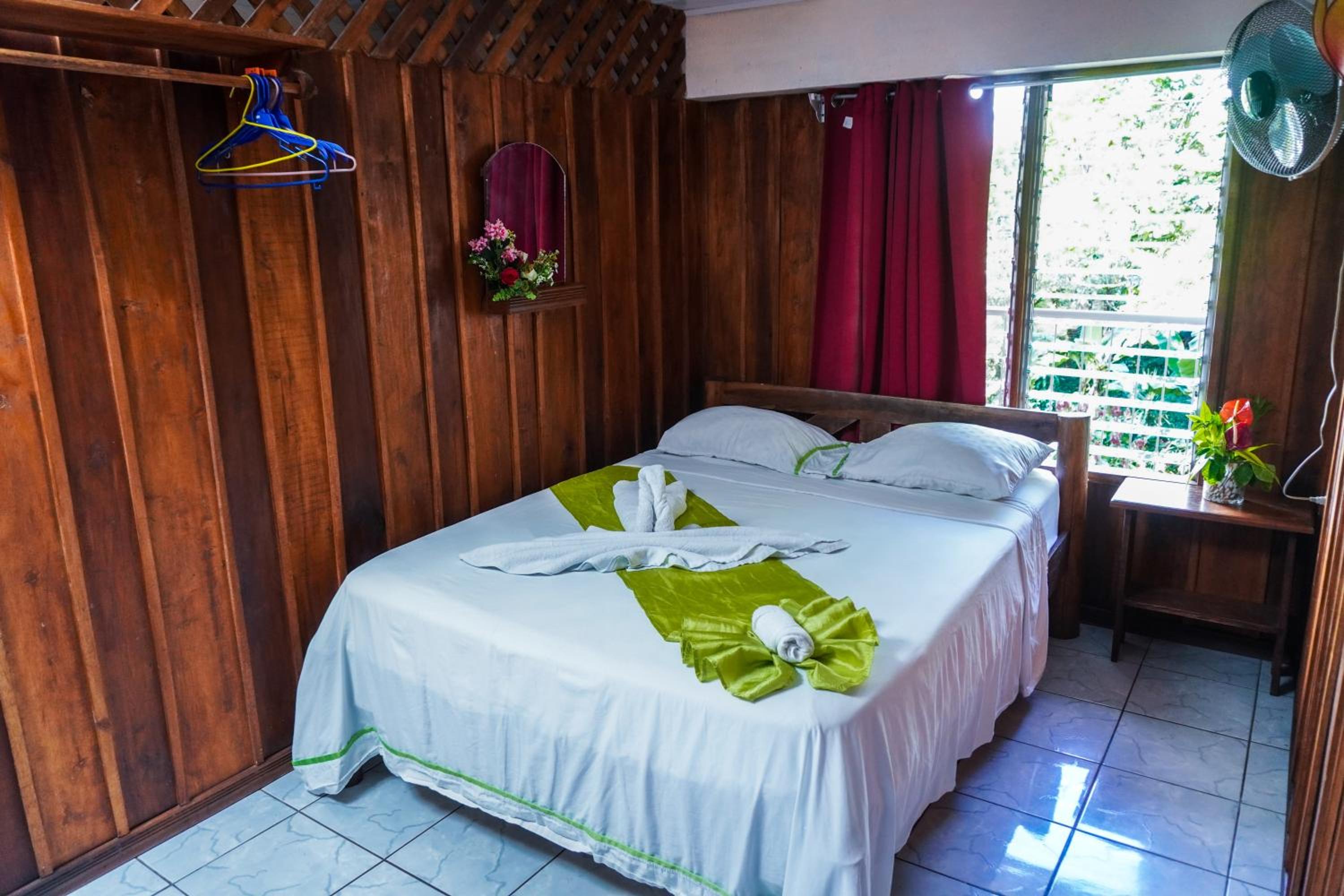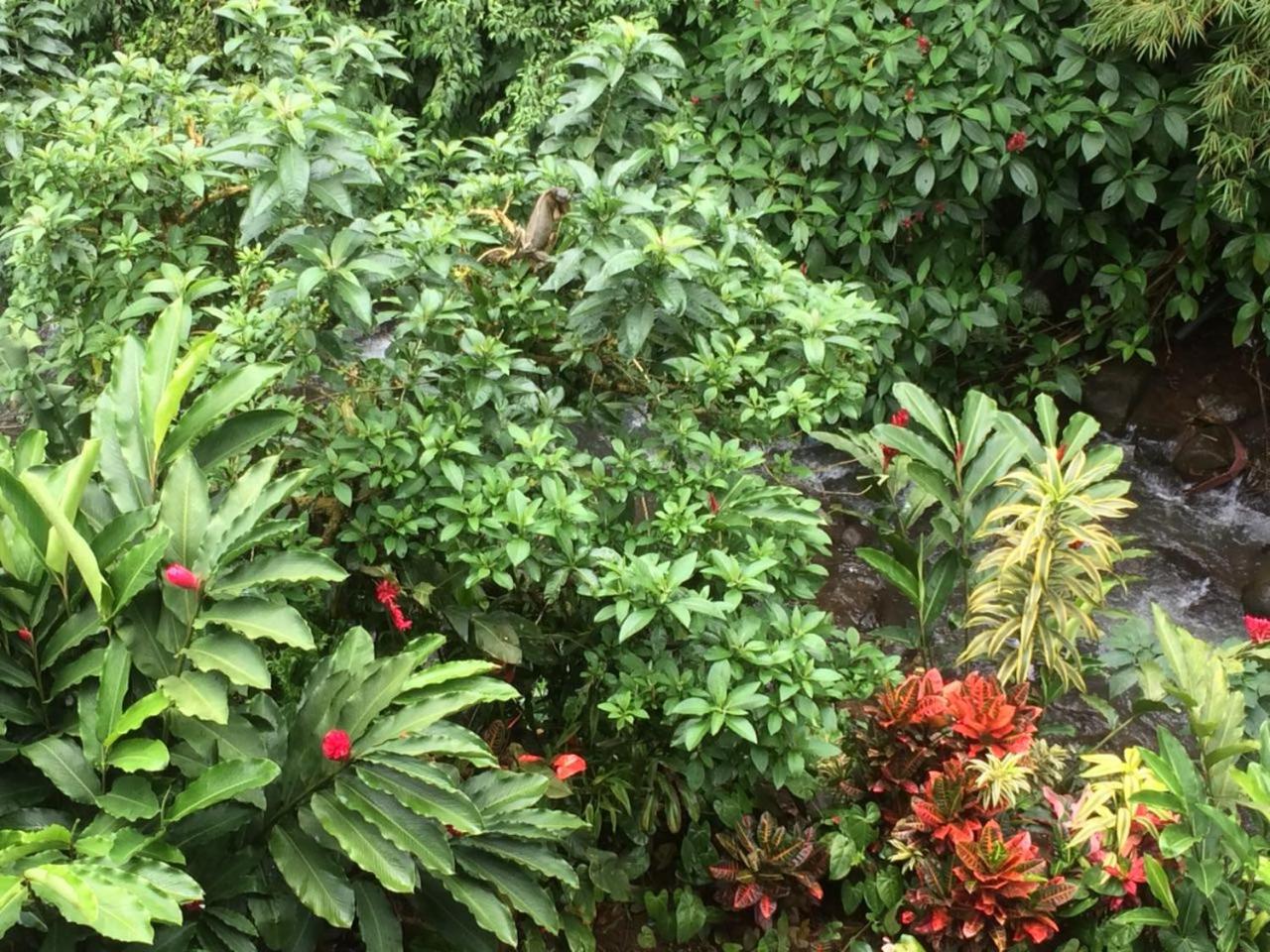 Near fairly lively town centre,but also a ravine out back in complete contrast,with open sheltered areas on two floors where you can watch green iguanas,vultures and various bird life, whilst drinking coffee from the coffee machine in our room,and breakfast from the shops,or popping out to one of the many nearby sodas.