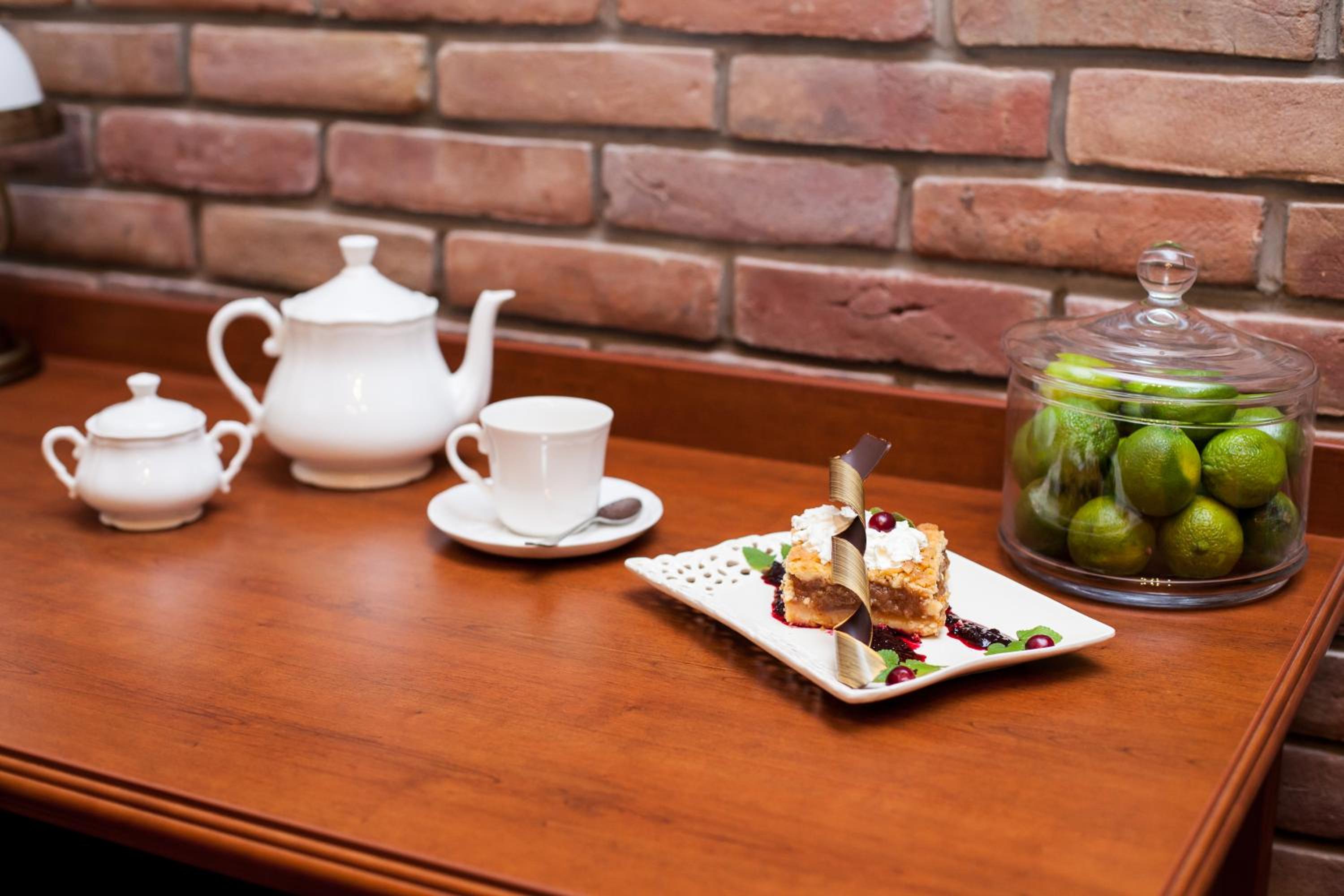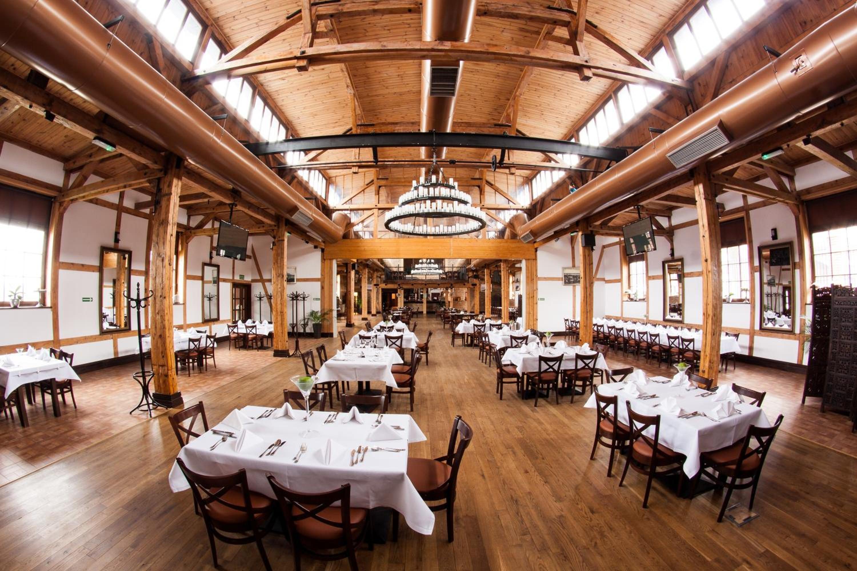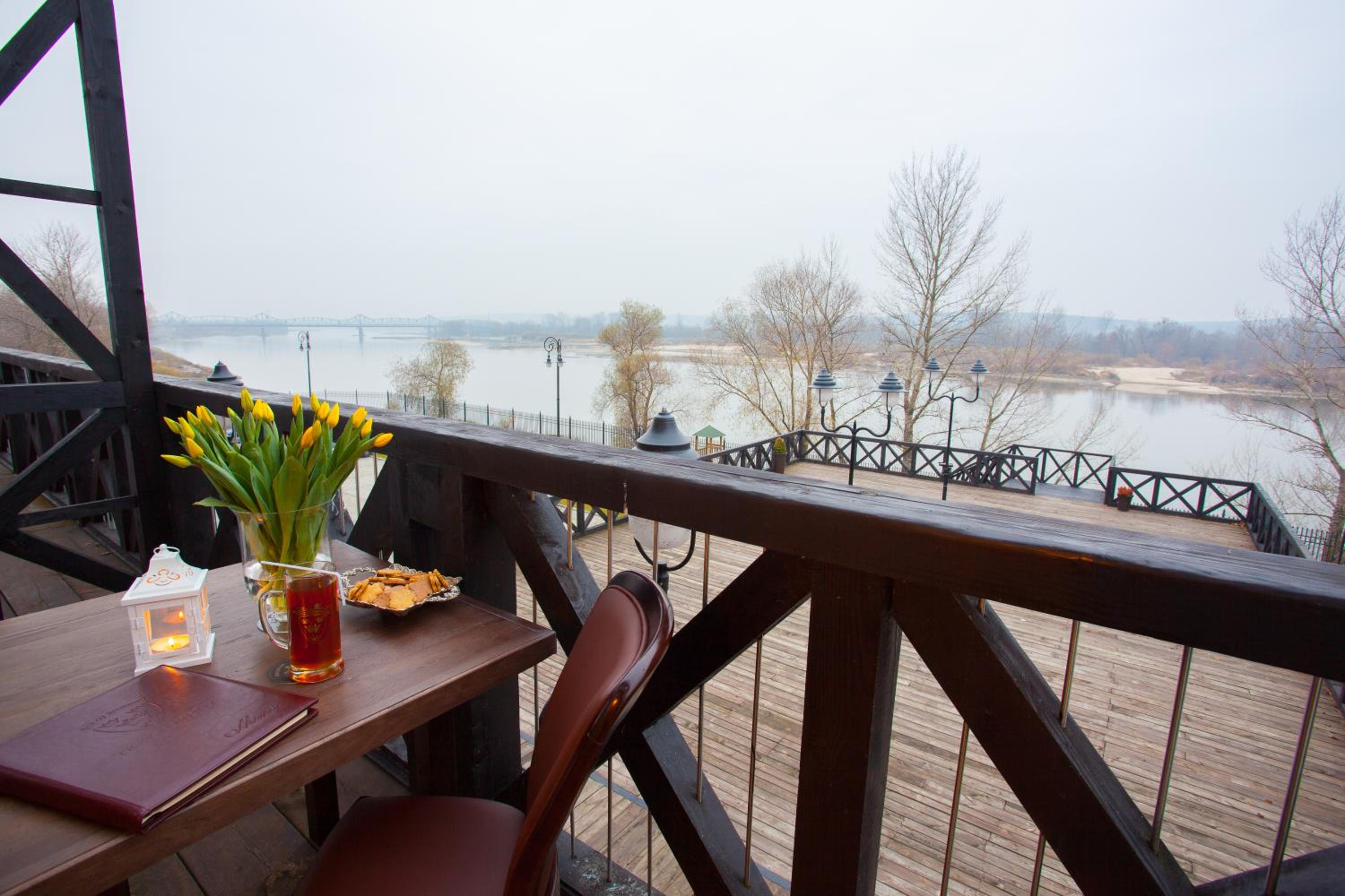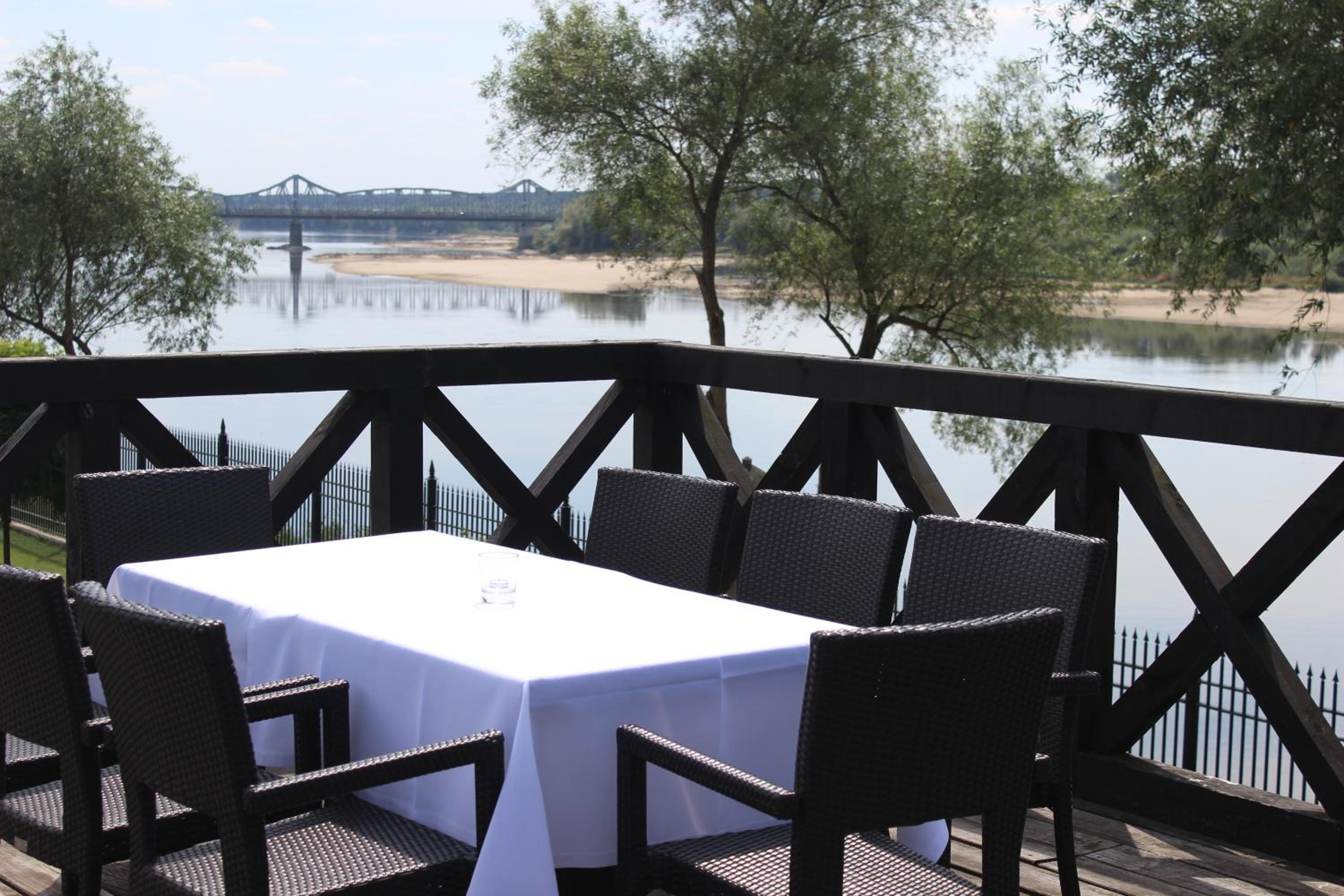The hotel's restaurant serves Polish and international cuisine, with a changing menu based on the season. Guests can enjoy a breakfast buffet and picturesque views of the Vistula River from the Kolonialna Café's large terrace.