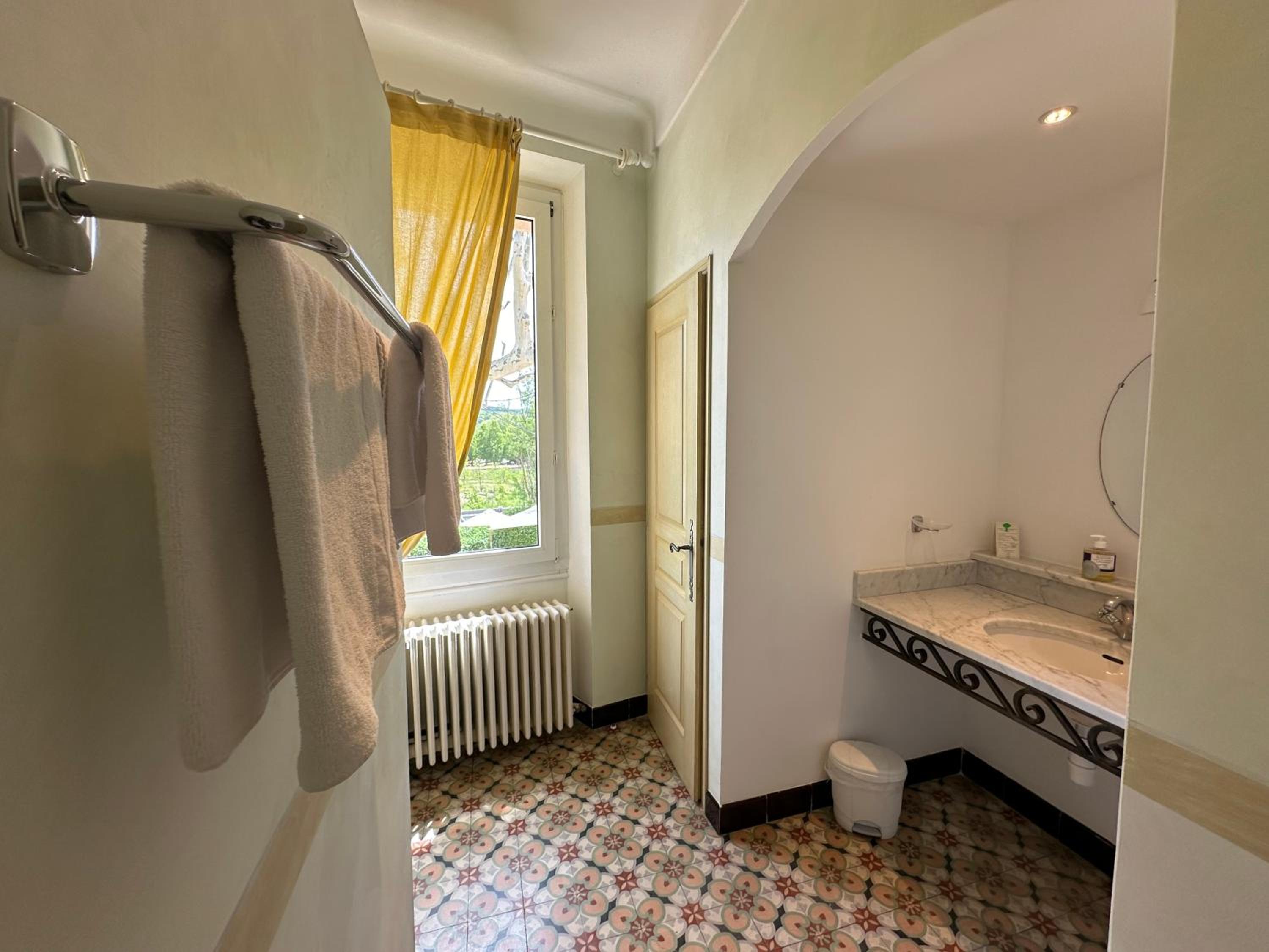 Très beau jardin arboré, belle bâtisse et petit déjeuner Très bien achalandé avec un restaurant de bonne qualité.