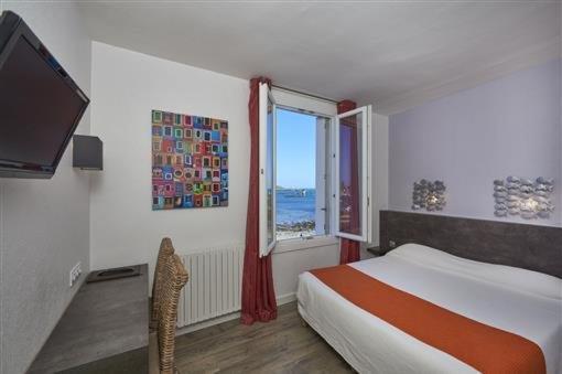 The rooms at Logis Bellevue Hotel offer breathtaking sea views and are equipped with flat-screen TVs. Some rooms even provide free Wi-Fi, ensuring guests stay connected during their stay.