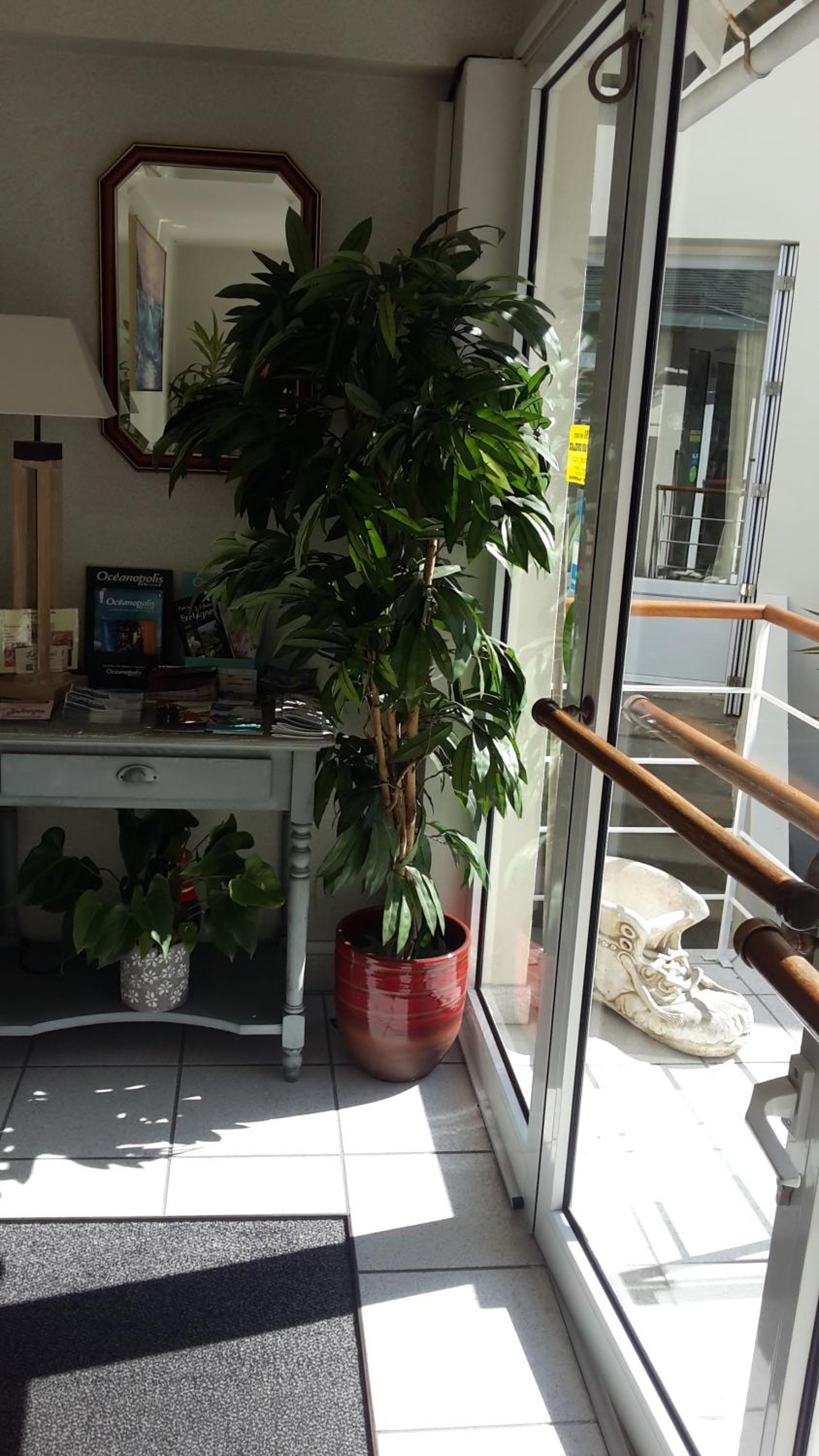 The hotel features a charming terrace overlooking a beautiful garden, providing a perfect spot for relaxation. Additionally, guests can conveniently store bicycles and motorbikes in the courtyard, while free public parking is available for cars on-site.