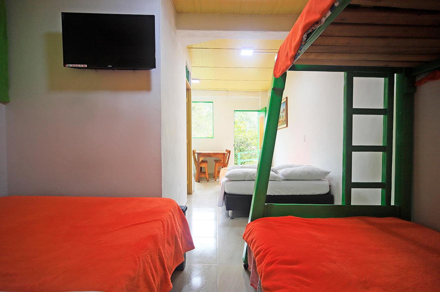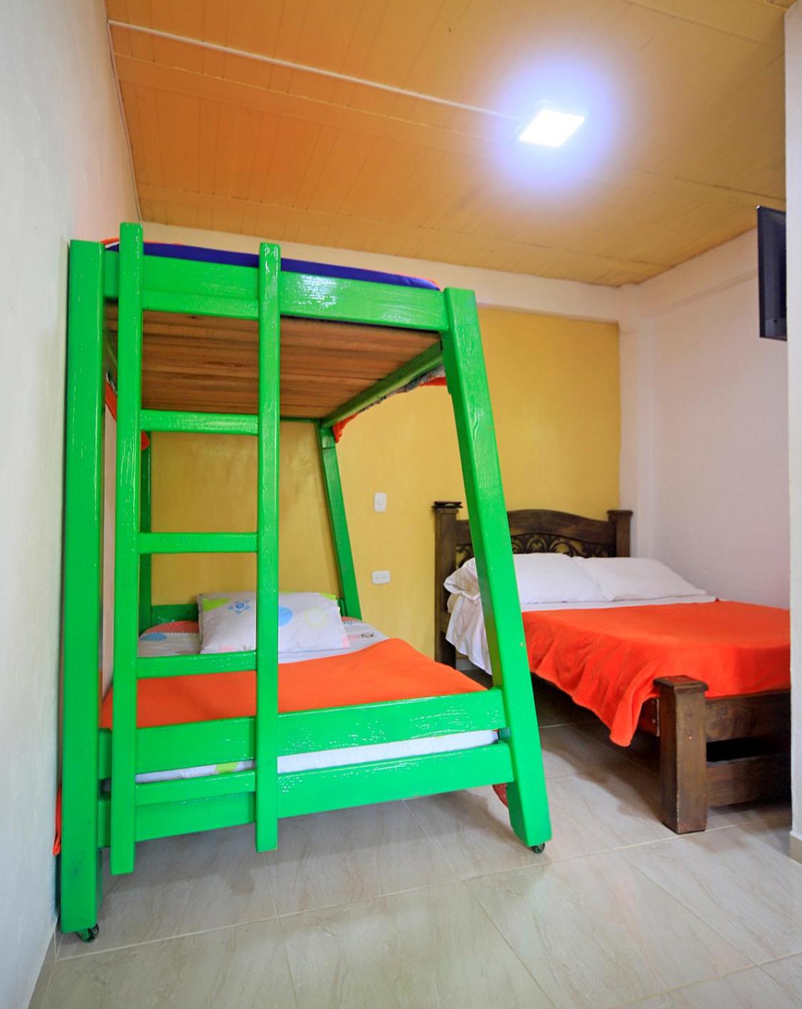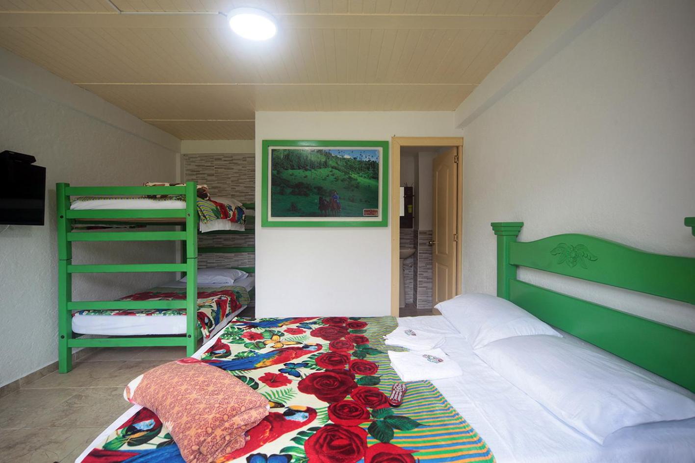 Chambre spacieuse pour 4, de l'eau chaude à la douche (pas le cas partout en Colombie), petit déjeuner inclus, proche du centre (5 minutes à pieds).