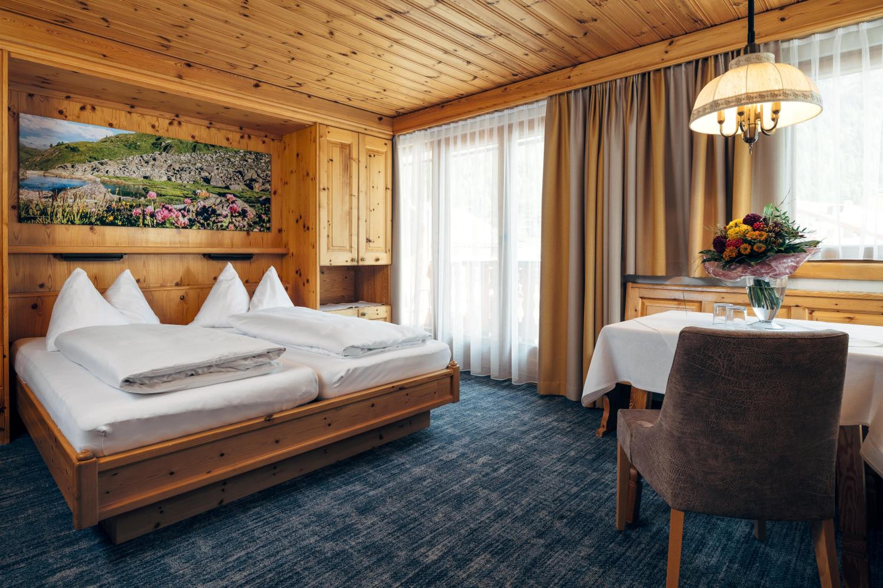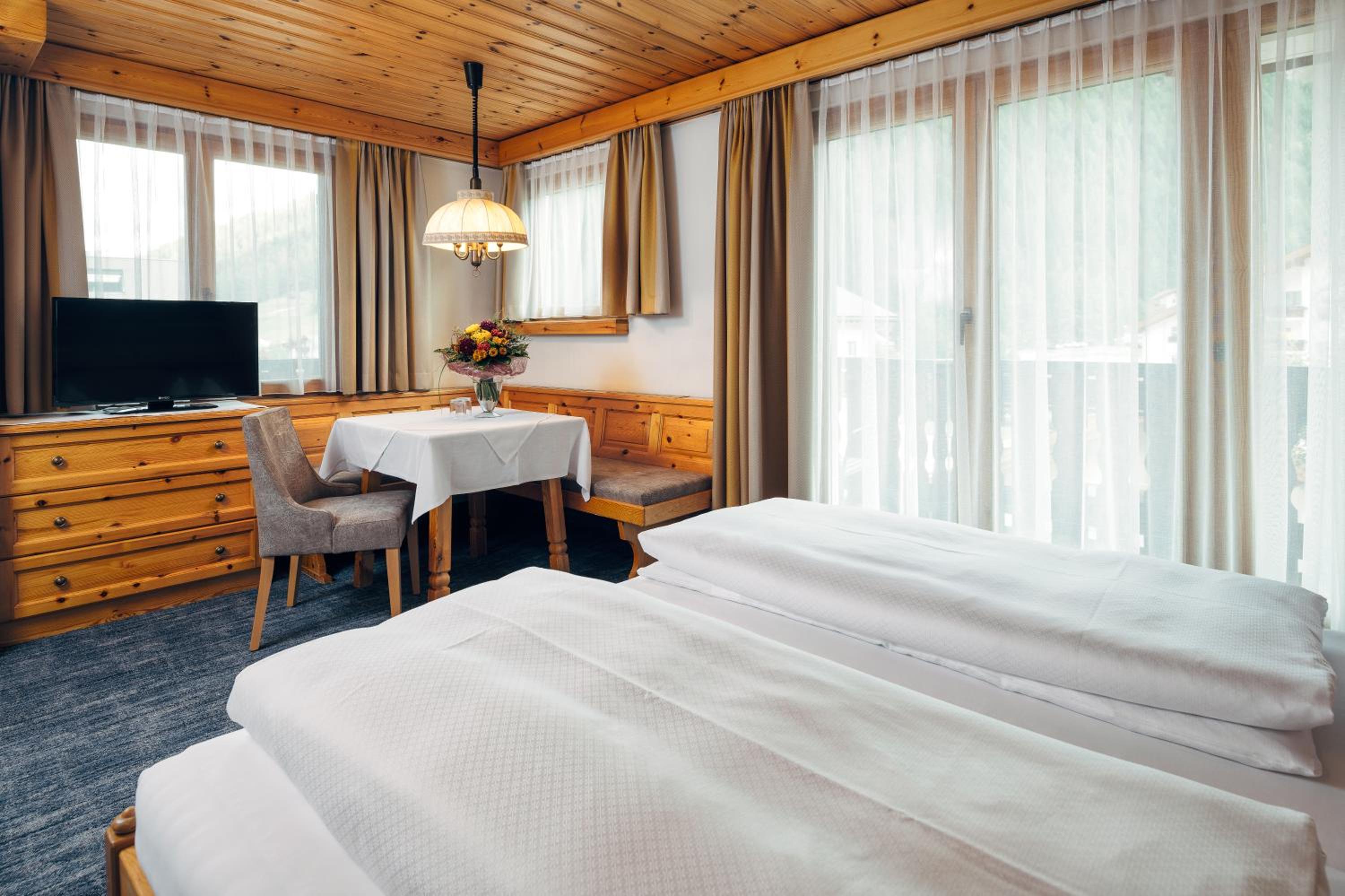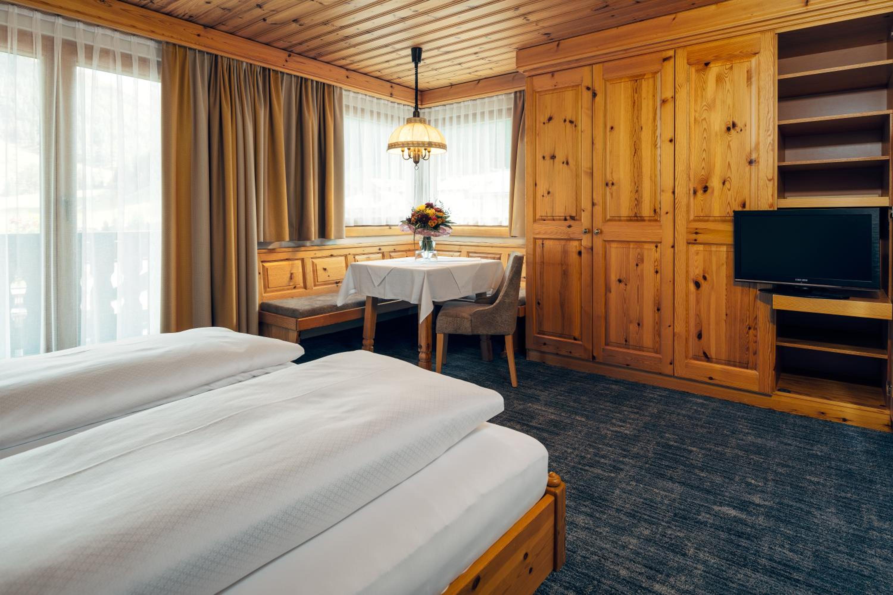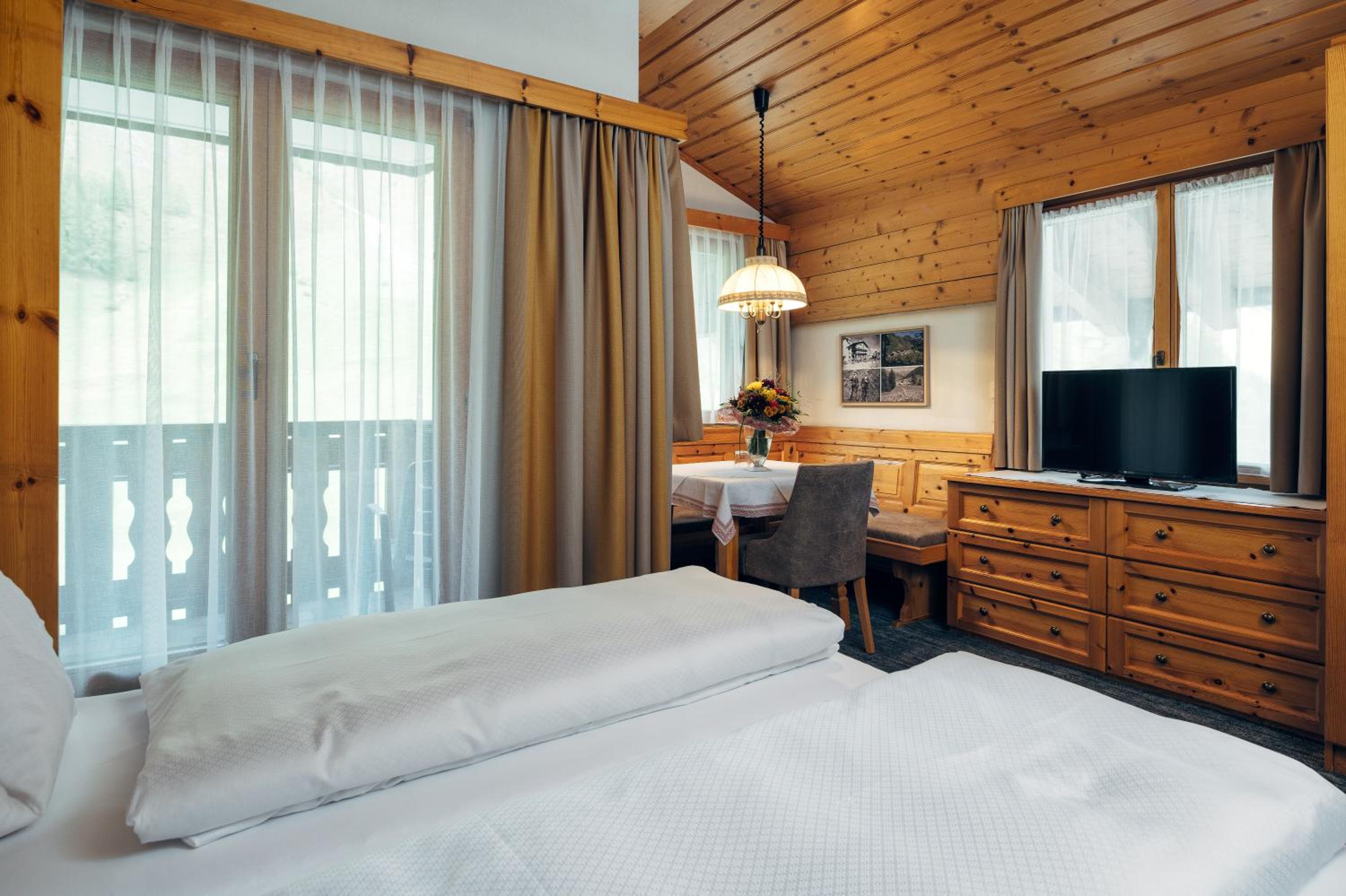 Vriendelijk en gastvrij personeel. Kamer was mooi ruim en praktisch ingericht (o.a. veel opbergruimtes) met erg mooi uitzicht op de bergen. Badkamer was modern en comfortabel. Ontbijt en avondeten was ook goed verzorgd. Locatie direct aan de skipiste.