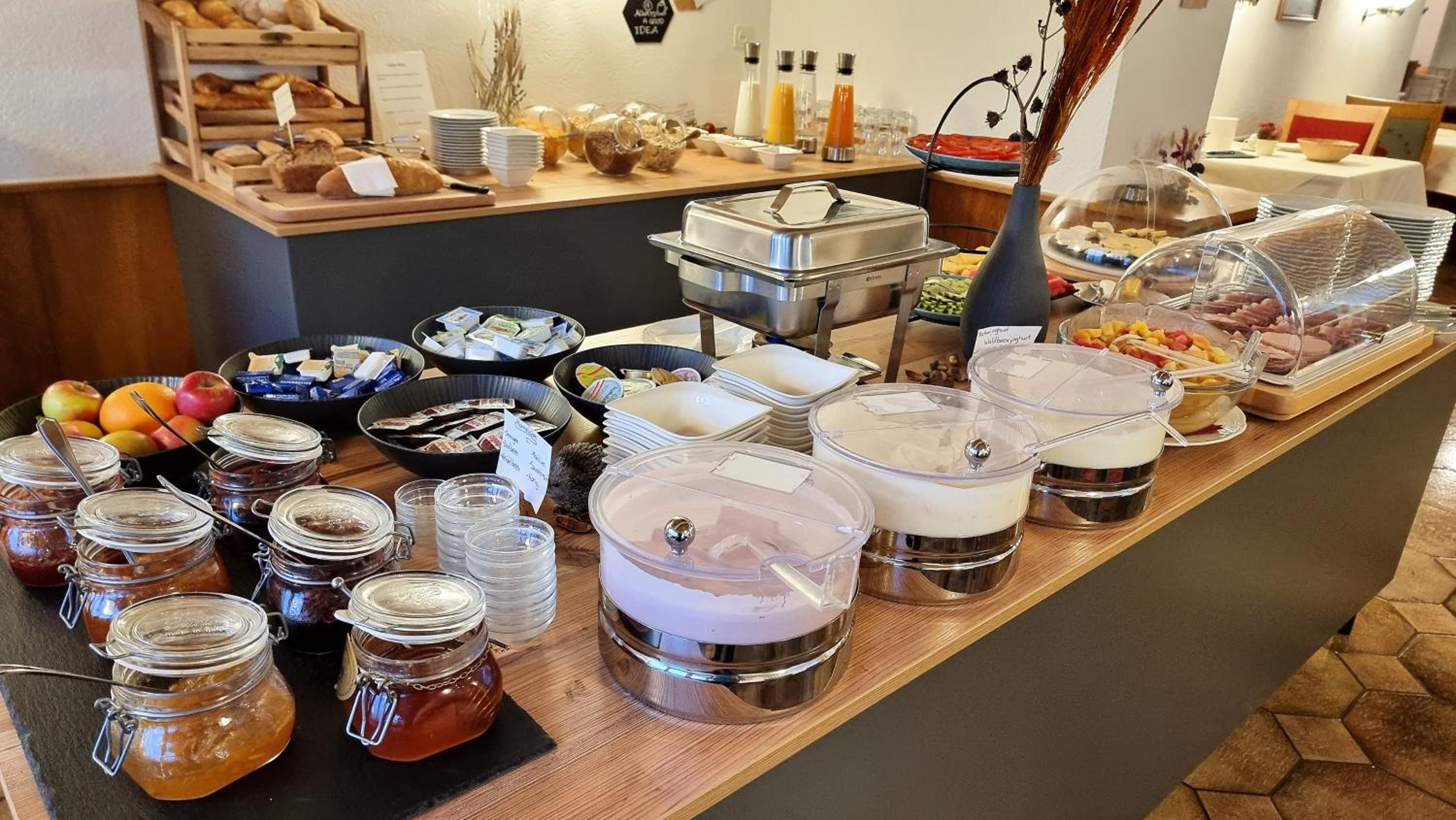 Das Frühstückbuffett ist reichhaltig und lässt keine Wünsche offen. Wir hatten auch ein Nachtessen im Hotel und waren sehr zufrieden.