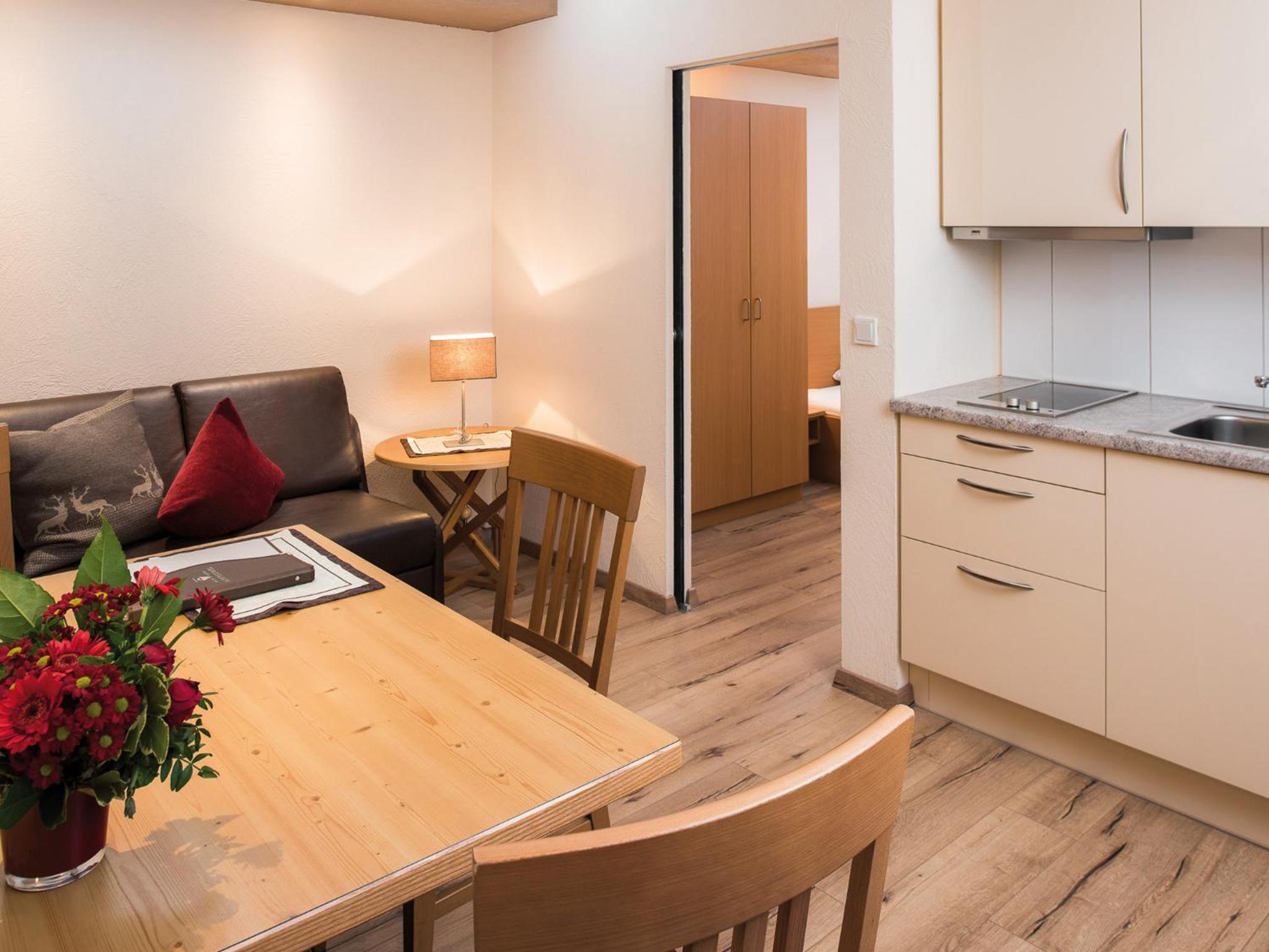 Enjoy the convenience of ski-to-door access at this charming property located just 500 meters from Serfaus' center. The Tyrolean-style furnished units, some with balconies and kitchenettes, provide a cozy retreat.