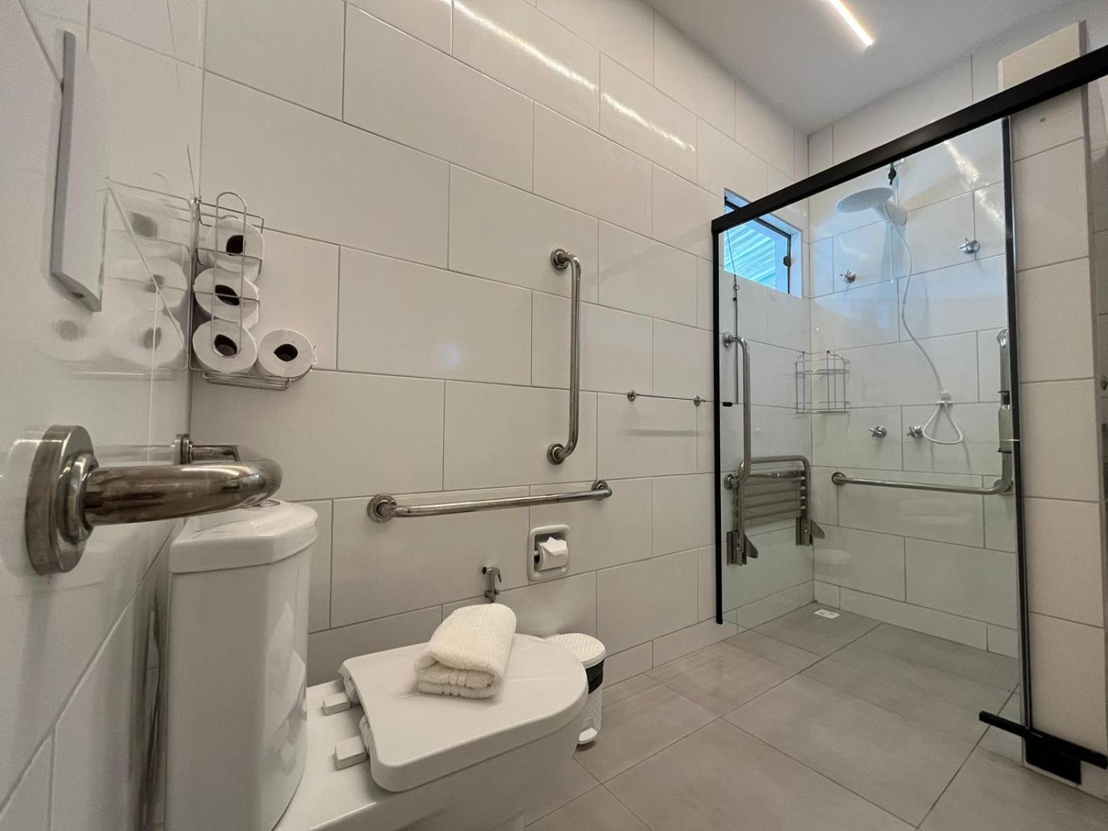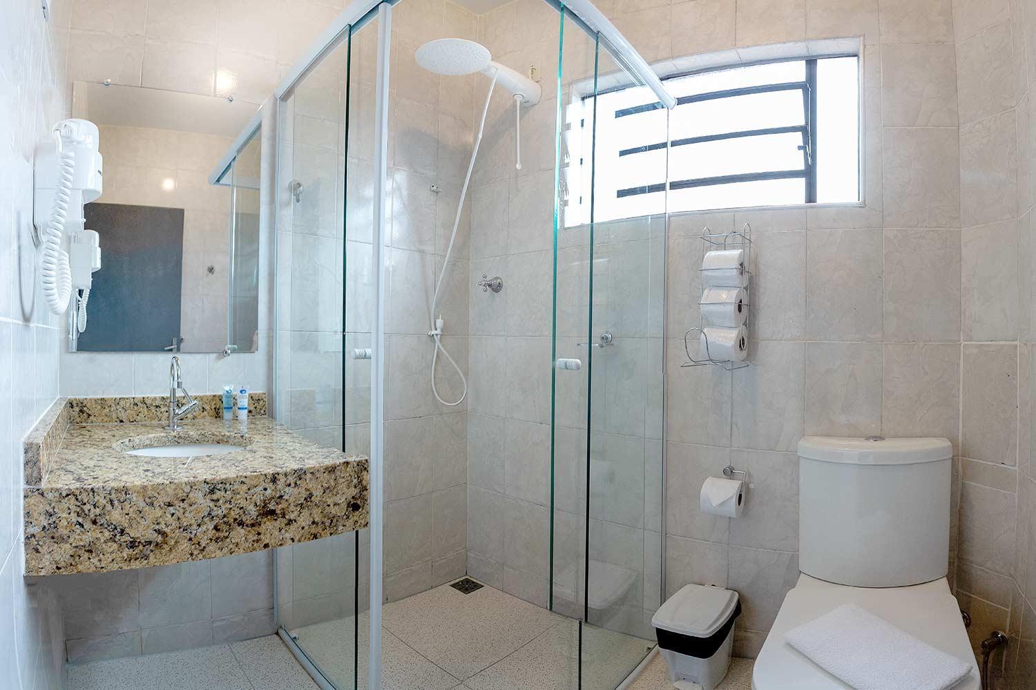Nossa acomodação espaçosa, com um ótimo banheiro.