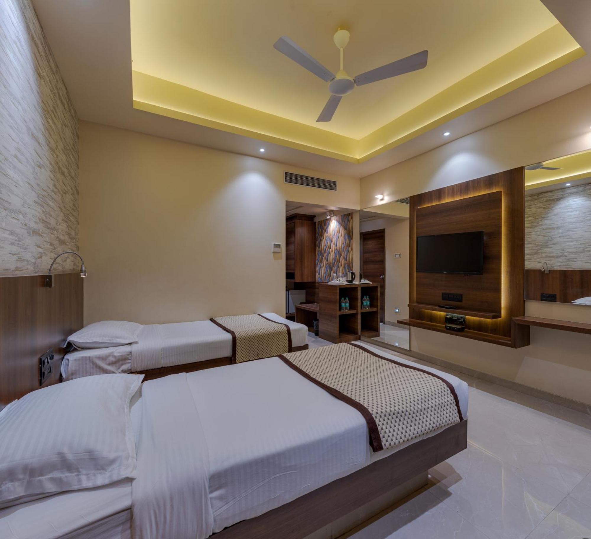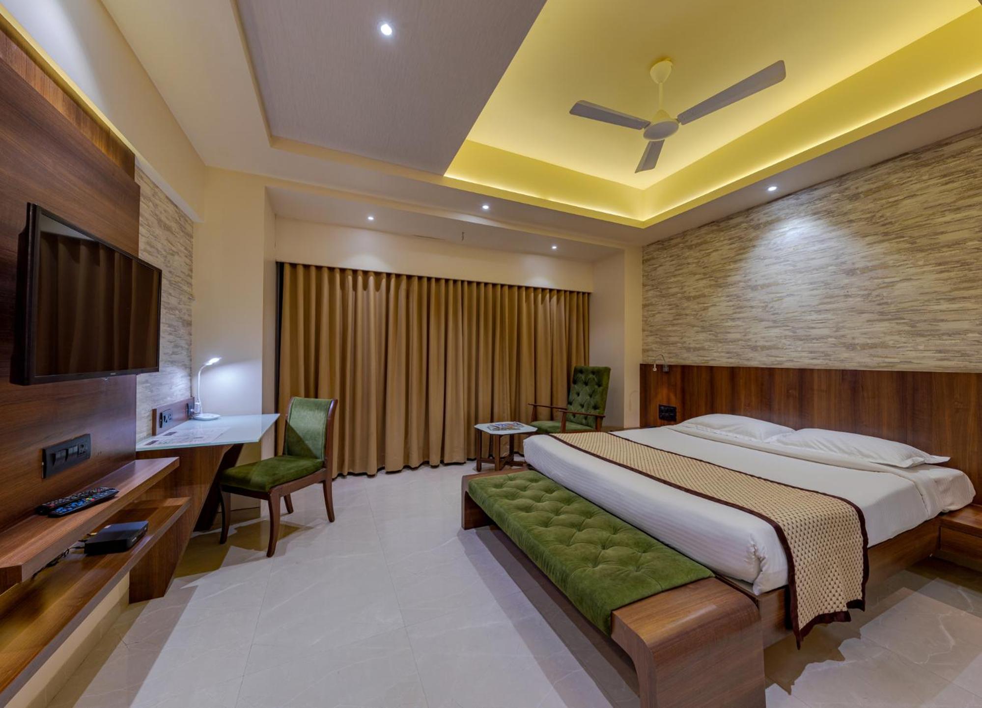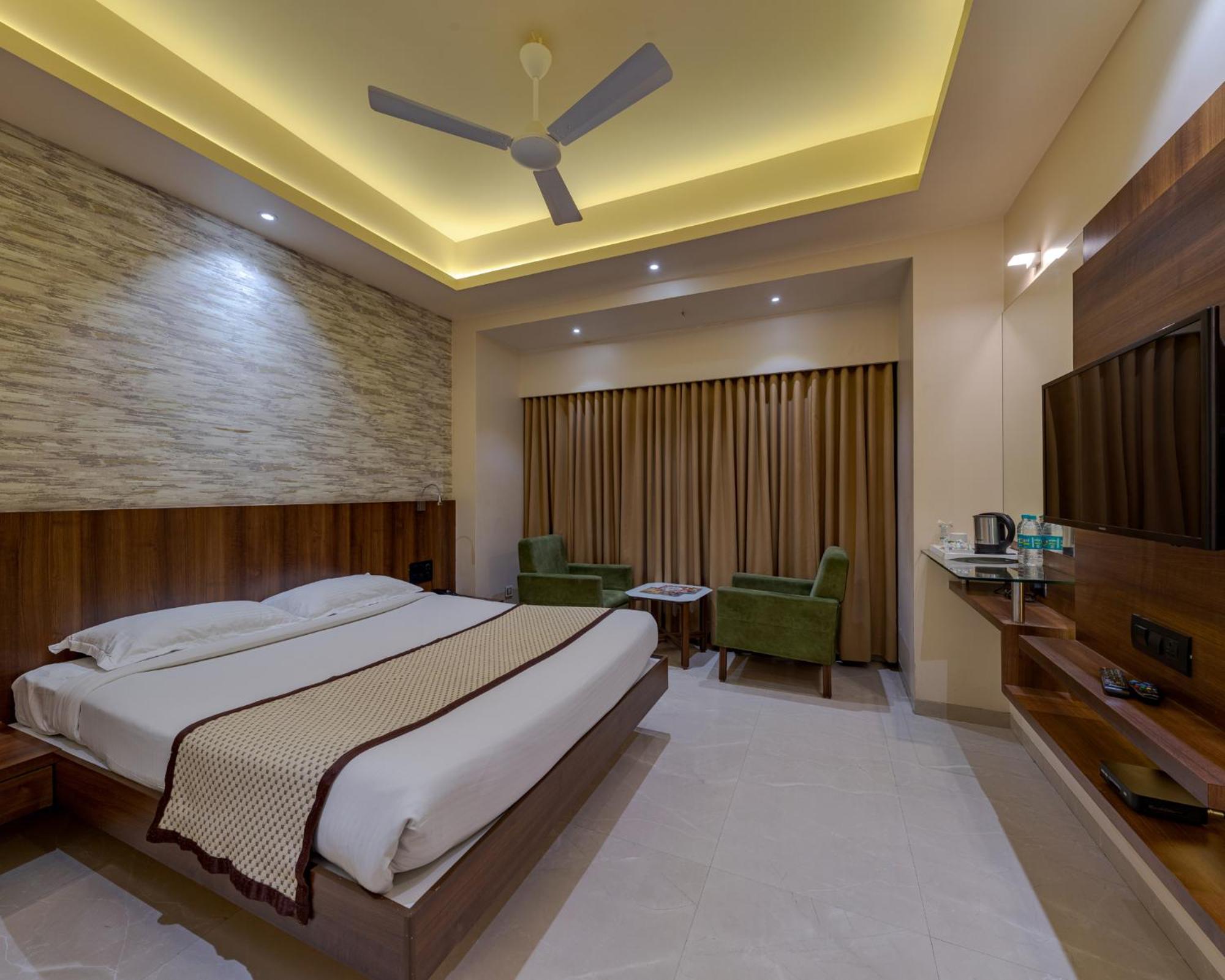 Hotel Pratham in Solapur offers 4-star accommodations with stunning city views. The air-conditioned rooms are well-equipped with modern amenities such as a coffee machine, fridge, and flat-screen TV. Guests can also enjoy the convenience of room service and a 24-hour front desk.
