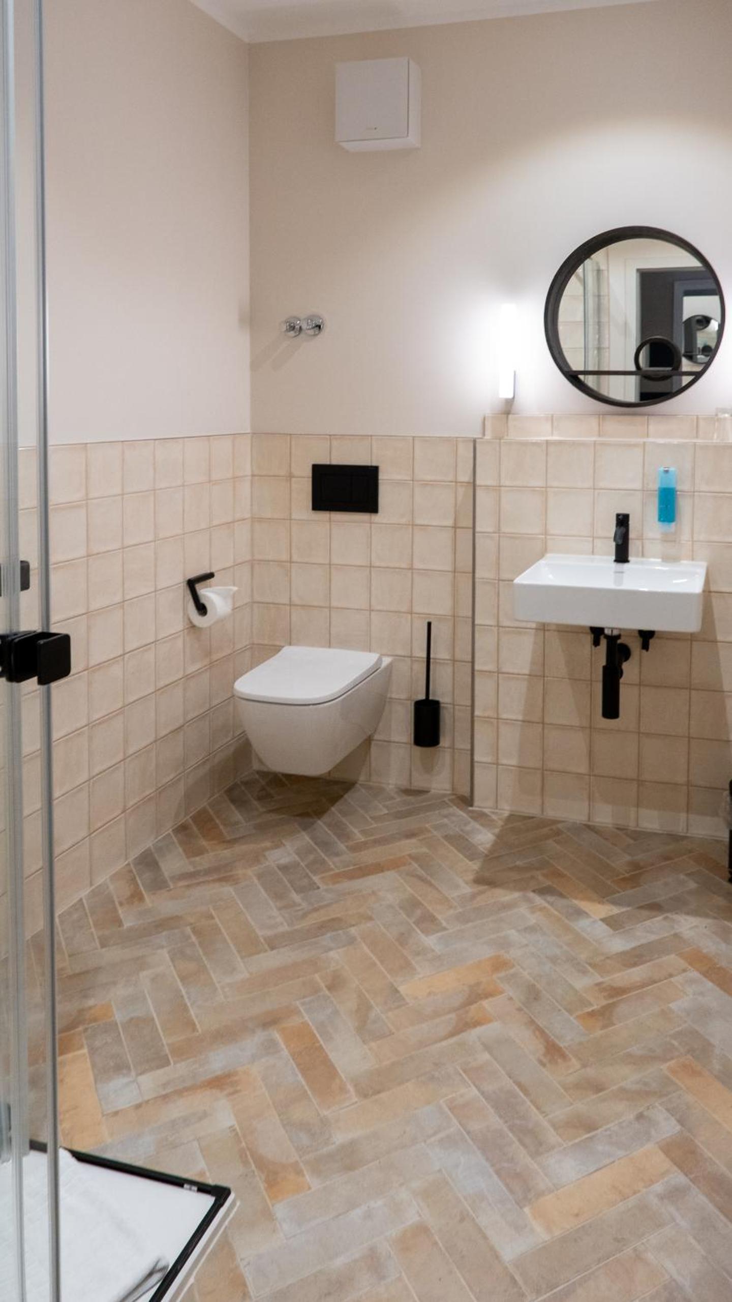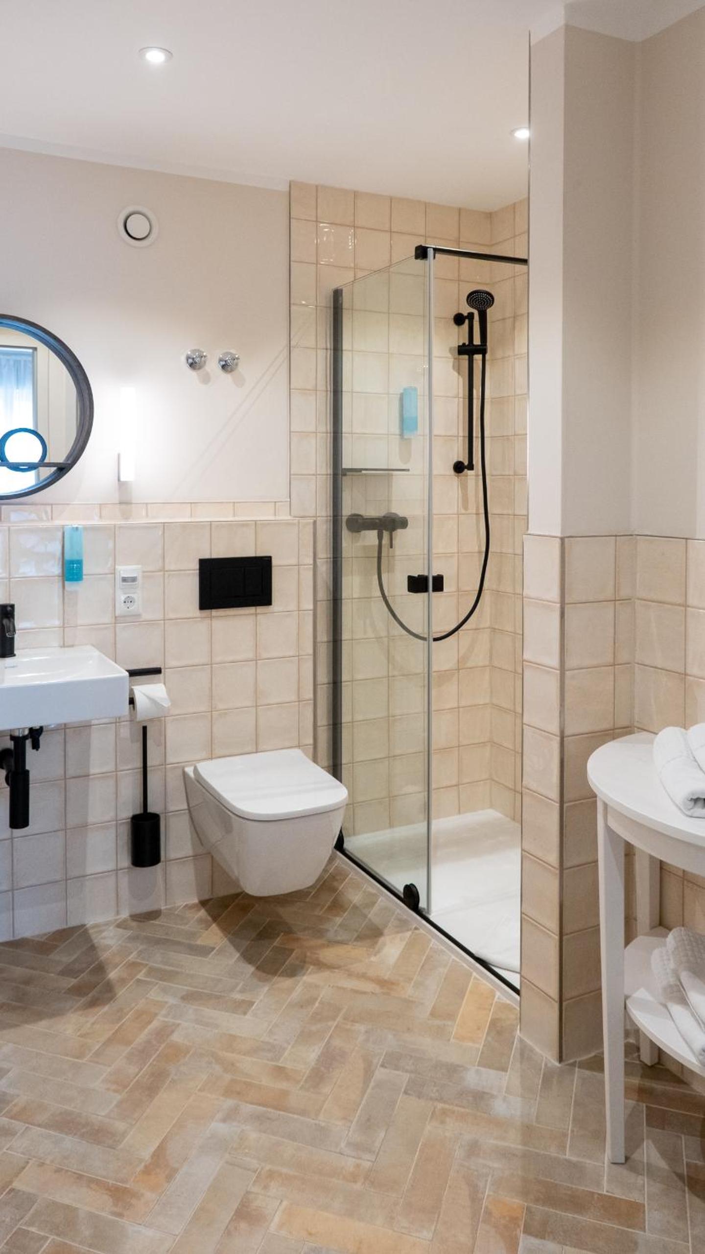 Der Spiegel im Zimmer ist etwas unglücklich positioniert, ein Schuhlöffel wäre willkommen.