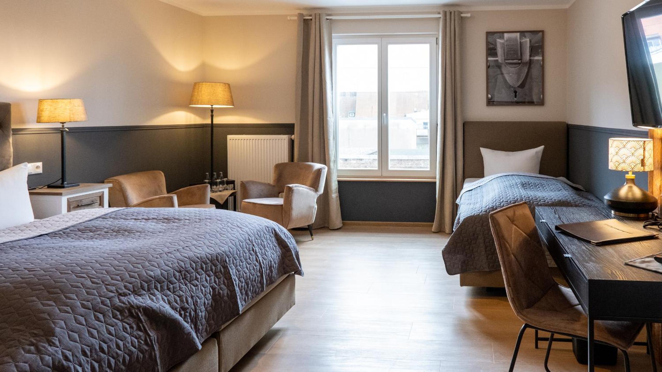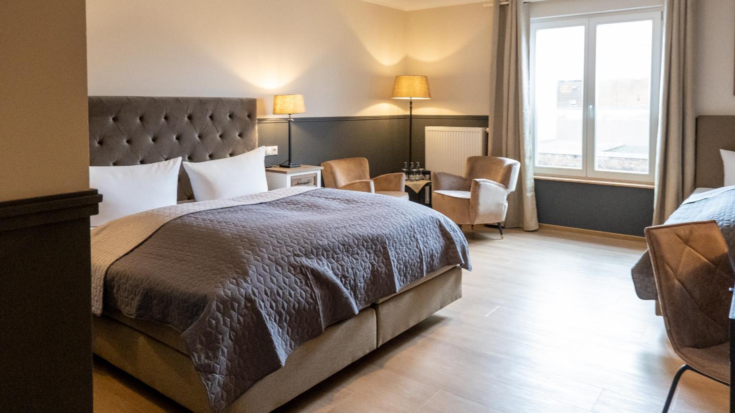 Ein geschmackvoll eingerichtetes Hotel mit gemütlich eingerichteten Zimmer.