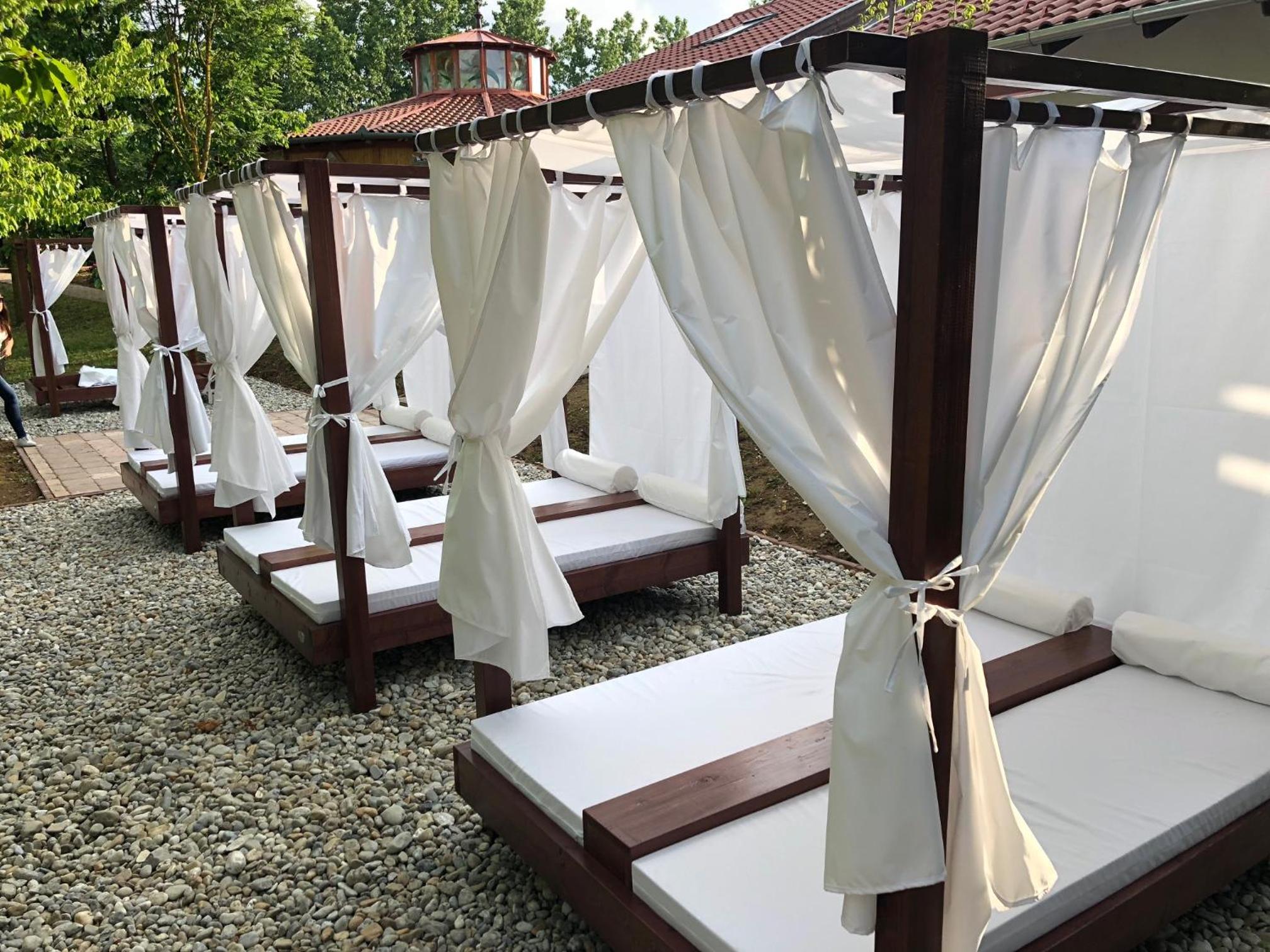 Indulge in ultimate relaxation at our on-site spa with a hot tub, sauna, and fitness area. Enjoy dining on our summer terrace while your children have a blast at the playground.