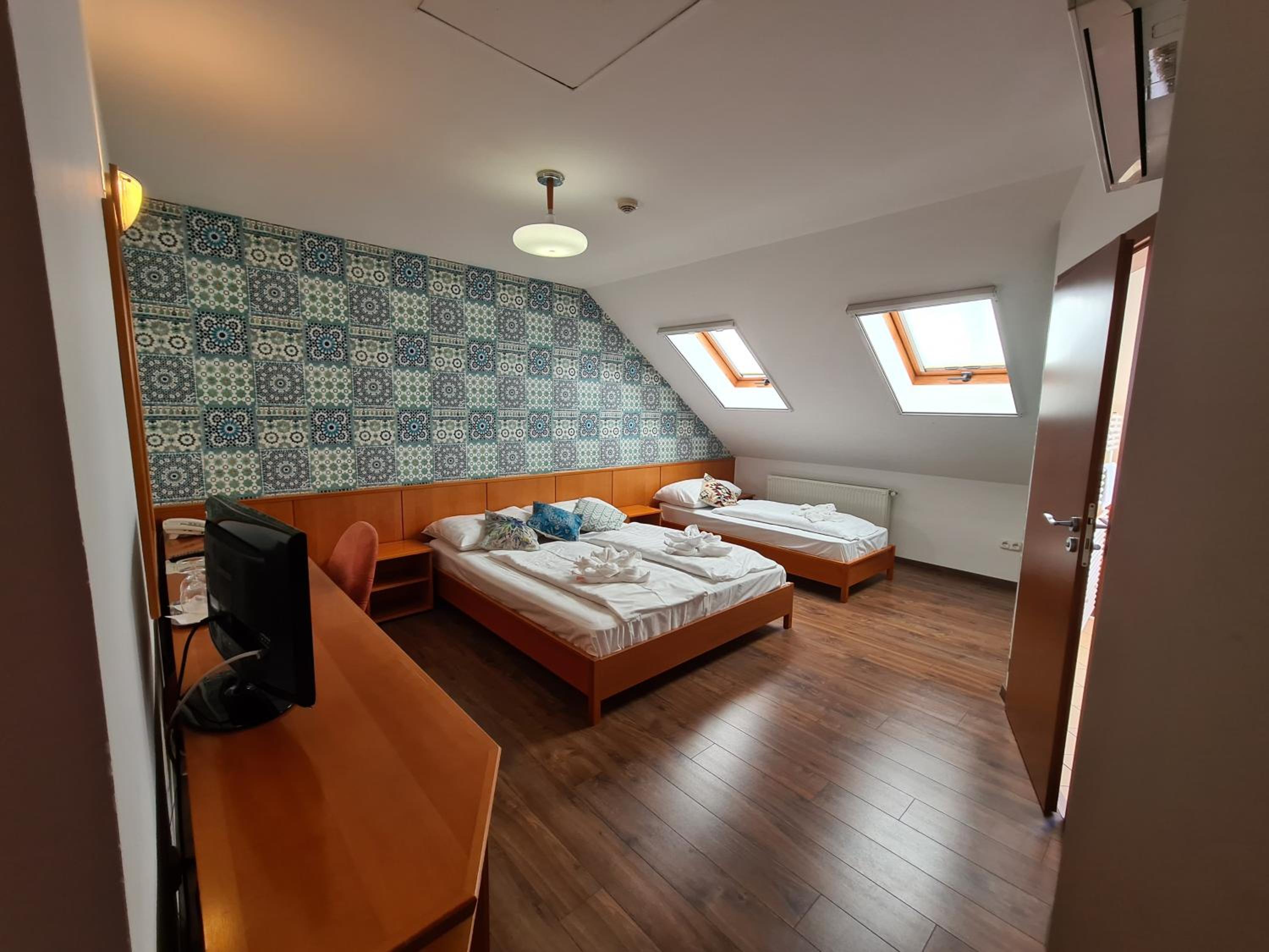A szoba nagyon kicsi méretű és a fürdőszoba (bar teljesen felújított és szép) olyan kicsi méretű, hogy alig lehet benne mozogni. Hiányzott a tusolószer, stb., Kuka sincs a szobában. A reggeli büfé kínálat szinten nagyon korlátozott volt.
