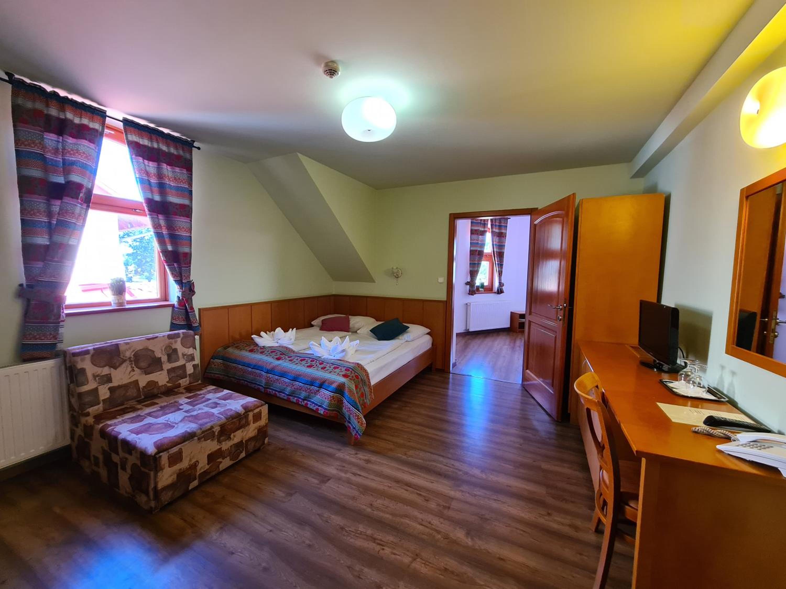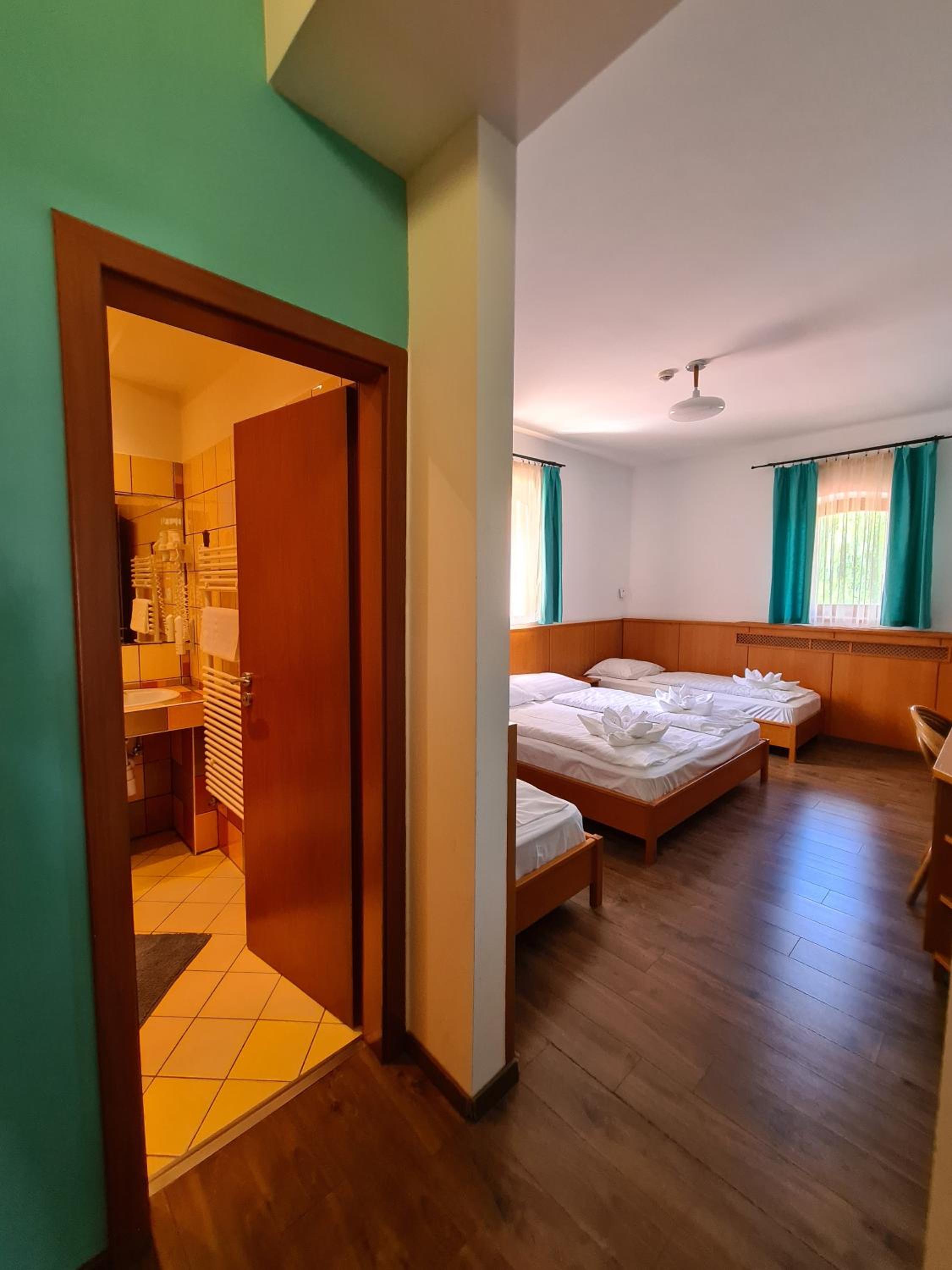 Lokalita ,okolie hotela ako aj samotný hotel sa nám veľmi páčil. Personál bol veľmi milí , hlavne pani na recepcii s ktorou sme mohli rozprávať po nemecky,čo veľmi oceňujeme. Taktiež sme boli radi, že sme mohli mať aj našich psíkov. Raňajky boli chutné, aj výber bol dostačujúci.